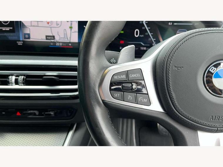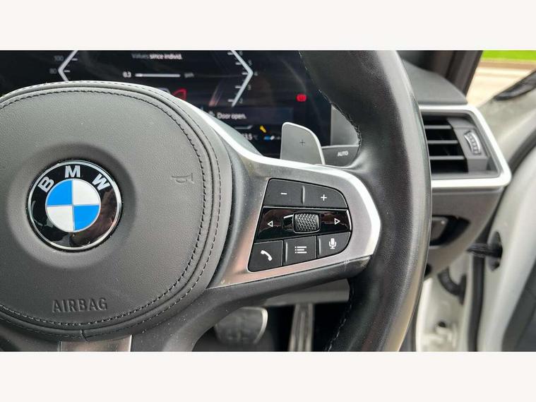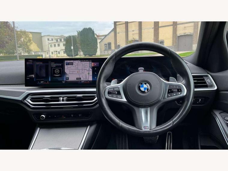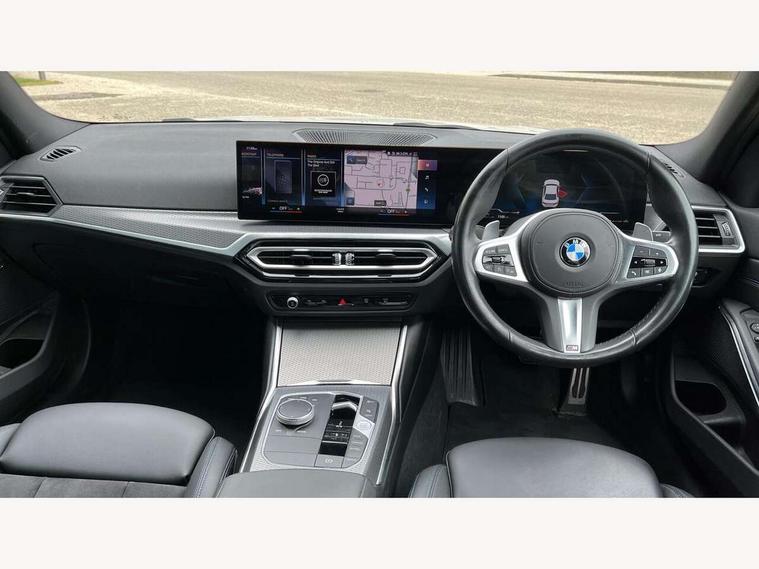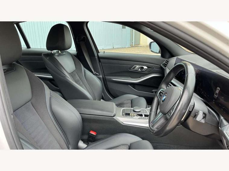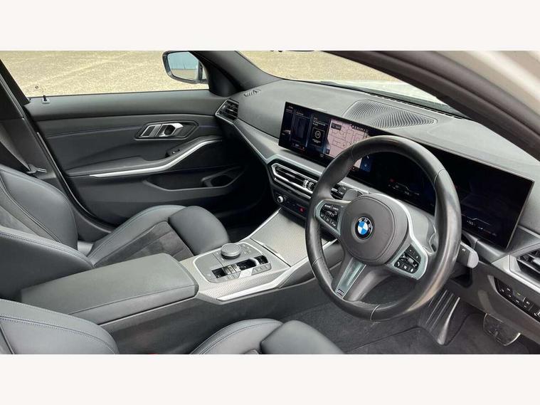Active guard plus, Attentiveness assist, Automatic Start/stop button, BMW iDrive, BMW Teleservices, Condition based service, ConnectedDrive Services, Driving experience switch, Live cockpit plus with Navigation + 12.3" instrument display + 14.9" display, Intelligent voice assist, 2 USB, 4G LTE connect, Oil sensor for level and grade, Preparation for driver assistance, Shifting point display, Variable sport steering, Double joint spring strut front axle, Fuel tank breather system, M sport suspension, Sport automatic transmission with steering-wheel mounted gearshift paddles and launch control, DAB tuner, 3rd brake light, Acoustic glazing, Automatic headlight beam throw control with load dependent regulating reaction, dynamic compensation of braking dive and acceleration squat, BMW emblem, engine compartment lid and tailgate, Body colour roof fin, Door sill strips, Electric windows - front and rear, with open/close fingertip control, anti-trap facility and comfort closing, Follow me home headlight function, Front and rear bumper system with replaceable deformation elements, Front apron plastic in body colour, Fuel filler flap - right rear in body colour, Heated washer jets, High gloss shadow line exterior trim, Illuminated bow type door handles in body colour drivers side with door lock, Interior rear view electrochromatic mirror with automatic anti dazzle function, LED headlights with LED daytime running lights and LED turn indicator, LED rear lights, Licence plate panel integrated into front bumper and tailgate, Matt black B-pillar finsher, Matt black window recess cover, Model designation on right side of tailgate, One piece front bumper cover including towing eye cover in body colour, Rain sensor with automatic headlight activation, Rear boot, Rear side wing doors, Reversing lights, Side frame decorative moulding black matt, Visible exhaust tailpipe finisher, Welcome lights in interior and door handle area, 12V power socket in front storage compartment, 2 front cupholder in centre console with clamping elements and matt black inlay, 3 seat bench in 2nd row, 3 zone automatic air conditioning, 40:20:40 split folding rear seat with loading system, Ambient inside door handle light, Ambient light design projected onto the left and right entering and exiting area, Ambient lighting front and rear with 9 selectable colours, Ambient storage compartment lighting in the centre console, Anthracite headlining, Armrest integrated in front and rear door trim + front centre console armrest, BMW ID, Contour lighting in instrument panel and door trim panel, Cruise control operation in steering wheel, Driver backrest width adjustment, Folding rear centre armrest with 2 cupholders, Front and rear ambient footwell lighting, Front and rear door exit lighting (left / right), Front and rear headrests, Front and rear reading lights, Front and rear velour floor mats, Front sport seats, Heated front seats, Height adjustable mechanically and infinitely variable steering column, Illuminated armrest storage compartment, Illuminated glove compartment, Illuminated luggage compartment, Lashing eyelets in luggage compartment, M Sport multifunction leather steering wheel, Make-up mirror lights, Single front passenger seat, Standard seat for driver and passenger with manual adjustment, Sunvisors with vanity mirrors and ticket pocket, Toolkit located in luggage compartment, Connected pack professional - 3 Series Saloon/Touring, Interior and exterior mirror pack - 3 Series Touring/Saloon, M Aerodynamics package - 3 Series Saloon/Touring, M sport exterior styling pack - 3 Series Saloon/Touring, Storage compartment pack - 3 Series Saloon/Touring, 3x3 point rear seatbelts, BMW emergency call, Child locks on rear doors, Crash sensor activating of airbags, Unlocking doors, hazard warning lights, interior light, safety battery terminal, Driver and front passenger with seat occupancy detection for driver's and passenger side, Driver and passenger side airbags, body protection at side and airbags deploy from seat backrests, Dynamic brake control, Dynamic stability control + (DSC+) - Anti-lock Braking System (ABS) with brake assist and cornering brake control + Automatic Stability Control (ASC), Dynamic Traction Control - DTC, Electric parking brake including automatic hold function and automatic release of the parking brake when driving off, Electronic differential lock control (EDLC), Head airbags in 1st and 2nd row, head protection at side, curtain airbags open from headliner above 1st and 2nd row, Plastic fuel tank, Side impact protection, Tyre pressure monitoring with three level warning strategy, Ventilated front and rear disc brakes, Warning triangle and first aid kit, Alarm system, Centre lock switch, Closing system with central locking, Electronic vehicle immobiliser,