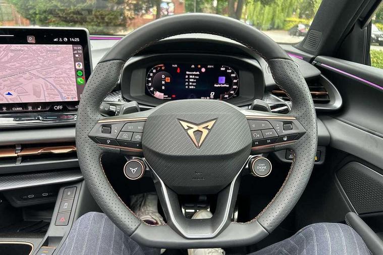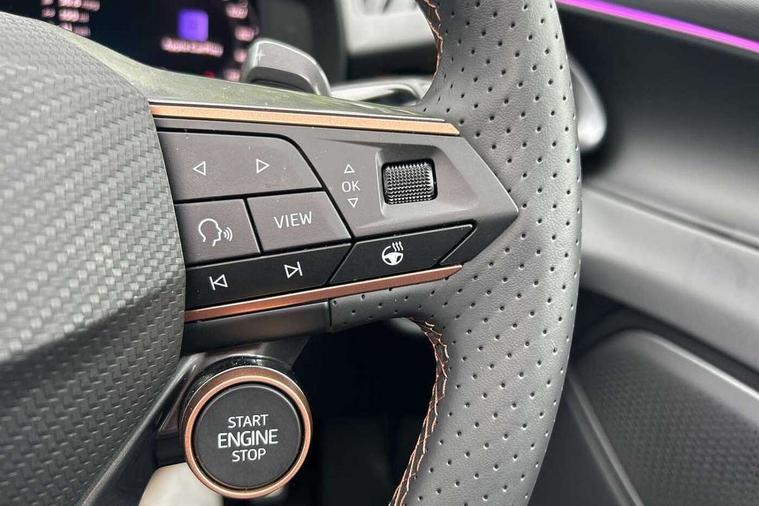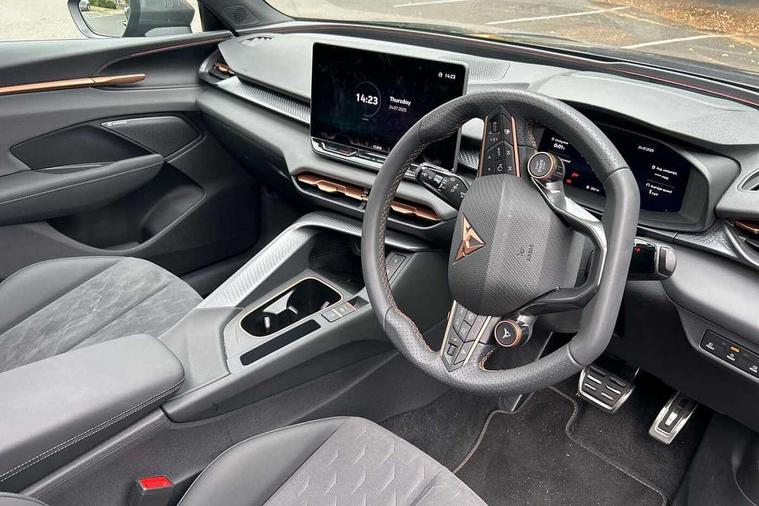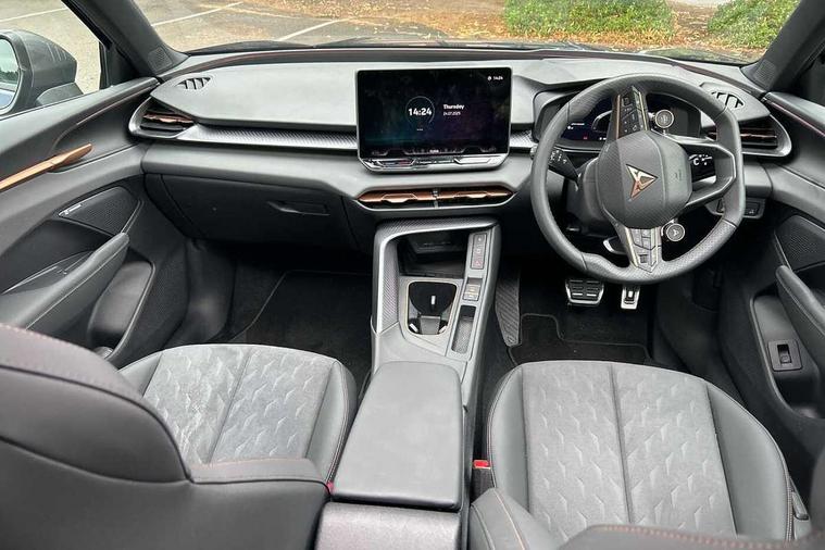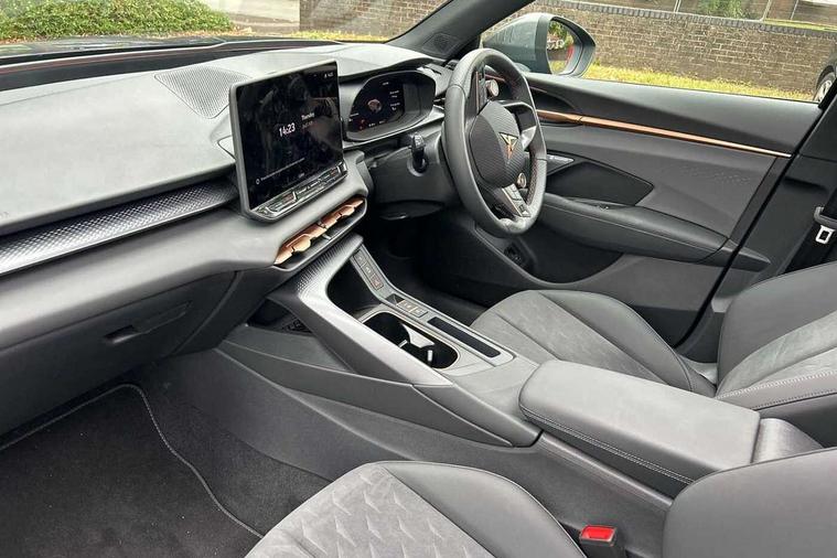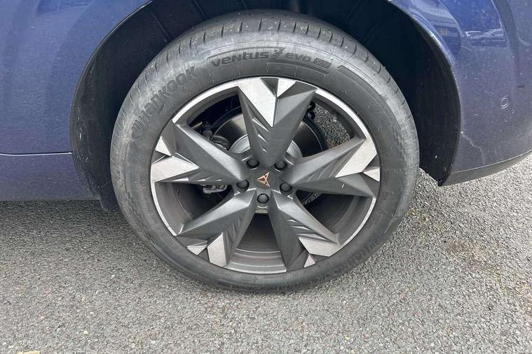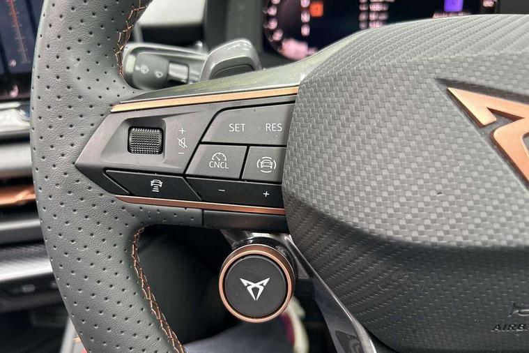 10.25" digital cockpit and configurable dashboard, Adaptive cruise control with follow-to-stop and speed limiter, Advanced driver alert system, Advanced lane assist with semi-automatic vehicle control in a medical emergency and traffic jam assist, Driving profile selection and conventional shock absorber, Dynamic road sign display, E-call, Electric tailgate with virtual pedal, Emergency steering support with turn assist, Four x USB Type C ports (2 in front and 2 in rear), Front and rear parking sensors, Front assist (Forward collision warning with automatic braking) with multifunction camera and front cross traffic assist, Head up Display, Intelligent park assist, Media system with Nav - 12.9" touch display, voice control, full link phone (wired/wireless), DAB and Steering wheel mounted controls, Rear traffic assist, Side and exit assist, Speed sensitive power steering, Start/stop system with regenerative braking, Top view camera (front camera, rear camera, 2 side cameras), Wireless phone charger, Auto dimming rear view mirror, Black roof rails, CUPRA 3D rear lights with ceremony & swiping indicator and illuminated logo, Dark tinted rear windows, Daytime running lights with automatic headlight control and Coming and Leaving home function, Door mirrors with memory function and lowing function on passenger mirror, Dynamic headlight range control, Electric front/rear windows, Electrically adjustable, heated and folding door mirrors, Front fog lamps with cornering function, Heat reflecting windscreen, High beam assist, LED headlamps with signature "CUPRA LED", Rain sensing wipers, Rear fog light on one side, back up light on both sides, Rear side wing doors, Rear wash/wipe, Third brake light, Welcome lights (within exterior mirror housing), 3 seat bench in 2nd row, Black roof lining, Cupra sports pedals, Dinamica cloth upholstery, Driver seat memory function, Electrically adjustable front seats including lumbar support, Front and rear head restraints, Front and rear reading lights X 4, Front centre armrest, Heated front seats, Heated leather wrapped multi function sports steering wheel with tiptronic, Illuminated interior front door sills, Isofix, Operating voltage 12V, Single front passenger seat, Smart wraparound interior lighting, Sunvisors with illuminated mirror, Three zone climate control with control panel in rear, Unsplit rear seat bench, split folding backrest, with centre armrest, Variable luggage/load compartment floor, 3 point seatbelts in front with pretensioner and electric height adjustment, 3 point seatbelts on all rear seats, Brake control system - ESC and brake booster, Child proof door locks, Driver and front passenger airbags, Electronic parking brake, Front and rear disc brakes, Front interaction airbag, Front passenger airbag deactivation switch, Front side airbags with curtain airbags, Pre-crash front and rear seat belt tensioner, window closure and hazard lights, Tyre pressure monitoring system, Visual and acoustic seat belt reminder, electric contact in front and rear, Anti theft alarm, Keyless locking and starting system with keyless access, Locking wheel bolts, Black decorative trims, Chrome interior detailing, 19" Spectrum exclusive machine alloy wheels, Tool kit,