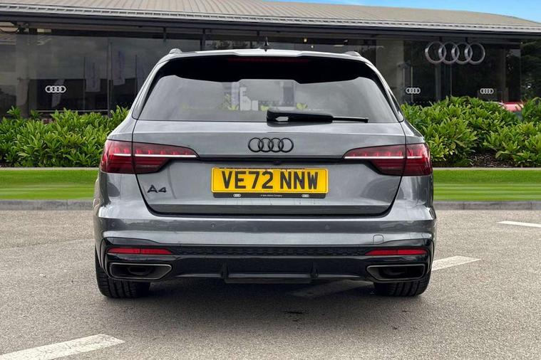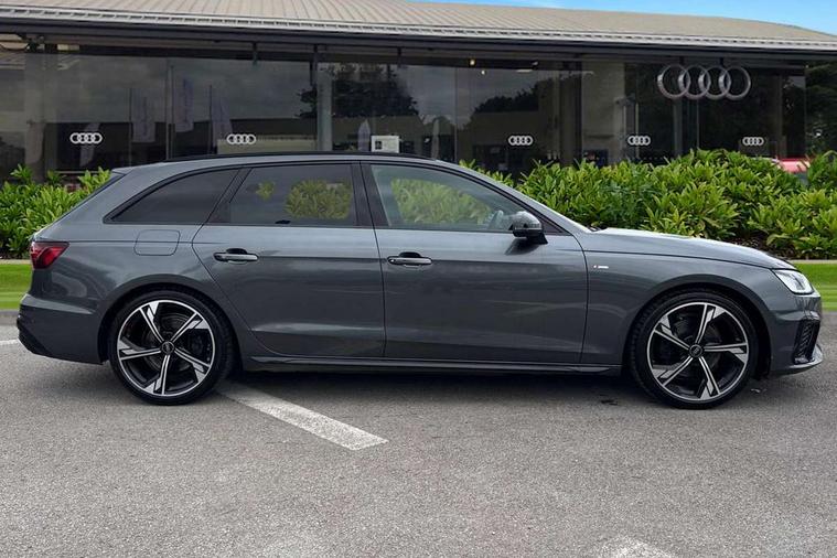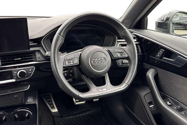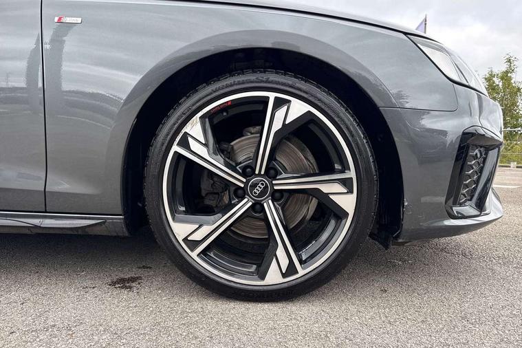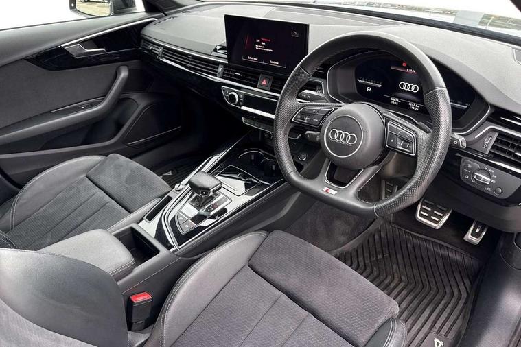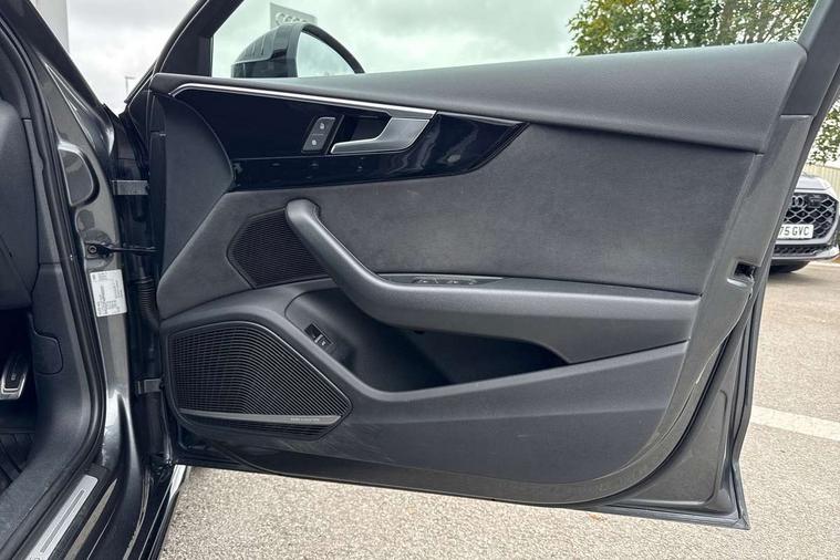 Audi connect safety and service (e-call), Audi connect with Amazon Alexa Integration, Audi drive select, Audi smartphone interface, Audi virtual cockpit, Automatic start-stop system with coasting functionality and efficiency programme, Bluetooth interface, Electromechanical power steering, Email, calendar and text messages displayed via MMI, MMI Navigation plus with MMI touch includes 10.1" high resolution colour MMI display, 3D map, Power operated tailgate, Voice control system, 54 litre fuel tank, Sports suspension lowered by 23mm, 2 USB charging ports, 8 passive loudspeakers, DAB digital radio reception, Audi beam uses LEDs to project the audi logo onto the ground as you exit your A4, Auto dimming rear view mirror, Black Audi rings and black badging (model name in black badging, no engine badging), Body colour door handles, Body colour front spoiler lip, Body colour side sill trim, Electrically folding auto dimming/adjustable/heated door mirrors with LED side indicators and kerb view function for passenger side, Exhaust tailpipes in high gloss black, Front and rear bumpers with side skirts, Grained matt black side air inlets with matt aluminium silver inlay, High beam assistant, High gloss black B pillar trims and triangular rear door trim, LED headlights with LED rear lights + dynamic rear indicators + headlight adjustment and high beam, turning light + LED daytime running lights, LED third brake light, Privacy glass, Rain and light sensors, Rear diffuser in matt titanium black with trim strip in matt aluminium silver, Rear side wing doors, Rear wiper, RS4 rear spoiler in body colour, S Line badges on the front wings, S Line roof edge spoiler, Variable intermittent front wash/wipe, Windscreen with acoustic glazing, 4 way electric lumbar support for driver and front passenger, 40/20/40 split folding 3 rear seat bench in 3 parts with rear centre armrest, Black cloth headlining, Black perforated leather gearknob, Contrast stitching on seats, steering wheel and gear lever gaiter, Deluxe 3 zone electronic climate control, Door sill trims with aluminium inlay, Electric load area cover, Front and rear head restraints, Front centre armrest, Heated front seats, Illuminated door sill trims with S logo, ISOFIX child seat mounting and top tether, Manual seat adjustment, Single front passenger seat, Stainless steel pedals and foot rest, Tool kit, Black styling pack - A4 Avant, LED Interior light pack - A4/S4, 3 rear seatbelts, 6 airbags - Driver, front passenger, curtain and side windows, Electronic Stabilisation Control (ESC) including ABS, ASR and EDL, Hill hold assist, Multi collision brake assist, Pop-up bonnet for pedestrian protection, Pre sense city, Rear door child safety locks, Seatbelt monitoring, Warning triangle and first aid kit, Anti theft alarm, Anti theft wheel bolts, Central locking, Keyless Go, Piano black finish inlay, 19" 5 arm flag design Audi sport diamond cut alloy wheels in gloss anthracite black, Tyre repair kit,