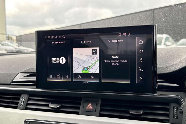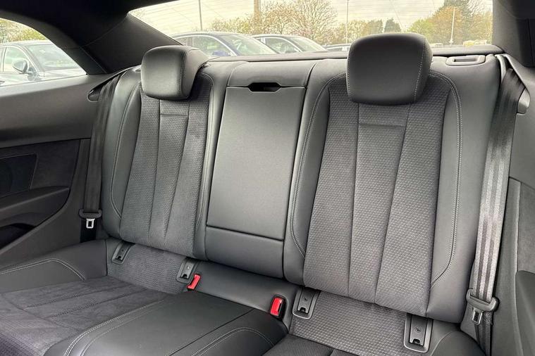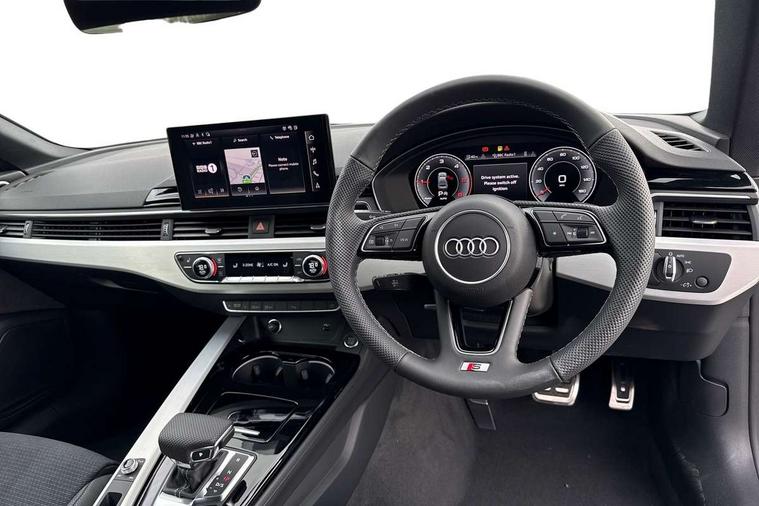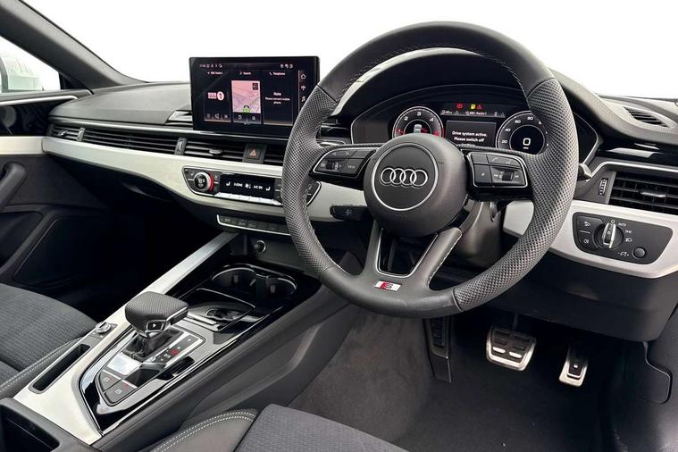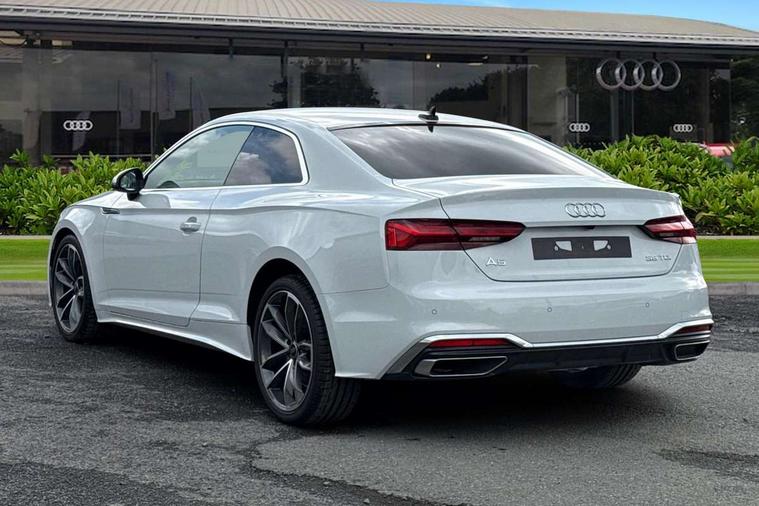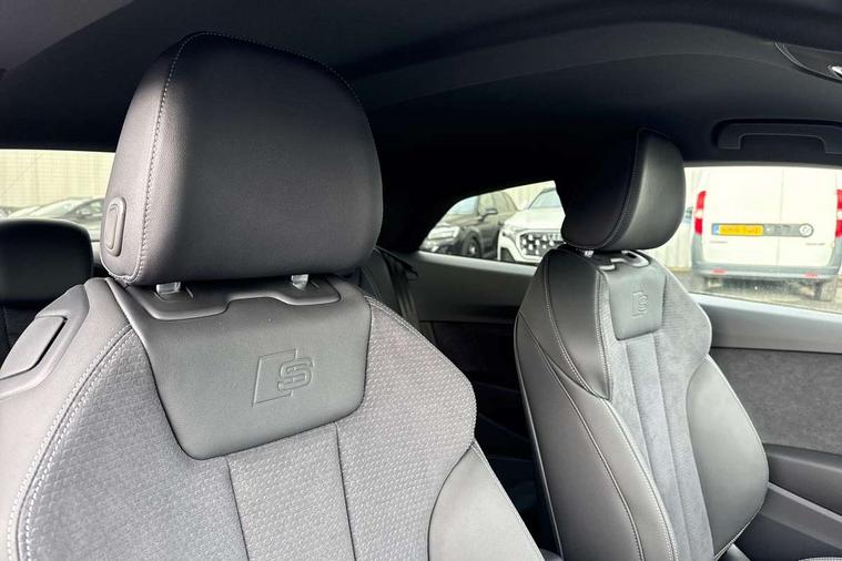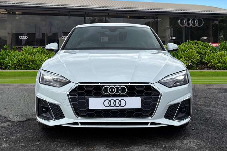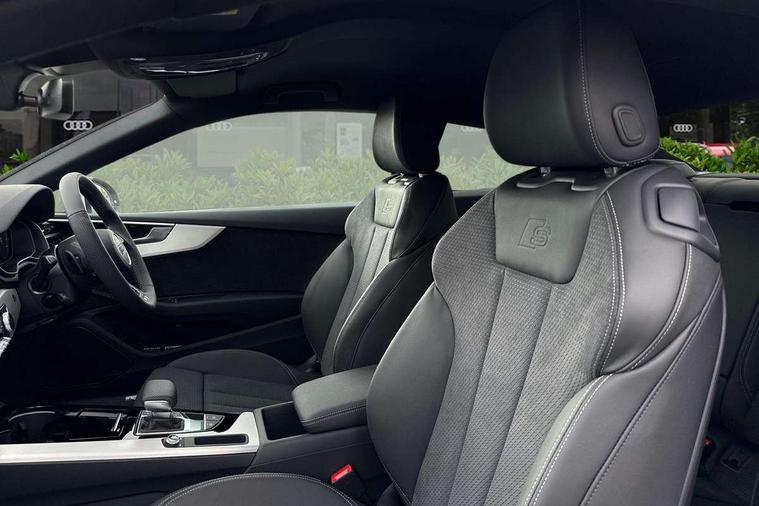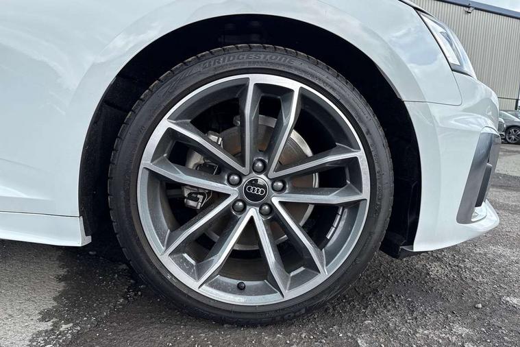 Audi connect safety and service (e-call), Audi drive select (Auto, Comfort, Dynamic, Efficiency and Individual), Audi parking system plus with front and rear sensors, Audi phone box with wireless charging, Audi smartphone interface, Audi virtual cockpit - 12.3" full colour digital instrument cluster, vehicle/engine speed, 3D navi map, Radio/media information+Driver assistance systems, Automatic start-stop system with coasting functionality and efficiency programme, Bluetooth interface, Electric boot lid release, Electro-mechanical power steering, Email, calendar and text messages displayed via MMI, MMI nav+ with MMI touch - 10.1" high resolution MMI display, touch sensitive, 3D map, route/country info, dynamic route guide, personal route assist, Rear view camera, Service interval indicator, Voice control system, Diesel particulate filter, Sports suspension lowered by 23mm, 8 passive loudspeakers, CD player, DAB digital radio reception, Two additional USB ports for rear passenger in rear centre console, Two SDXC card slots, Audi matrix LED headlights with LED rear lights + dynamic front and rear indicators, Auto dimming rear view mirror, Body colour bumpers, Body colour door handles, Body colour front spoiler lip, Body colour side sill trim, Body coloured door mirrors, Electric adjustable heated door mirrors, Electric folding door mirrors, Electric front windows, Front fog lights, Honeycomb structure radiator grille in grained matt black, Matt aluminium silver tailpipe trim, Privacy glass, Rain and light sensors, S line badges on front wings, S line front and rear bumpers with side skirts, S Line rear diffuser in matt titanium black with trim strip in matt aluminium silver, Side air inlets in grained matt black with matt aluminium silver inlay, Towbar preparation, Windscreen with acoustic glazing, 4 way electric lumbar support for driver and front passenger, 40/20/40 split folding 2 seater rear seat bench with rear centre armrest, Adjustable steering column, Black cloth headlining, Black perforated leather gearknob, Contrast stitching on seats, steering wheel and gear lever gaiter, Deluxe 3 zone electronic climate control, Front centre armrest, Front head restraints, Front/rear floor mats, Heated front seats, Illuminated door sill trim with S logo, ISOFIX child seat mounting and top tether, Luggage compartment mat, Manual seat adjustment, Rear headrests, Stainless steel pedals, Sunvisors with vanity mirrors, Tool kit, LED interior light pack - A5/RS5, 2 x 3-point rear seat belts, 6 airbags - Driver, front passenger, curtain and side airbags, Electromechanical parking brake, Electronic Stabilisation Control (ESC) including ABS, ASR and EDL, Front passenger airbag deactivation, Height adjustable front seatbelts, Hill hold assist, Multi collision brake assist, Pop-up bonnet for pedestrian protection, Seatbelt monitoring, Tyre pressure warning, Variable restraint system, Warning triangle and first aid kit, Anti theft alarm system, Anti theft wheel bolts, Immobiliser, Keyless Go, Remote central locking, Matt brushed aluminium inlays, Tyre repair kit,