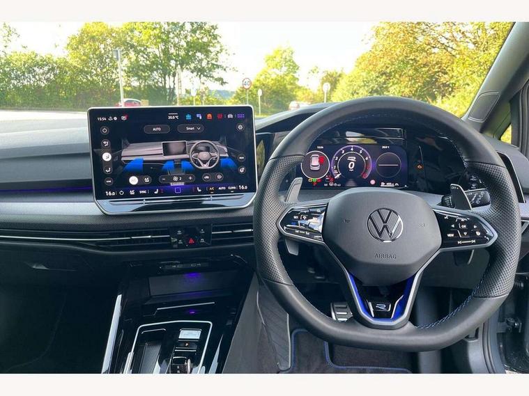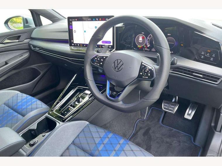 Activated carbon canister, Adaptive cruise control (ACC), Advanced driver attention and drowsiness monitor, Dynamic road sign display, E-Sim card for online connectivity, eCall emergency call system, Multi-color Digital cockpit pro, selection of different info profile possible, Multifunction front facing camera for distance control, Navigation system, Oncoming vehicle braking when turning including swerve support, Side assist blind spot lane change system, rear traffic alert and exit warning system, Speed limiter, Speedo, rev counter, electronic odometer, trip, service interval display, exterior temperature and fuel gauge, Traffic jam assist, Voice enhancer and voice control, Warning signal and warning light for front and rear seatbelts not fastened, We connect plus preparation, We connect preparation, Wireless app connect, All wheel drive - 4Motion, Petrol Particulate Filter, Start-stop system with battery regeneration (recuperation - energy recovery during braking), XDS electronic differential lock for improved traction and handling, 2 USB C ports in front, 2 USB charging sockets on the centre console in the rear charging capacity upto 45W, Digital radio reception (DAB), Diversity antenna for FM reception, Gaming platform via car app, Infotainment system with 12.9" display, Mobile phone interface with inductive charging feature, 3rd brake light, Auto dimming rear view mirror, Automatic headlamp activation with Coming home and Leaving home feature, Body colour door handles, Exterior mirror housings in matte chrome, Exterior mirrors convex on the left and aspherical on the right, Front and rear electric windows, Front fog lamps and cornering light, Heat insulating windshield made of laminated glass, LED matrix headlights with ambient light V2, advanced high beam, dynamic range contol with cornering, LED rear lamp with indicator, poor weather, LED separate daytime running light, R name plate, Rain sensor, Rear fog light on one side and reversing lights on both sides, Rear side wing doors, Rear tinted glass 65% light absorbing from B pillar backwards, Rear windscreen washer and wiper with interval delay, Remote electrically foldable door mirrors, puddle lights and reverse activated passenger's door mirror, Welcome light with surround lighting, 12V socket in front centre console, 12V socket in luggage compartment, 3 rear head restraints, 3 seat bench in 2nd row, 30 colour ambient lighting, illuminated center console storage compartment in front, Air care climatronic 3 Zone automatic climate control with rear air conditioning control panel, Aluminium gearshift handle, Brushed stainless steel pedals, Chrome plated radiator grille inserts, air vent surrounds and light switch surrounds, Entry lights, Front + rear black carpet mats, Front centre armrest, Integrated front head restraints, ISOFIX anchors for child seats on outer rear bench seats and on front passanger seat compatible for i-Size, Luggage compartment lighting, Rear cupholder and loadthough, Single front passenger seat, Soul black instrument panel, Soul black roof lining, Split folding backrest with centre armrest and unsplit rear seat bench, Sun visors with illuminated vanity mirrors, Driver assistance pack - Golf Estate/Hatchback Auto, R styling pack - Golf, Technology park and comfort pro package - Golf Hatchback, 3 point height adj front seatbelts + pretensioners, 3 rear three point seatbelts, ABS, Autonomous emergency braking front assist with pedestrian and cyclist monitoring, Child locks on rear doors, Driver and front passenger airbag with front passenger airbag deactivation, Electronic parking brake with auto hold, ESC (Electronic Stability Control), Extended pedestrian protection measures, Front blue brake callipers with R logo, Hill start assist, Rear disc brakes, Two tone horn, Tyre pressure loss indicator, Volkswagen roadside assistance, Anti theft wheel bolts, Preparation for alcohol interlock, Sporty vehicle dynamics, Tool kit for tyre mobility set, Tyre mobility kit Includes 12V compressor and tyre sealant,
