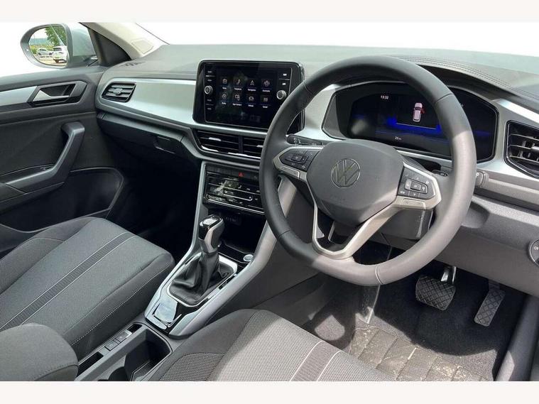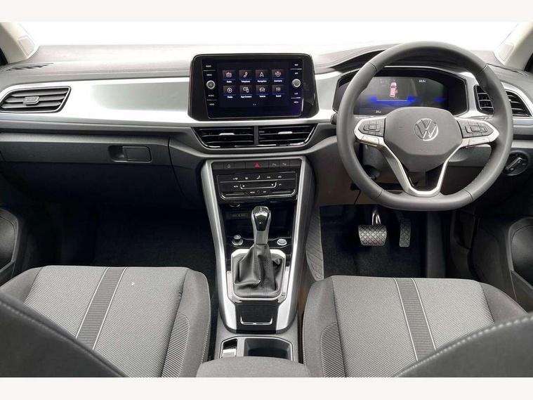 Advanced driver attention and drowsiness monitor, Dynamic road sign display, Emergency call service, Lane keeping system Lane Assist, Mobile phone interface, Modified key software - reduce switch off time for key status change to Long no motion, Online services, Park assist including front and rear parking sensors, Power assisted speed sensitive steering, Rear view camera, Service interval indicator, Tailgate/trunk lid release from outside, Think blue trainer driver tips and journey analysis, Warning sound and light for front seatbelts unfastened, Wireless app connect, Battery regeneration during braking, Front shock absorption, Rear shock absorption chassis with increased ride height, Start/stop function with battery regeneration, DAB Digital radio, Diversity antenna for FM reception, Music playback - MP3, WMA and AAC files, Premium USB cable in choice of either Apple or Android smartphone compatibility, SD card slot, Simultaneous pairing of 2 compatible mobile devices, Title and cover art display, We Connect and We Connect Plus functionality, Auto dimming interior rear view mirror, Automatic hazard lights activation under emergency braking, Automatic headlight control with LED separate daytime running lights with coming/leaving home function, Black roof rails, Body coloured bumpers and radiator grille with chrome trim and front fog lamps with chrome bezel, Body coloured exterior mirror housings and door handles, Electrically adjustable and heated door mirrors, Extended roof spoiler, Exterior mirrors aspherical on driver side, convex on front passenger side, External USB type C socket and charging sockets, Front windscreen wiper with intermittent wipe and 4 position delay, Heated rear window, LED 3rd brake light, LED rear combination lamps, LED rear number plate lights, Power windows with comfort operation and circuit breaker, Privacy glass for rear side windows and rear window, Rain sensor, Rear exhaust tailpipe, Rear fog light on one side and reversing lights on both sides, Rear side wing doors, Rear wash/wipe with intermittent wipe setting, Remote electrically foldable door mirrors, puddle lights and reverse activated passenger's door mirror, 12V power socket in centre console, 3 rear head restraints, 3 seat bench in 2nd row, 4 load lashing points in luggage compartment, Air care climatronic air conditoning system with active combination filter and 2-zone temperature control, Black stitching for floor mats, Ceramique roof liner, Cloth upholstery, Door and side trim panel in cloth, Drawer under drivers seat, Driver/front passenger seat height adjustment, Front centre armrest, Front comfort sports seats, Front cupholders x 2, Front reading light, Front seat back storage pockets, Glove compartment door with light, Instrument lighting, white adjustable panel illumination, Interior ambient lighting and surround lighting, Interior light delay, Isofix child seat preparation, Leather gearshift handle, Load-through provision with cup holder when folded down ('Unsplit rear seat bench, split folding backrest, with centre armrest), Luggage compartment lighting, Lumbar support for driver's and front passengers seat, Non-folding front passenger seat backrest, Single front passenger seat, Storage compartment in left and right luggage area, Storage compartment in rear doors, Storage compartments in driver and front passenger doors, Sunvisors with illuminated vanity mirrors, Variable boot floor, height adjustable and removable, Driver assistance pack without proactive passenger protection - T-Roc Life/Match, 3 point height adj front seatbelts + pretensioners, 3 point seatbelts in outer rear with ECE label, ABS, Child locks on rear doors, City emergency braking and pedestrian monitoring, Driver and front passenger airbag with front passenger airbag deactivation, Driver and front passenger safety-optimised head restraints, Drivers seatbelt reminder, Electronic parking brake, Electronic Stability Control (ESC) inc EDL (Electronic Differential Lock) and ASR (Traction Control), Front and rear passengers curtain airbag system including front side airbags, Front disc brakes, Hill start assist, Predictive pedestrian protection, Rear disc brakes, Two tone horn, Tyre pressure loss indicator, Volkswagen roadside assistance, Alarm with interior protection, Keyless locking and starting system keyless access with safelock, Pewter matt decorative inserts for intrument panel, centre console and door panels at the front, Trims for alloy wheels,