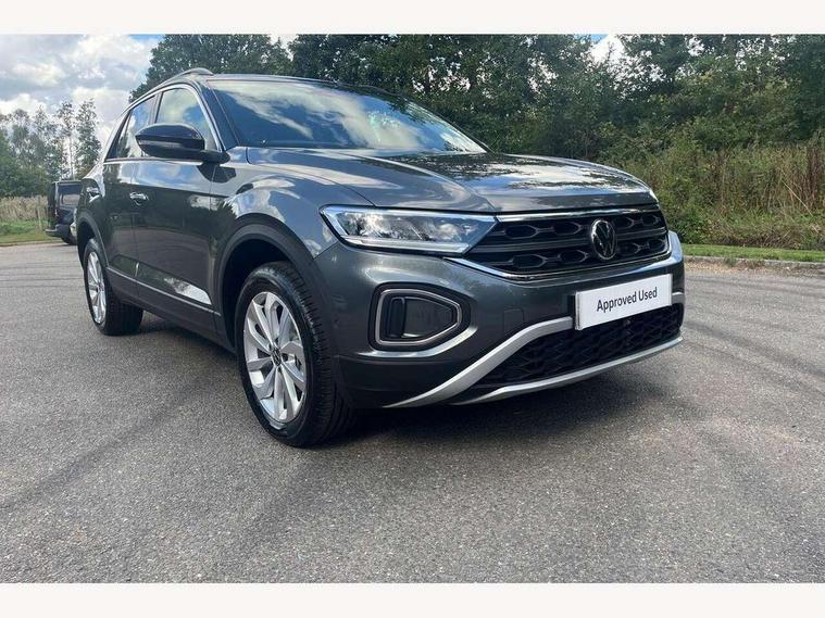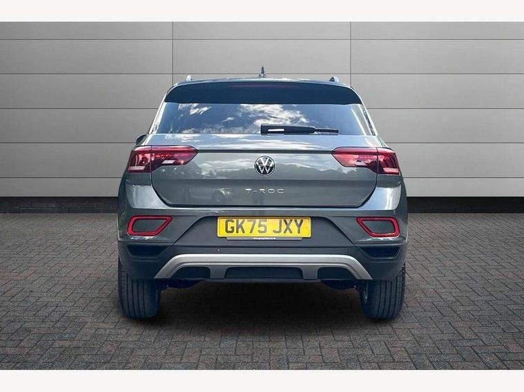 Advanced driver attention and drowsiness monitor, Dynamic road sign display, Emergency call service, Lane keeping system Lane Assist, Mobile phone interface, Modified key software - reduce switch off time for key status change to Long no motion, Online services, Park assist including front and rear parking sensors, Power assisted speed sensitive steering, Rear view camera, Service interval indicator, Tailgate/trunk lid release from outside, Think blue trainer driver tips and journey analysis, Warning sound and light for front seatbelts unfastened, Wireless app connect, Battery regeneration during braking, Front shock absorption, Rear shock absorption chassis with increased ride height, Start/stop function with battery regeneration, DAB Digital radio, Diversity antenna for FM reception, Music playback - MP3, WMA and AAC files, Premium USB cable in choice of either Apple or Android smartphone compatibility, SD card slot, Simultaneous pairing of 2 compatible mobile devices, Title and cover art display, We Connect and We Connect Plus functionality, Auto dimming interior rear view mirror, Automatic hazard lights activation under emergency braking, Automatic headlight control with LED separate daytime running lights with coming/leaving home function, Black roof rails, Body coloured bumpers and radiator grille with chrome trim and front fog lamps with chrome bezel, Body coloured exterior mirror housings and door handles, Electrically adjustable and heated door mirrors, Extended roof spoiler, Exterior mirrors aspherical on driver side, convex on front passenger side, External USB type C socket and charging sockets, Front windscreen wiper with intermittent wipe and 4 position delay, Heated rear window, LED 3rd brake light, LED rear combination lamps, LED rear number plate lights, Power windows with comfort operation and circuit breaker, Privacy glass for rear side windows and rear window, Rain sensor, Rear exhaust tailpipe, Rear fog light on one side and reversing lights on both sides, Rear side wing doors, Rear wash/wipe with intermittent wipe setting, Remote electrically foldable door mirrors, puddle lights and reverse activated passenger's door mirror, 12V power socket in centre console, 3 rear head restraints, 3 seat bench in 2nd row, 4 load lashing points in luggage compartment, Air care climatronic air conditoning system with active combination filter and 2-zone temperature control, Black stitching for floor mats, Ceramique roof liner, Cloth upholstery, Door and side trim panel in cloth, Drawer under drivers seat, Driver/front passenger seat height adjustment, Front centre armrest, Front comfort sports seats, Front cupholders x 2, Front reading light, Front seat back storage pockets, Glove compartment door with light, Instrument lighting, white adjustable panel illumination, Interior ambient lighting and surround lighting, Interior light delay, Isofix child seat preparation, Leather gearshift handle, Load-through provision with cup holder when folded down ('Unsplit rear seat bench, split folding backrest, with centre armrest), Luggage compartment lighting, Lumbar support for driver's and front passengers seat, Non-folding front passenger seat backrest, Single front passenger seat, Storage compartment in left and right luggage area, Storage compartment in rear doors, Storage compartments in driver and front passenger doors, Sunvisors with illuminated vanity mirrors, Variable boot floor, height adjustable and removable, Driver assistance pack without proactive passenger protection - T-Roc Life/Match, 3 point height adj front seatbelts + pretensioners, 3 point seatbelts in outer rear with ECE label, ABS, Child locks on rear doors, City emergency braking and pedestrian monitoring, Driver and front passenger airbag with front passenger airbag deactivation, Driver and front passenger safety-optimised head restraints, Drivers seatbelt reminder, Electronic parking brake, Electronic Stability Control (ESC) inc EDL (Electronic Differential Lock) and ASR (Traction Control), Front and rear passengers curtain airbag system including front side airbags, Front disc brakes, Hill start assist, Predictive pedestrian protection, Rear disc brakes, Two tone horn, Tyre pressure loss indicator, Volkswagen roadside assistance, Alarm with interior protection, Keyless locking and starting system keyless access with safelock, Pewter matt decorative inserts for intrument panel, centre console and door panels at the front, Trims for alloy wheels,