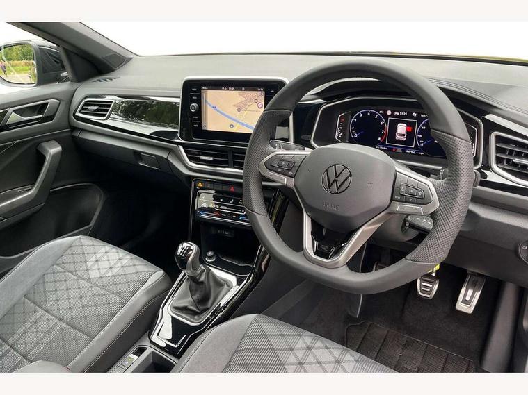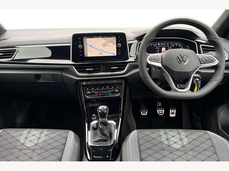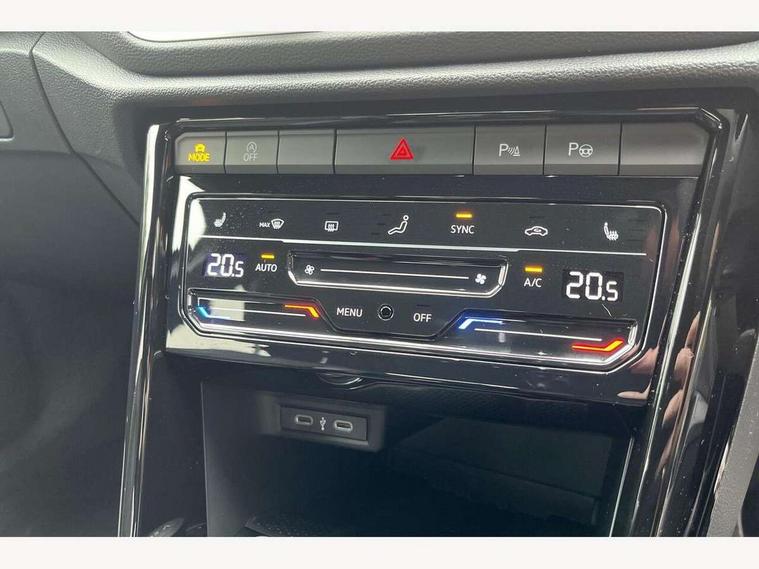 10.25" Digital cockpit pro, Advanced driver attention and drowsiness monitor, Emergency call service, Lane keeping system Lane Assist, Mobile phone interface, Modified key software - reduce switch off time for key status change to Long no motion, Online services, Park assist including front and rear parking sensors, Service interval indicator, Tailgate/trunk lid release from outside, Think blue trainer driver tips and journey analysis, Warning sound and light for front seatbelts unfastened, Wireless app connect, Battery regeneration during braking, Start/stop function with battery regeneration, DAB Digital radio, Diversity antenna for FM reception, Front and rear 6 speakers, Music playback - MP3, WMA and AAC files, Premium USB cable in choice of either Apple or Android smartphone compatibility, SD card slot, Simultaneous pairing of 2 compatible mobile devices, Title and cover art display, We Connect and We Connect Plus functionality, Auto dimming interior rear view mirror, Automatic hazard lights activation under emergency braking, Automatic headlight control with LED separate daytime running lights with coming/leaving home function, Body coloured exterior mirror housings and door handles, Electrically adjustable and heated door mirrors, Extended roof spoiler, Exterior mirrors aspherical on driver side, convex on front passenger side, External USB type C socket and charging sockets, Front windscreen wiper with intermittent wipe and 4 position delay, Heated rear window, LED 3rd brake light, LED rear combination lamps, LED rear number plate lights, Power windows with comfort operation and circuit breaker, Privacy glass for rear side windows and rear window, R-Line design body coloured bumpers, Rain sensor, Rear exhaust tailpipe, Rear fog light on one side and reversing lights on both sides, Rear side wing doors, Rear wash/wipe with intermittent wipe setting, Remote electrically foldable door mirrors, puddle lights and reverse activated passenger's door mirror, 12V power socket in centre console, 3 rear head restraints, 3 seat bench in 2nd row, 4 load lashing points in luggage compartment, Air care climatronic air conditoning system with active combination filter and 2-zone temperature control, Black roof lining, Chrome plated decorative trims, Chrome plated radiator grille inserts, air vent surrounds and light switch surrounds, Door and side trim panel with leatherette insert, Front + rear carpet mats, Front centre armrest, Front cupholders x 2, Front footwell illumination, Front reading light, Front scuff plates with R Line logo, Front seat back storage pockets, Glove compartment door with light, Instrument lighting, white adjustable panel illumination, Interior ambient lighting and surround lighting, Interior light delay, Isofix child seat preparation, Leather gearshift handle, Load-through provision with cup holder when folded down ('Unsplit rear seat bench, split folding backrest, with centre armrest), Luggage compartment lighting, Single front passenger seat, Stainless steel pedals, Storage compartment in left and right luggage area, Storage compartment in rear doors, Storage compartments in driver and front passenger doors, Sunvisors with illuminated vanity mirrors, Variable boot floor, height adjustable and removable, Driver assistance pack without proactive passenger protection - T-Roc, 3 point height adj front seatbelts + pretensioners, 3 point seatbelts in outer rear with ECE label, ABS, Child locks on rear doors, City emergency braking and pedestrian monitoring, Driver and front passenger airbag with front passenger airbag deactivation, Driver and front passenger safety-optimised head restraints, Drivers seatbelt reminder, Electronic parking brake, Electronic Stability Control (ESC) inc EDL (Electronic Differential Lock) and ASR (Traction Control), Front and rear passengers curtain airbag system including front side airbags, Hill start assist, Predictive pedestrian protection, Rear disc brakes, Two tone horn, Tyre pressure loss indicator, Volkswagen roadside assistance, Piano black decorative inserts in dashboard and front door trim panels, Trims for alloy wheels,
