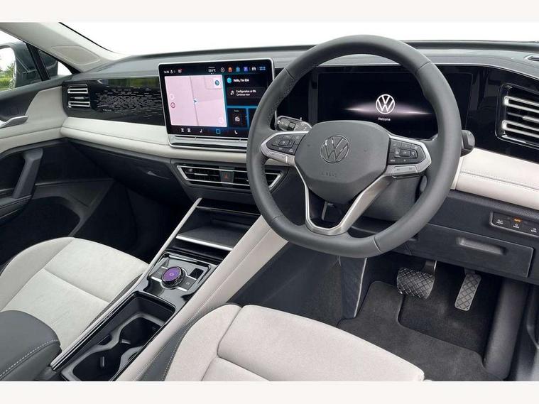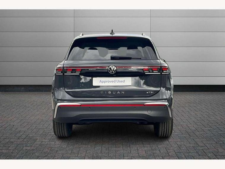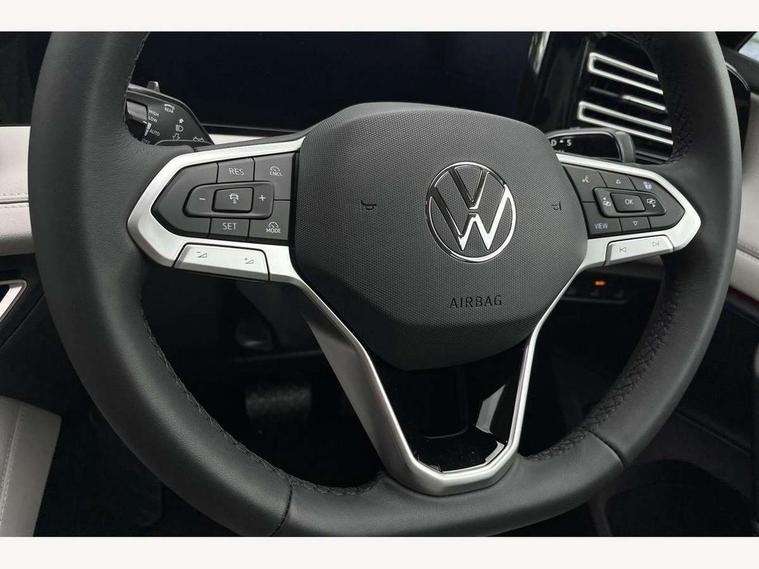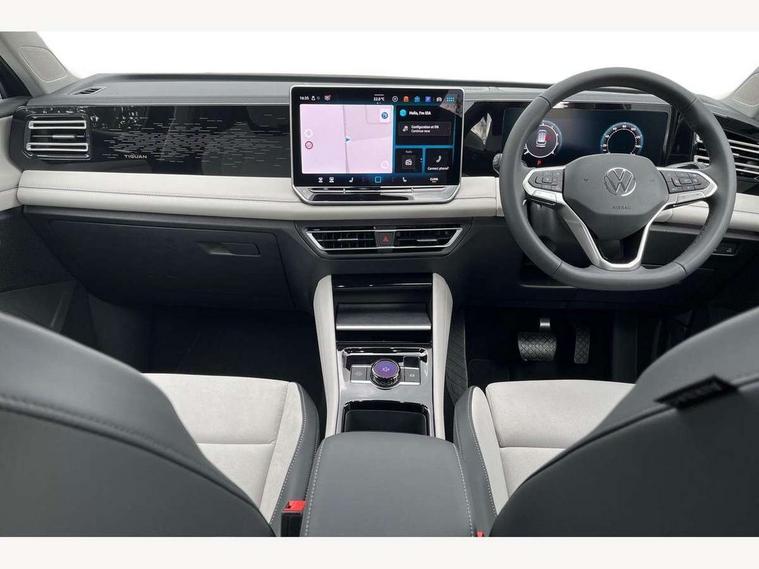 Adaptive cruise control (ACC), Advanced driver attention and drowsiness monitor, Bluetooth mobile phone interface, Car2X technology, Comfort drive travel assist, lane keeping system, lane assist and emergency assist, Digital Cockpit Pro - 10.25" high resolution dash display screen with customisable menus and information, Dynamic road sign display, E-Sim card for online connectivity, eCall emergency call service, Front Assist - Autonomous emergency braking with pedestrian and cyclist monitoring, Lane change system, Side assist, Rear traffic alert and Exit warning system, Multifunction front facing camera, Oncoming vehicle braking when turning including swerve support, Park assist pro with park distance control (Remote park assist), Power assisted steering with speed sensitive, Start/stop system with regenerative braking, Warning signal and warning light for front and rear seatbelts not fastened, Wireless App-Connect, Front wheel drive, Digital radio reception (DAB), Diversity antenna for FM reception, Air intake with Chrome trim, Ambient lighting with logo projection, Auto dimming interior rear view mirror, Automatic headlight control system, Body colored bumpers in R-Line style, Body coloured door handles, Body-coloured exterior mirror housings, Chrome moldings on the side windows, Coming/leaving home lighting function, Heat insulating glass in side and rear windows, Heated rear window, Heated windscreen washer jets, High level 3rd brake light, Illuminated door handle recesses, Illuminated lightline between headlamps, Laminated safety glass from B-pillar backwards 90% tinted, Laminated safety glass winshield, LED Day time running light, Rain sensor windscreen wipers, Rear fog light on one side, reversing light on both sides, Rear side wing doors, Rear wiper, Silver roof rails, 12V outlet in center console rear and in luggage compartment, 12V socket in centre console, 3 bench rear seats in 2nd row, Air care climatronic 3 zone air conditioning system with rear air conditioning control panel, Carpet mats, front and rear, Centre console with illuminated storage compartment with sliding cover and two drinks holders, Ceramique headlining, Chrome elements on the mirror switch and power window switches and door pulls, Door and side trim panel with leatherette insert, Door sill protectors, Front centre armrest, Interior ambient lighting with 30 colour options, ISOFIX anchors for child seats on outer rear seats and front passenger seat. Compatible with i-Size, Mechanical rear seat release, Power adjustable lumbar support in front, Rear bench seat, split folding, longitudinally movable and folding with load-through hatch and centre armrest, Safety optimised front head restraints, Single front passenger seat, Sports comfort seats in front, Sun visors with illuminated vanity mirrors, Three rear head restraints, Variable luggage compartment floor, Comfort package incl. Memory feature for Park assist and Safelock - Tiguan, Driver assistance package - Tiguan, 3 point seat belt for centre rear seats, 3 Point seat belts in front with pretensioners, 3 point seatbelts in outer rear with ECE label, Driver and front passenger airbag with front passenger airbag deactivation, Electronic parking brake with auto hold, Front and rear curtain airbags, Front and rear side airbags, Front centre airbag, Front disc brakes, Hill start assist, Manual child proof rear door locks, Rear disc brakes, Two tone horn, Warning triangle, Anti theft wheel bolts, Decorative inserts Cross in dash and front door panels, Interior door handle in matte chrome, Soul instrument panel, Airstop tyres,