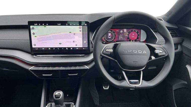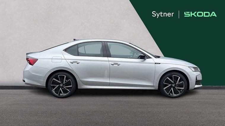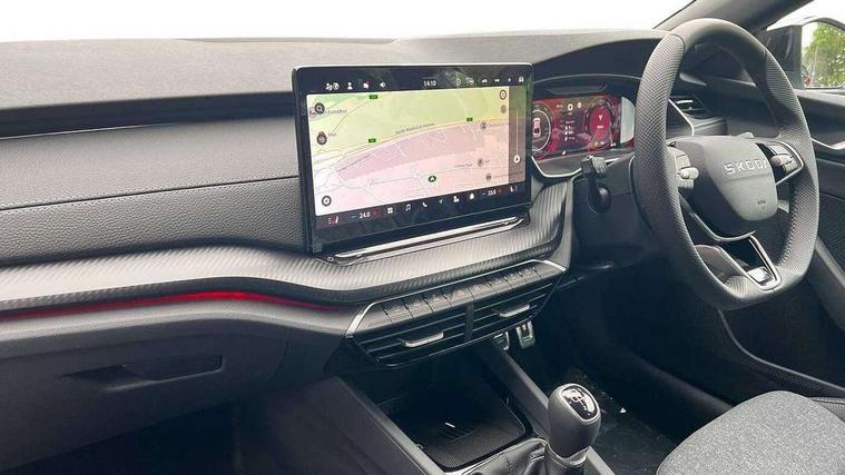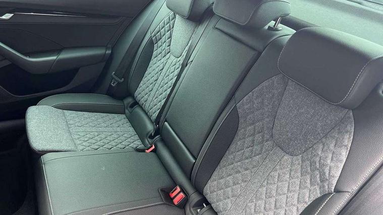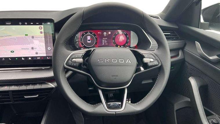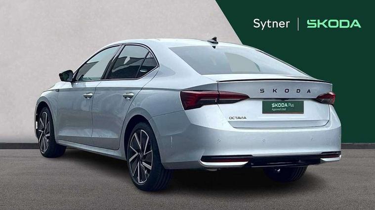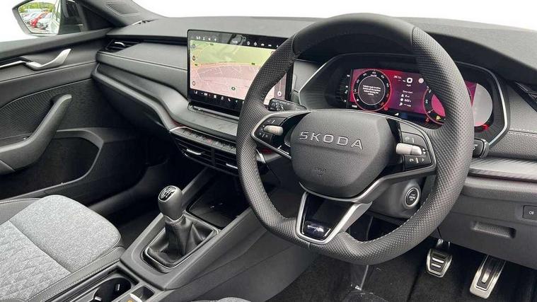 1x USB Typc C port in rear view mirror, 4x USB Type C ports - 2x in front centre console and 2x in rear (45W), Drive mode selection, Driver fatigue sensor, eCall emergency system, Front and rear parking sensors with manoeuvre assist, Front assist system, Progressive dynamic steering, Traffic sign recognition, Turn Assist, Virtual Cockpit - 10.25" digital display, Voice control system, Wireless charging (15W) with cooling function, Wireless SmartLink for Apple CarPlay and Android Auto, Sports suspension with 15mm lower, 13" touchscreen display with navigation, DAB Digital radio, Aero front windscreen wipers with intermittent function, Auto dimming rear view mirror, Body colour bumpers, Body colour door handles, Chrome strip in lower front bumper, Electric front and rear windows, Exterior gloss black sports styling including front grille, window surrounds, door mirrors and badging, Gloss black diffuser, Gloss black spoiler, Heated rear windscreen, High beam control, High level third brake light, Ice scraper in fuel cap, LED daytime running lights, Logo projection in front doors, Rain and light sensors, Rear fog light on one side and reversing lights on both sides, Rear privacy glass, Rear side wing doors, Rear wiper, 12 volt socket in boot, 3 rear headrests, 3 seat bench in 2nd row, 4 foldable roof handles, Aluminium pedals, Boot net programme, Front head restraints, Front sport seats, Heated front seats, Illuminated glovebox, Interior door handles in dark chrome, Jumbo Box storage, Luggage compartment lighting x2 lights, Mechanical rear seat release from boot, Parcel shelf - folding, Single front passenger seat, Steering wheel in black leather with black stitching, Storage compartment under passenger seat, Storage compartments in left and right of boot, Sun visors with mirrors, Sunglasses storage, Three spoke leather sports multifunction steering wheel, Ticket holder, Umbrella in door panel, Unsplit rear bench seat, split folding backrest with centre armrest with cupholder, SportLine Design Selection pack - Octavia, 3x3 point rear seat belts, Alarm with interior monitoring, tilt sensor and back up horn, Curtain airbags and front side airbags, Driver and front passenger airbags, Drivers knee airbag, Electronic parking brake, ESC including ABS, EBV, MSR, ASR, EDS, HBA, DSR, Front central airbag, Hill hold assist, ISOFIX on front passenger seat and outer rear seats, Passenger airbag deactivate switch, Three point seat belts in front and rear, Two tone horn, Tyre pressure monitor, Visual and acoustic seat belt reminder, Warning reflectors in front door, Anti-theft wheel bolts, Keyless entry and start/stop, Remote central locking, Gloss black air vent surrounds,