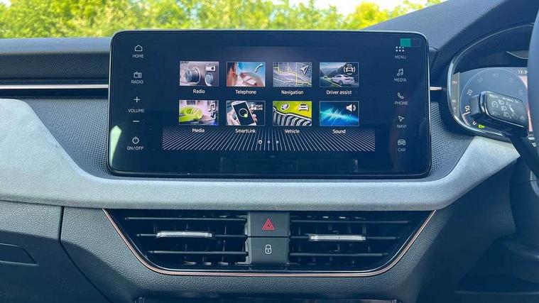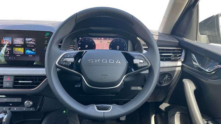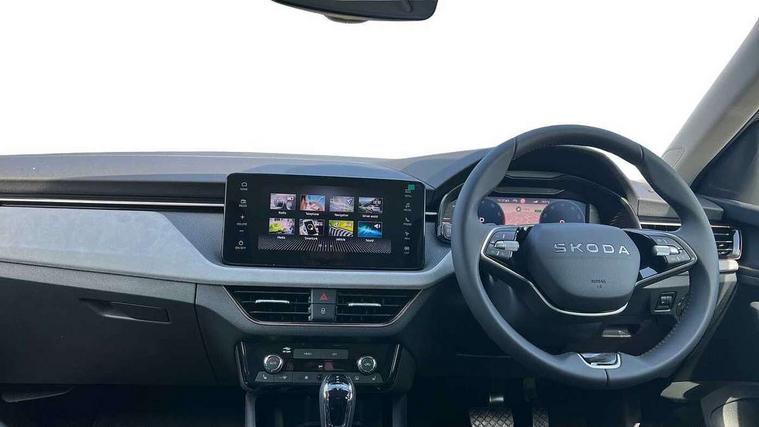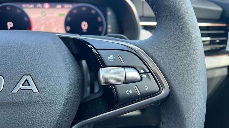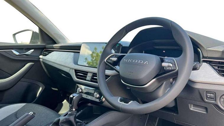 Advanced driver attention and drowsiness monitor, Bluetooth, e-Call (emergency call), Front assist system, PAS, Rear parking sensors, Rear view camera, Speed limiter, Tailgate, Traffic sign recognition, Virtual Cockpit - 10.25" digital display, Voice control system, Wireless smartlink, 4 USB C ports, 8 Speakers, 9.2" Skoda navigation display, DAB radio, Auto dimming rear view mirror, Automatic headlamp activation with Coming home and Leaving home feature, Automatic high/low beam, Automatic intermittent wipers, Body colour bumpers, Body colour door mirrors and handles, Chrome moulding around grille, Chrome window frames, Front and rear electric windows, Heated rear window, LED 3rd brake light, LED brake lights, LED daytime running lights, LED front turning lights, LED high beam, LED low beam, Light sensors, Privacy glass, Rear LED fog light, Rear side wing doors, Rear wiper, Tinted windows, Unique dark chrome design logo on alloy wheels, 12V socket in luggage compartment, 3 seat bench in 2nd row, Ambient lighting in white/red, Black / Copper armrest stitching, Cargo elements, Chrome inner door handles, Copper hotstamping, Door inserts in accent black, Driver and passenger sun visors with vanity mirror, Dual zone climate control, Front and rear roof lights, Front centre armrest, Front head restraints, Glasses storage in roof liner, Height adjustable driver seat, Height adjustable passenger seat, Ice scraper, Illuminated glove compartment, Inner circulation control with pollen filter, ISOFIX for front passenger seat, Isofix preparation for back seats, Leather gearknob and handbrake lever, Lodge cloth upholstery, Luggage net under rear parcel shelf, Manual lumbar support for front seats, Net package and top tether hooks in boot space, Pearl grey ceiling, Pocket on the back of both front seats, incl. mobile phone pockets, Rear centre armrest, Single front passenger seat, Skoda lettering on steering wheel, Textile floor mats, Third rear headrest, Ticket holder, Top tether for front passenger seat, Umbrella in driver's door, Convenience pack without rear camera - Scala, 3x3 point rear seatbelts, ABS, Child locks, Curtain airbags and front side airbags, Disc brakes, Driver and front passenger airbags, ESP, Hill hold control, Manual leather parking brake, One tone horn, Passenger airbag switch off function, Seatbelt reminder for driver and front passenger, Tyre pressure monitoring system, Anti theft alarm system with interior monitoring, backup horn and towing protection, Anti-theft wheel bolts, Remote central locking with 2 remote folding keys, SAFE function for remote central locking, Decorative inserts,