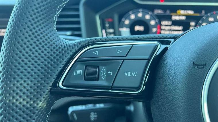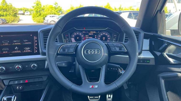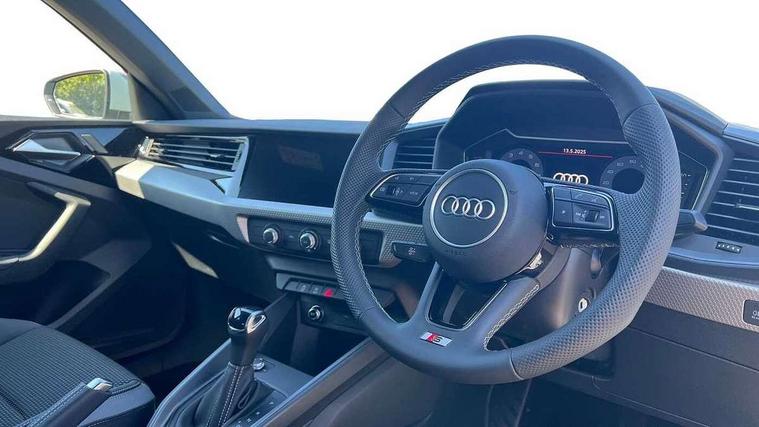 10.25" Digital instrument cluster display classis style instrument dials + speed, odometer, time, outside temperature, telephone menu + fuel level warning, Advanced driver attention and drowsiness monitor, Audi connect emergency call and service, Audi remote connect and control, Audi smartphone interface, Bluetooth interface, Camera based traffic sign recognition, Cruise control, Driver's information system, Electromechanical power steering, Lane departure warning system, Rear parking sensor, Service interval indicator, Speed limiter, Start stop system with recuperation, Voice control system, Washer fluid level indicator, Sports suspension, 2 x USB type C connection points, 6 loudspeakers, DAB Digital radio, MMI radio plus with 10.1" colour MMI display screen and MMI touch, Auto dimming rear view mirror, Body coloured door mirrors, Door sill trims with aluminium inlays and S line logo in front, Electric front and rear windows, Electrically adjustable, heated, folding door mirrors with integrated LED side indicator, Front side air inlets in grained matt black and C frame in anthracite black, Headlight cleaning system, Heat insulating glass windscreen and side windows, Heated rear windscreen, High level LED brake light, LED daytime running lights, LED headlights with range control LED rear lights + dynamic rear indicators, Privacy glass, Radiator grille and rear diffuser in matt anthracite black, Radiator protective grille frame in matt aluminium silver, Rain and light sensors, Rear fog lights, Rear side wing doors, Rear wiper, S line badges on front wings, Side front spoiler lips in grained matt black, 12V socket in centre console with two cup holders, 3 rear seats with headrests, 3 seat bench in 2nd row, 3 spoke leather multi-function plus steering wheel features S badging and grips in perforated leather with contrast stitching, 40:60 Split folding rear seat or fully collapsed, Black cloth headlining, Front and rear velour black floor mats with contrast stitching in fine silver, Front head restraints, Front passenger seat, Height and reach adjustable steering wheel, Interior lighting includes roof module, front and rear reading lights and right luggage compartment lighting, ISOFIX child seat mounting for front passenger and outer rear seats including top tether attachment point of outer rear seats, Leather gear knob with aluminium trim, Leather handbrake grip, Manual air conditioning, Manual height adjustable for driver and front passenger seat, Manually adjustable lumbar support in front seats, Stainless steel pedals, Ambient lighting package - A1, Luggage compartment pack - A1, S line exterior styling pack - A1 Sportback, 3x3 point rear seatbelts, Audi pre-sense front with pedestrain and cyclist recognition, Brake assist function, Driver and front passenger airbag with front side and head airbags, Electronic Stability Control including ABS, EBD, ASR and EDL, Front passenger airbag deactivation switch, Hill hold assist, Manual rear child locks, Seatbelt height adjustment for front seats, Seatbelt monitoring, Tyre pressure loss indicator, Warning triangle and first aid kit, Anti theft alarm, Anti theft wheel bolts, Immobiliser, Remote control key with safelock, Aluminium trim for control switches, air vents and digital instrument cluster, Black dashboard, Silver grey inlays polygon structure in diamond paint finish, Structured grey accent surfaces insert of air vents, interior door handle recesses and centre console in quartz paint finish,