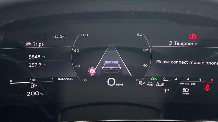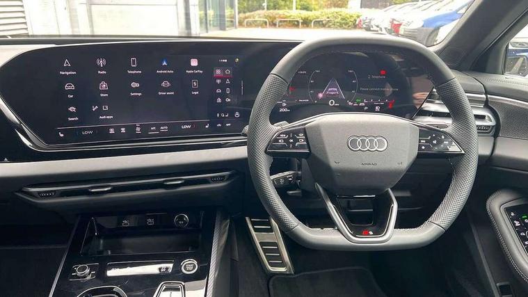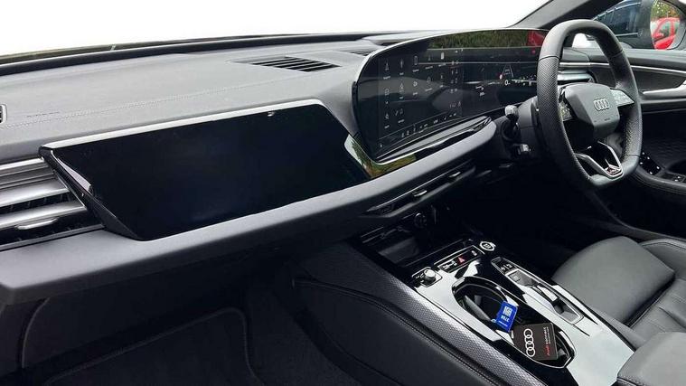 Adaptive cruise control, Advanced driver attention and fatigue montior, Audi application store, Audi assistant, Audi connect emergency call and service, Audi drive select, Audi smartphone interface, Audi virtual cockpit plus with 11.9" OLED colour display, Automatic start/stop system with coasting functionality, Camera based traffic sign recognition, Intersection assist, Lane departure warning, MMI navigation plus with high resolution 14.5" OLED touchscreen colour display, Park assist plus, Parking system plus with 360 display, Progressive steering with servotronic, Rear view camera, Swerve assist and turn assist, Traffic sign based speed limiter, Sports suspension lowered by 20mm, 2 USB-C ports in both the front and rear, Audi sound system impressive sound with 10 loudspeakers including centre speaker and subwoofer, 6-channel amplifier with a total output of 180 watts, DAB digital radio reception, Smartphone compartment with wireless charging, Aluminium window trims, Auto dimming rear view mirror, Body colour door mirrors, Door mirrors - electrically adjustable, heated, folding and auto dimming on both sides, Front and rear electric windows, Front door sill trims with aluminium inlays, illuminated with 'S' logo, High beam assist, LED headlights Plus incl. digital daytime running lights, turning light, all-weather light, motorway light, manouevring light and intersection light, LED rear lights pro incl. dynamic rear indicators and illuminated light strip with animated coming and leaving home function, LED third brake light, Privacy glass, Rear and side windows with heat insulating glass, Rear boot, Rear side wing doors, S Line badges on the front wings, S line bumpers, radiator grille and diffuser in phantom black and diffuser insert in matt anthracite, White rhombus logo projection light in exterior mirrors, Windscreen with acoustic glazing, 3 rear headrests, 3 seat rear bench, 3 spoke leather steering wheel with multi-function buttons with touch control, flattened on top and bottom, with S badging and contrast stitching, 3-zone automatic climate control, 40:20:40 split folding rear seat bench with centre armrest and cup holders, Comfort front centre armrest, Front and rear floor mats, Front seats with manual adjustment for position and 4-way electric lumbar support, Front sport seats with integrated headrest and S embossed logo, Headlining in black cloth, Heated front seats, i-Size child seat mounting on the front passenger side and i-Size and top tether on the outer rear seats, Luggage compartment lid, electrically opening and closing, Manual steering column height and depth adjustment, Single front passenger seat, Stainless steel pedals and footrest, Steering wheel grips in perforated leather and shift paddles, Ambient lighting package plus - A5, 3x3 point rear seat belts, Driver airbag, Electric child safety locks, First aid kit with warning triangle and vests, Front emergency brake assist, Front passenger airbag, Front passenger airbag deactivation, Front side airbags with head airbag system and front interaction airbag, Hill hold assist, Seat belt monitoring with rear seat occupant reminder, Tyre pressure loss indicator, Anti theft alarm, Anti-theft wheel bolts, Keyless Go, Accent surfaces and control buttons in gloss black, Black dashboard with contrast stitching, Inlays in matt brushed aluminium with linear embossing, anthracite, Softwrap in leatherette with contrast stitching, Upper and lower interior elements in leatherette, Tyre repair kit,