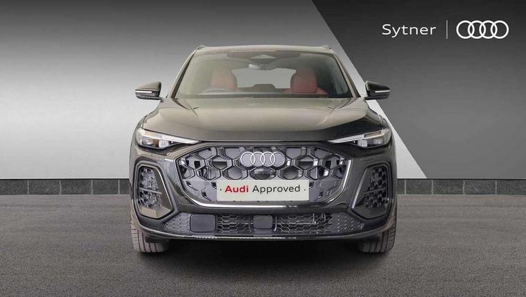 Adaptive cruise assist plus with steering intervention, Advanced driver attention alert, Audi application store, Audi connect emergency call and service, Audi digital key, Audi drive select, Audi smartphone interface, Audi virtual cockpit plus with 11.9" OLED colour display, Camera based traffic sign recognition, Fatigue monitor, Front cross traffic intersection assist, Garage door opener, Lane change assistant with exit warning system, rear cross traffic alert and rear turn assist, Lane departure warning with emergency assist, MMI 10.9" front passenger touch display, MMI navigation plus with high resolution 14.5" OLED touchscreen colour display, Park assist plus, Parking system plus with 360 display, PAS, Reversing camera, Swerve assist and turn assist, Top view camera, Traffic sign based speed limiter, S adaptive air suspension, 2 USB-C ports in both the front and rear, DAB Digital radio, Smartphone compartment with wireless charging, Acoustic glass for front door windows, Active digital light signatures - Six additional combinations of active daytime running light signature, Auto dimming rear view mirror, Coming/leaving home lighting function, Digital OLED tail lights including communication light, Electrically adjustable heated and folding + automatically dimming exterior mirrors, Exhaust tailpipes in dark chrome, Front and rear electric windows, Front door sill trims with aluminium inlays, illuminated with 'S' logo, Full body paint finish, Headlight cleaning system, Heated rear window, High beam assist, High gloss window surrounds, Inlay and front air inlets in matt anthracite chrome, Logo projection light in exterior mirrors, Matrix LED headlights, Memory function for door mirrors, Panoramic sunroof, Privacy glass, Projection light for rear window, Radiator grille in phantom black, Rear and side windows with heat insulating glass, Rear honeycombe grille in matt black with inlay in matt anthracite chrome, Rear side wing doors, Rear wash/wipe, Red S rhombus badging with 'S' lettering on rear, S exterior styling, Towbar preparation, Windscreen with acoustic glazing, 3 rear head restraints, 3 seat bench in 2nd row, 3 spoke leather steering wheel with multi-function buttons with touch control, flattened on top and bottom, with S badging and contrast stitching, 40:20:40 split folding rear seat bench with centre armrest and cup holders, Comfort centre armrest, Deluxe 3 zone electronic climate control, Electric steering wheel adjustment, Electrically adjustable front seats with memory function for driver's side, Front and rear floor mats, Front seat ventilation, Front sport seats with integrated head reastrains, Headlining in black cloth, Heated front seats, Heated outer rear seats, Heated steering wheel, i-Size child seat mounting on the front passenger side and outer rear seats, i-Size and top tether on the outer rear seats, Interior trim in aluminium look, Luggage compartment lid, electrically opening and closing, Perforated fine nappa leather with diamond stitching incl. ventilation and massage function for front seats, Pneumatically adjustable lumbar support with massage function for front seats, Single front passenger seat, Softwrap in Dinamica, Stainless steel pedals and footrest, Steering wheel grips in perforated leather and shift paddles, Ambient lighting package plus - Q5, Black styling package plus - Q5, Sound and Vision pack - Q5, Storage and luggage compartment pack - Q5, 3x3 point rear seatbelts, ABS, Acoustic vehicle alerting system, Convenience key with safelock, Driver and front passenger airbag with passenger airbag deactivation, Electric child safety locks, First aid kit with warning triangle and high visibility vests, Front emergency brake assist, Front side airbags with head airbag system and front interaction airbag, Hill hold assist, Occupant detection in rear seat area, Proactive passenger protection system for front, sides and rear, Red brake calipers, Side airbags in front and rear with head airbag system and front interaction airbag, Tyre pressure loss indicator, Anti theft alarm, Anti-theft wheel bolts, Remote control key with SAFELOCK and keyless go, Accent surfaces and control buttons in gloss black, Black dashboard with contrast stitching, Steel grey seat stitching, Upper and lower interior elements in dinamica microfiber, Tyre repair kit,