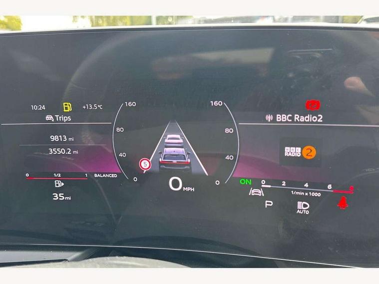 Adaptive cruise control, Advanced driver attention and fatigue montior, Audi application store, Audi assistant, Audi connect emergency call and service, Audi drive select, Audi smartphone interface, Audi virtual cockpit plus with 11.9" OLED colour display, Automatic start/stop system with coasting functionality, Camera based traffic sign recognition, Intersection assist, Lane departure warning, MMI navigation plus with high resolution 14.5" OLED touchscreen colour display, Park assist plus, Parking system plus with 360 display, Progressive steering with servotronic, Rear view camera, Swerve assist and turn assist, Traffic sign based speed limiter, Sports suspension lowered by 20mm, 2 USB-C ports in both the front and rear, Audi sound system impressive sound with 10 loudspeakers including centre speaker and subwoofer, 6-channel amplifier with a total output of 180 watts, DAB digital radio reception, Smartphone compartment with wireless charging, Aluminium roof rails, Aluminium window trims, Auto dimming rear view mirror, Body colour door mirrors, Door mirrors - electrically adjustable, heated, folding and auto dimming on both sides, Front and rear electric windows, Front door sill trims with aluminium inlays, illuminated with 'S' logo, High beam assist, LED headlights Plus incl. digital daytime running lights, turning light, all-weather light, motorway light, manouevring light and intersection light, LED rear lights pro incl. dynamic rear indicators and illuminated light strip with animated coming and leaving home function, LED third brake light, Privacy glass, Rear and side windows with heat insulating glass, Rear side wing doors, Rear wash/wipe, S Line badges on the front wings, S line bumpers, radiator grille and diffuser in phantom black and diffuser insert in matt anthracite, White rhombus logo projection light in exterior mirrors, Windscreen with acoustic glazing, 3 rear headrests, 3 seat rear bench, 3 spoke leather steering wheel with multi-function buttons with touch control, flattened on top and bottom, with S badging and contrast stitching, 3-zone automatic climate control, 40:20:40 split folding rear seat bench with centre armrest and cup holders, Comfort front centre armrest, Front and rear floor mats, Front seats with manual adjustment for position and 4-way electric lumbar support, Front sport seats with integrated headrest and S embossed logo, Headlining in black cloth, Heated front seats, i-Size child seat mounting on the front passenger side and outer rear seats, i-Size and top tether on the outer rear seats, Luggage compartment lid, electrically opening and closing, Manual steering column height and depth adjustment, Single front passenger seat, Stainless steel pedals and footrest, Steering wheel grips in perforated leather and shift paddles, Ambient lighting package plus - A5, 3x3 point rear seat belts, Driver airbag, Electric child safety locks, First aid kit with warning triangle and vests, Front emergency brake assist, Front passenger airbag, Front passenger airbag deactivation, Front side airbags with head airbag system and front interaction airbag, Hill hold assist, Seat belt monitoring with rear seat occupant reminder, Tyre pressure loss indicator, Anti theft alarm, Anti-theft wheel bolts, Keyless Go, Accent surfaces and control buttons in gloss black, Black dashboard with contrast stitching, Inlays in matt brushed aluminium with linear embossing, anthracite, Softwrap in leatherette with contrast stitching, Upper and lower interior elements in leatherette, Tyre repair kit,