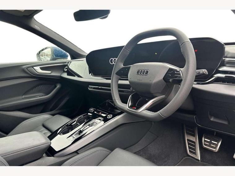 Adaptive cruise control, Advanced driver attention and fatigue montior, Audi application store, Audi assistant, Audi connect emergency call and service, Audi drive select, Audi smartphone interface, Audi virtual cockpit plus with 11.9" OLED colour display, Automatic start/stop system with coasting functionality, Camera based traffic sign recognition, Intersection assist, Lane departure warning, MMI navigation plus with high resolution 14.5" OLED touchscreen colour display, Park assist plus, Parking system plus with 360 display, Progressive steering with servotronic, Rear view camera, Swerve assist and turn assist, Traffic sign based speed limiter, Sports suspension lowered by 20mm, 2 USB-C ports in both the front and rear, Audi sound system impressive sound with 10 loudspeakers including centre speaker and subwoofer, 6-channel amplifier with a total output of 180 watts, DAB digital radio reception, Smartphone compartment with wireless charging, Aluminium roof rails, Aluminium window trims, Auto dimming rear view mirror, Body colour door mirrors, Door mirrors - electrically adjustable, heated, folding and auto dimming on both sides, Front and rear electric windows, Front door sill trims with aluminium inlays, illuminated with 'S' logo, High beam assist, LED headlights Plus incl. digital daytime running lights, turning light, all-weather light, motorway light, manouevring light and intersection light, LED rear lights pro incl. dynamic rear indicators and illuminated light strip with animated coming and leaving home function, LED third brake light, Privacy glass, Rear and side windows with heat insulating glass, Rear side wing doors, Rear wash/wipe, S Line badges on the front wings, S line bumpers, radiator grille and diffuser in phantom black and diffuser insert in matt anthracite, White rhombus logo projection light in exterior mirrors, Windscreen with acoustic glazing, 3 rear headrests, 3 seat rear bench, 3 spoke leather steering wheel with multi-function buttons with touch control, flattened on top and bottom, with S badging and contrast stitching, 3-zone automatic climate control, 40:20:40 split folding rear seat bench with centre armrest and cup holders, Comfort front centre armrest, Front and rear floor mats, Front seats with manual adjustment for position and 4-way electric lumbar support, Front sport seats with integrated headrest and S embossed logo, Headlining in black cloth, Heated front seats, i-Size child seat mounting on the front passenger side and outer rear seats, i-Size and top tether on the outer rear seats, Luggage compartment lid, electrically opening and closing, Manual steering column height and depth adjustment, Single front passenger seat, Stainless steel pedals and footrest, Steering wheel grips in perforated leather and shift paddles, Ambient lighting package plus - A5, 3x3 point rear seat belts, Driver airbag, Electric child safety locks, First aid kit with warning triangle and vests, Front emergency brake assist, Front passenger airbag, Front passenger airbag deactivation, Front side airbags with head airbag system and front interaction airbag, Hill hold assist, Seat belt monitoring with rear seat occupant reminder, Tyre pressure loss indicator, Anti theft alarm, Anti-theft wheel bolts, Keyless Go, Accent surfaces and control buttons in gloss black, Black dashboard with contrast stitching, Inlays in matt brushed aluminium with linear embossing, anthracite, Softwrap in leatherette with contrast stitching, Upper and lower interior elements in leatherette, Tyre repair kit,