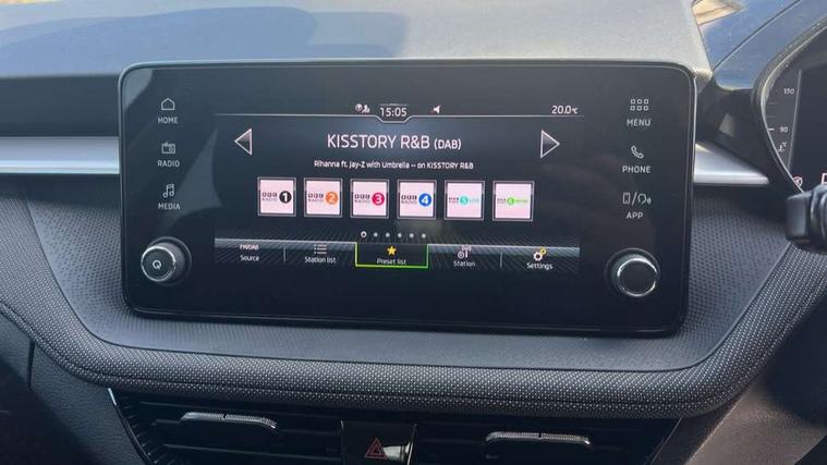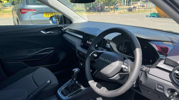 Advanced driver attention and drowsiness monitor, Bluetooth connection, Electromechanical power steering, Exterior temperature gauge, Service interval indicator, Traffic sign recognition, Virtual cockpit with 10.25" colour display, Wireless SmartLink for Apple CarPlay and Android Auto, 6 Speakers (4 in front and 2 in rear), Auxiliary socket for external MP3 player, DAB digital radio reception, Auto dimming rear view mirror, Body coloured bumpers, Door mirror integrated indicators, Front and rear electric windows, Front window wiper intermittent control, Headlight range control - Automatic, Ice scraper in fuel cap, LED daytime running lights with coming and leaving home feature, LED rear lights, Privacy glass, Rear LED fog light, Rear side wing doors, Rear window wiper with washing nozzles, Roof mounted spoiler, SKODA tailgate lettering in chrome, Third brake light, Unique dark chrome design logo on alloy wheels, 2 reading lights in front and 2 reading lights in rear, 3 rear headrests, Backrest split and folding, Central console with removable cup holder and storage box, Chrome handbrake release button, Dual zone air conditioning with climatronic electronic control, Fabric upholstery, Front centre armrest, Gearshift knob/handle in leather, Grain satin black interior door handles, Hand brake lever handle in leather, Height adjustable front headrests, Height adjustable front seats, Height adjustable steering wheel, ISOFIX and TopTether anchorage points to the outer rear seats, ISOFIX and TopTether on the front passenger seat, Luggage compartment lighting, Manually adjustable lumbar support in front seats, Pollen filter, Rear seat bench unsplit, Single front passenger seat, Skoda lettering on steering wheel, Storm grey headlining, Sun visors with mirror and airbag label on passenger side, Textile floor mats, Ticket holder, Umbrella in drivers door, 3-point height adjustable front seats belts with pretensioner and force limiter, Automatic warning lights in case of crash, Driver and passengers airbag with switch off function, e-Call+, ESC including ABS, MSR, ASR, EDS, HBA and XDS, Front and rear seat belt warning, FRONT ASSIST (AEB City and AEB Inter Urban), Front side airbags, Head airbags, Hill hold control, One tone horn, Pedestrian protection, Three rear 3-points safety seat belts with pretensioner and force limiter including stop function for outer rear seat belts, Tyre pressure monitoring system, Anti-theft alarm system including immobiliser, interior monitoring, backup horn, and towing protection, Central locking with radio remote control, interior controls, SAFE function and 2 foldable keys, Black painted air vents, Grain satin black central console cover, Metallic grey upper decorative trim, Satin black door and side trim panel in front, Textile Kota grey lower decorative inserts, Anti-theft wheel bolts protection, Super-low rolling resistance tyres,