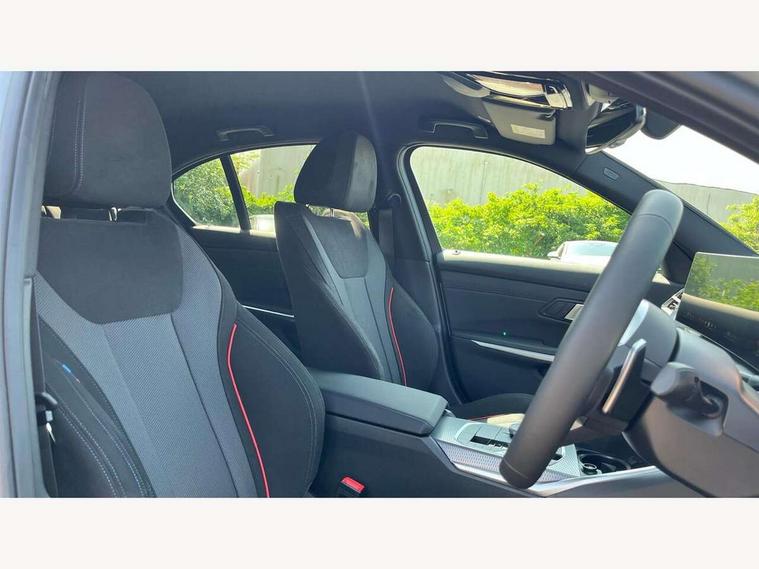 Active guard plus, Attentiveness assist, Automatic Start/stop button, Bluetooth Wi-Fi interface, BMW iDrive, BMW Teleservices, ConnectedDrive Services - last state call, Live cockpit plus with Navigation + 12.3" instrument display + 14.9" display, Intelligent voice assist, 2 USB, 4G LTE connect, Oil sensor for level and grade, Personal e-SIM, Shifting point display, Double joint spring strut front axle, Fuel tank breather system, Public mode 3 professional fast charging cable with 5m length, Steptronic Sport automatic transmission with steering wheel mounted gearshift paddles launch control and xtreme drive lever control, DAB tuner, 3rd brake light, Auto dimming rear view mirror, Automatic headlight beam throw control with load dependent regulating reaction, dynamic compensation of braking dive and acceleration squat, Bi-LED Low and high beam headlights, BMW emblem, engine compartment lid and tailgate, Body colour roof fin, Door sill strips, Electric windows - front and rear, with open/close fingertip control, anti-trap facility and comfort closing, Fading support, Follow me home headlight function, Front and rear bumper system with replaceable deformation elements, Front apron plastic in body colour, Fuel filler flap - right rear in body colour, Heat protection glazing on front windows and windscreen, Heated washer jets, High gloss chrome kidney frame with high gloss black kidney struts, LED daytime running lights, LED rear lights, LED turn indicator, Licence plate panel integrated into front bumper and tailgate, M high gloss shadow line exterior trim, Matt black B-pillar finsher, Matt black window recess cover, Model designation on right side of tailgate, One piece front bumper cover including towing eye cover in body colour, Rain sensor with automatic headlight activation, Rear boot, Rear side wing doors, Reversing lights, Side frame decorative moulding black matt, Trailer stabilisation logic, Visible exhaust tailpipe finisher, Welcome lights in interior and door handle area, 12V power socket in front storage compartment, 2 front cupholder in centre console with clamping elements and matt black inlay, 3 seat bench in 2nd row, 3 spoke M Sport multifunction flat bottom leather steering wheel, 3 zone automatic air conditioning, 40:20:40 split folding rear seat with loading system, Anthracite headlining, Armrest integrated in front and rear door trim + front centre console armrest, Battery in luggage compartment, BMW ID, Cruise control operation in steering wheel, Driving experience mode switch, Folding rear centre armrest with 2 cupholders, Front and rear headrests, Front and rear velour floor mats, Front reading light, Heated front seats, Height adjustable mechanically and infinitely variable steering column, Illuminated armrest storage compartment, Illuminated glove compartment, Illuminated luggage compartment, Lashing eyelets in luggage compartment, Single front passenger seat, Sunvisors with illuminated vanity mirrors and ticket pocket, Toolkit located in luggage compartment, Connected pack professional - 3 Series Saloon/Touring, Interior and exterior mirror pack - 3 Series Touring/Saloon, M sport exterior styling pack - 3 Series Saloon/Touring, Parking assistant pack - 3 Series, 3x3 point rear seatbelts, BMW emergency call, Child locks on rear doors, Crash sensor activating of airbags, Unlocking doors, hazard warning lights, interior light, safety battery terminal, Drive-off assistant, Driver and front passenger with seat occupancy detection for driver's and passenger side, Driver and passenger side airbags, body protection at side and airbags deploy from seat backrests, Dry braking, Dynamic brake control, Dynamic stability control + (DSC+) - Anti-lock Braking System (ABS) with brake assist and cornering brake control + Automatic Stability Control (ASC), Dynamic Traction Control - DTC, Electric parking brake including automatic hold function and automatic release of the parking brake when driving off, Electronic differential lock control (EDLC), Front airbag deactivation, Front airbags for driver and front passenger, Head airbags in 1st and 2nd row, head protection at side, curtain airbags open from headliner above 1st and 2nd row, Plastic fuel tank, Side impact protection, Tyre pressure sensors, Ventilated front and rear disc brakes, Warning triangle and first aid kit, Alarm system, Centre lock switch, Closing system with central locking, Electronic vehicle immobiliser, Locking wheel bolts,