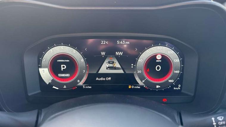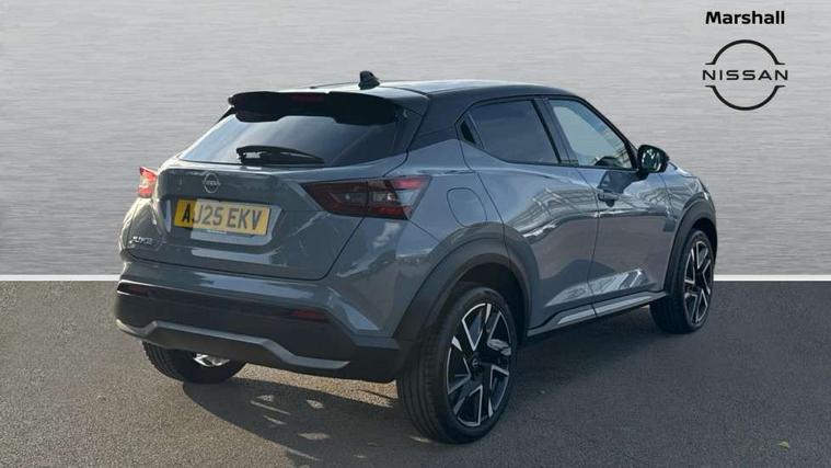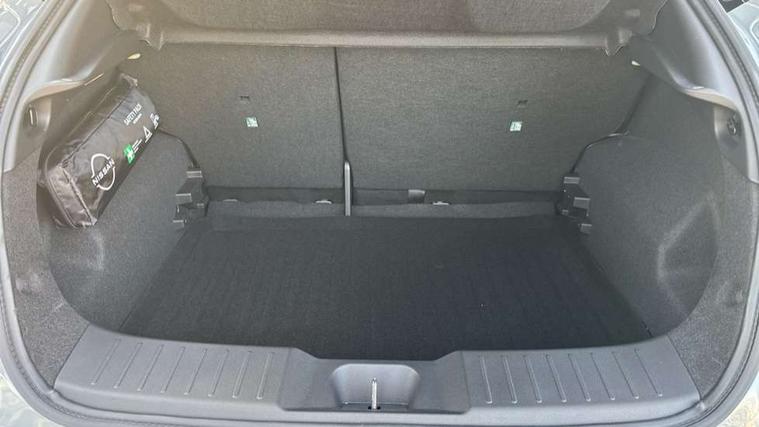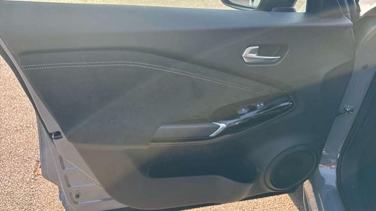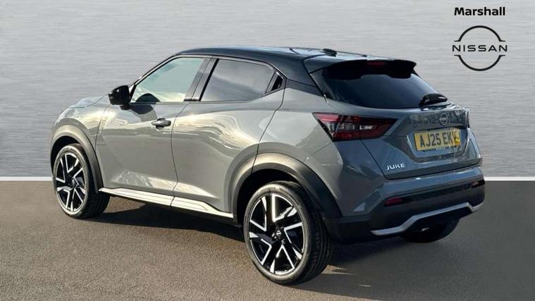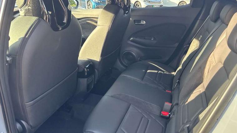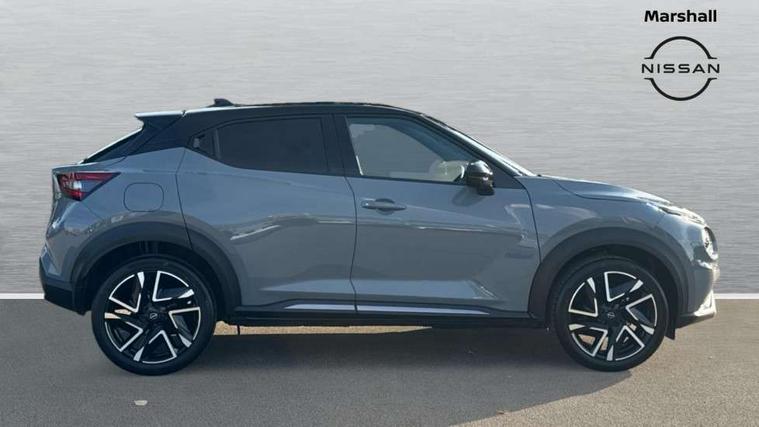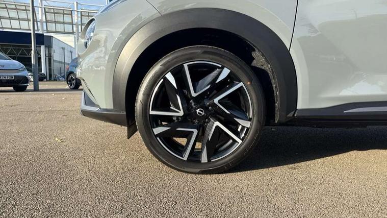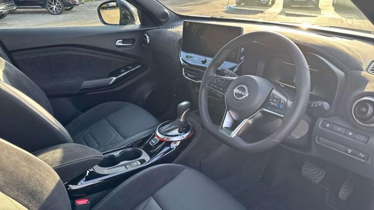 12.3" full colour TFT screen combimeter, Drive modes select (Eco, normal and sport), Emergency and breakdown call, Front parking sensor, Idle start/stop system, Intelligent driver alert system, Intelligent lane intervention, Lane departure warning system, Nissan connect 12.3" touch screen entertainment system, Nissan connect nav with TomTom traffic, Nissan connect services, Outside temperature sensor, Power Steering, Rear parking sensor, Stop/start button, Traffic sign recognition, Trip computer, Voice recognition, WiFi connectivity, Wireless Apple CarPlay and Google Android auto, Wireless Smartphone charger, 10 Bose speakers 8 speakers and 2 headrest speakers for driver/passenger seats, 2 X Rear console USB port, Bluetooth system, USB, Aux-in and 12V socket, Bose personal plus audio system, DAB Digital radio, Auto dimming frameless rear view mirror, Automatic hazard signal with emergency stop signal, Body colour door handles, Electrically adjustable door mirrors with integrated indicators, Follow me home headlights, Front and rear electric window with one touch driver window, High beam assist, LED 3rd brake light, LED daytime running lights, LED front fog lights, LED headlamps, LED rear fog lamp, LED rear lamps, One touch passenger window, Rear privacy glass, Rear side wing doors, Rear wiper, Roof spoiler, Shark fin roof antenna in solid Black, Solid black door mirrors, Solid black front bumper/rear bumper and side skirts inserts, Three blink turn signal, 3 height adjustable rear headrests, 3 seat bench in 2nd row, 60/40 split folding rear seat, Card holder on driver sunvisor, Door ambient lighting, Driver seat back pocket, Driver side rear coat hanger, Driver/passenger sunvisors and vanity mirrors, Front and rear cabin lights, Front armrest, Front door pockets with bottle holders, Front head restraints, Front/rear passenger grab handles, Gear console ambient circle lighting, Height adjustable driver's seat, Internal chrome door handles, Luggage board, Luggage space lighting, Monoform sporty seats, Multifunction steering wheel, Passenger seat back pocket, Rear door bottle holders, Single front passenger seat, Smooth synthetic leather steering wheel, Steering wheel mounted gearshift paddles, Synthetic leather kneepad, Synthetic leather shift knob, Telescopic steering wheel adjustment, Two cupholders in front centre console, Two rear isofix child seat anchorage points with top tether, Welcome light and console tray ambient lighting, Comfort pack - Juke, Heat pack with height adjustable passenger seats - Juke, Interior personalisation pack - Juke, ProPilot pack - Juke Auto, Satin grey exterior personalisation pack - Juke, ABS with EBD and brake assist, Active ride control, Active Trace Control, Driver and passenger airbags, Driver and passenger side airbags, Electric handbrake with auto hold function, Electronic Stability Programme (ESP), Front and rear curtain airbags, Height adjustable seatbelts, Hill start assist, Intelligent emergency braking with pedestrian and cyclist recognition, Rear door child safety locks, Seatbelt reminder for driver/front passenger and rear seats, Three 3 point rear seatbelts, Traction control, Tyre pressure monitoring system, VDC Dynamic Vehicle Control, Alarm, Immobiliser, Intelligent key and start push button with walk away lock and approach unlock functions, Remote central locking, 19" Alloy wheels with deep 3D effect, Tyre puncture repair kit,