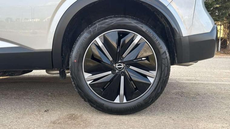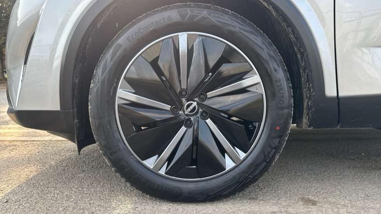 2 front USB-C ports, 2 rear USB-C ports, 360 degree Intelligent around view monitor with moving object detection, Advanced windscreen head up display, Blind spot warning, Drive assist, Drive assist custom mode, Drive modes (sport, normal, eco), Driver drowsiness and attention warning, Electric speed sensitive power steering, Emergency and breakdown call, Emergency lane keep assist, Emergency Stop Signal (ESS), Engine start/stop button, Event data recorder, Front and rear parking sensors, Full Digital 12.3" TFT Digital Combimeter, Google virtual personal assistance, Hands free power tailgate, Idle stop/start system, In-car WIFI hotspot, Intelligent Cruise control (ICC), Intelligent driver alert system, Intelligent forward collision warning, Intelligent lane intervention, Intelligent speed assist, Lane departure warning system, Nissan connect 12.3 inch touchscreen infotainment system, Nissan connect navigation with google maps, Nissan connect services 2.0 (Google Automotive System), Outside temperature sensor, Rear cross traffic alert, Remote control services - door locks, lights, horn and car locator, Reversing detection, Traffic sign recognition with legal speed adjustment, Trip computer, Wireless Apple CarPlay/Android Auto, Wireless charging pad, Limited slip differential, 6 speakers, AM/FM audio system with DAB, Bluetooth audio streaming, Auto dimming frameless rear view mirror, Auto rear wiper when reversing, Body colour mirror caps, Body coloured door handles, Bodyside mouldings, Chrome side window finisher, Electric auto folding door mirrors, Electrically adjustable and heated door mirrors with LED turn indicator, Follow me home headlights, High beam assist, Intelligent auto headlights, LED 3rd brake light, LED daytime running lights, LED headlights with adaptive driving beam, LED rear lights, LED sequential turn lights, One touch front and rear electric windows with remote opening and closing, One touch passenger window, Partially body coloured bumpers, Rain sensing wipers, Rear privacy glass, Rear roof spoiler, Rear side wing doors, Rear styling plate, Reverse tilting door mirrors, Shark fin antenna, Silver roof rails, Splash free rain sensing wipers, Super RED rear LED lights, Super UV and infrared cut glass, Thermaclear heated windscreen, 12v power socket in dashboard and luggage, 3 bench rear seats in 2nd row, 3 rear headrests, 60/40 split folding rear seat bench, Chrome interior door handles, Dark headlining, Driver and passenger sunvisors with illuminated vanity mirrors, Driver seat back pocket, Dual zone automatic climate control with pollen filter, Electrically adjustable driver seat, Electrically adjustable lumbar support for driver, Fixed Glass roof with electric sunshade, Front centre console and armrest, Front cupholders, Front door with bottle holders, Heated front seats, Heated steering wheel, Height adjustable front headrests, Height adjustable passenger seat, Leather shift knob, Luggage board system, Luggage space lighting, Manual adjustable lumbar support for passenger, Multifunction steering wheel, Passenger seat back pocket, Quilted/PVC upholstery, Rear door bottle holders, Rear seat armrest with 2 cupholders, RGB ambient light (Full area coverage), Single front passenger seat, Smooth leather steering wheel, Tilt/telescopic adjustable steering wheel, Two rear isofix child seat anchorage points with top tether, 3x3 point rear seatbelt pretensioners + load limiters, ABS with EBD and brake assist, Autonomous emergency braking, Child locks on rear doors, Curtain and front side, far side airbags, Driver and passenger airbags, Driver, passenger and 2nd row rear seat belt reminder, Electric handbrake with auto hold function, Front seatbelt pretensioners + load limiters, Height adjustable front seatbelts, Hill start assist, Intelligent blind spot intervention, intelligent front emergency braking, Intelligent rear automatic braking, Tyre pressure monitoring system, Vehicle dynamic control, Engine immobiliser, Intelligent key with walk away lock and approach unlock functions, Remote central door locking with deadlocking, Thatcham alarm, 19" Diamond cut alloy wheels, Tyre puncture repair kit,