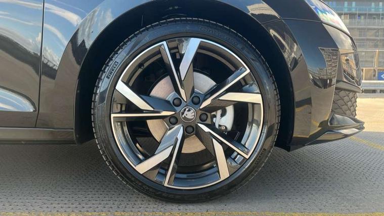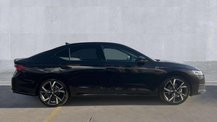 1x USB Typc C port in rear view mirror, 4x USB Type C ports - 2x in front centre console and 2x in rear (45W), Drive mode selection, Driver fatigue sensor, eCall emergency system, Front assist system, Progressive dynamic steering, Traffic sign recognition, Turn Assist, Virtual Cockpit - 10.25" digital display, Voice control system, Wireless charging (15W) with cooling function, Wireless SmartLink for Apple CarPlay and Android Auto, Sports suspension with 15mm lower, 13" touchscreen display with navigation, DAB Digital radio, Aero front windscreen wipers with intermittent function, Auto dimming rear view mirror, Body colour bumpers, Body colour door handles, Chrome strip in lower front bumper, Electric front and rear windows, Exterior gloss black sports styling including front grille, window surrounds, door mirrors and badging, Gloss black diffuser, Gloss black spoiler, Heated rear windscreen, High beam control, High level third brake light, Ice scraper in fuel cap, LED daytime running lights, Logo projection in front doors, Rain and light sensors, Rear fog light on one side and reversing lights on both sides, Rear privacy glass, Rear side wing doors, Rear wiper, 12 volt socket in boot, 3 rear headrests, 3 seat bench in 2nd row, 4 foldable roof handles, Aluminium pedals, Boot net programme, Front head restraints, Front sport seats, Heated front seats, Illuminated glovebox, Interior door handles in dark chrome, Jumbo Box storage, Luggage compartment lighting x2 lights, Mechanical rear seat release from boot, Parcel shelf - folding, Single front passenger seat, Steering wheel in black leather with black stitching, Storage compartments in left and right of boot, Sun visors with mirrors, Sunglasses storage, Three spoke leather sports multifunction steering wheel with paddles, Ticket holder, Umbrella in door panel, Unsplit rear bench seat, split folding backrest with centre armrest with cupholder, SportLine Design Selection pack - Octavia, 3x3 point rear seat belts, Alarm with interior monitoring, tilt sensor and back up horn, Curtain airbags and front side airbags, Driver and front passenger airbags, Drivers knee airbag, Electronic parking brake, ESC including ABS, EBV, MSR, ASR, EDS, HBA, DSR, Front central airbag, Hill hold assist, ISOFIX on front passenger seat and outer rear seats, Passenger airbag deactivate switch, Three point seat belts in front and rear, Two tone horn, Tyre pressure monitor, Visual and acoustic seat belt reminder, Warning reflectors in front door, Anti-theft wheel bolts, Keyless entry and start/stop, Remote central locking, Gloss black air vent surrounds,