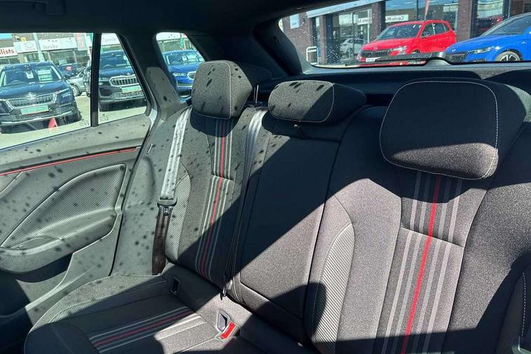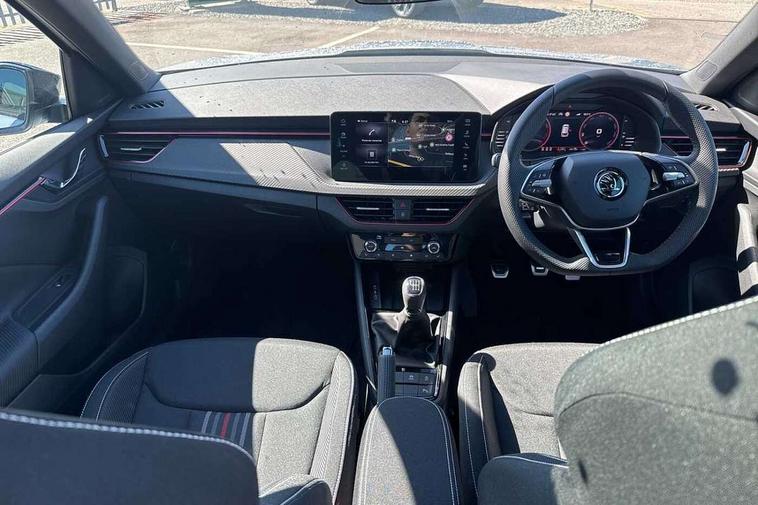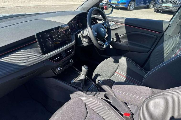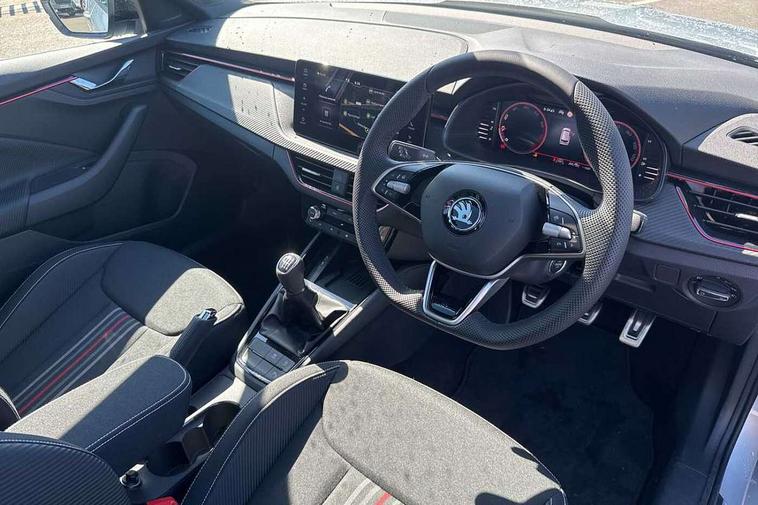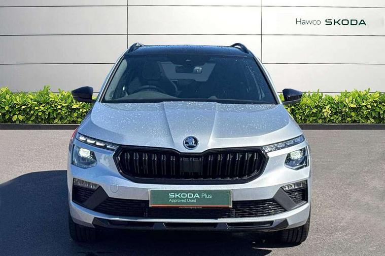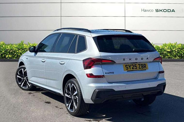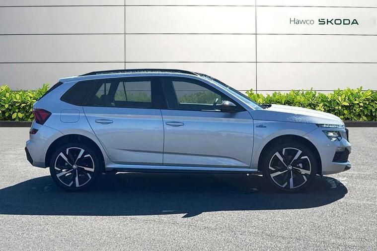 Advanced driver attention and drowsiness monitor, Bluetooth system, E-call, Front assist system, PAS, Rear parking sensors, Rear view camera, Service indicator, Speed limiter, Traffic sign recognition, Virtual cockpit with 10.25" display, Voice control system, Wireless smartlink, 4 USB C ports, 8 Speakers, 9.2" Skoda navigation display, DAB Digital radio, Auto dimming rear view mirror, Automatic headlight control with coming home and leaving home feature, Black door mirrors, Black radiator grille, Black rear diffuser, Black roof spoiler, Body colour bumpers, Body colour door handles, Boot lettering in black, Extended tailgate glass, Front and rear electric windows, Heated rear window, LED daytime running lights, LED high beam, LED low beam, LED third brake light, Light sensors, Monte carlo plaque, Panoramic sunroof with black roof rails, Privacy glass, Rear side wing doors, Rear wiper, Ticket holder inside windscreen, 12V socket in luggage compartment, 3 seat bench in 2nd row, Aluminium pedals, Ambient lighting in white/red, Art leather carbon decor inserts, Art leather carbon door inserts, Black roof lining, Cargo elements, Chrome inner door handles, Driver and passenger sun visors with vanity mirror, Dual zone climate control, Front and rear roof lights, Front centre armrest, Front head restraints, Glove compartment with illumination, Height adjustable driver seat, Height adjustable front passenger seat, Ice scraper, Inner circulation control with pollen filter, ISOFIX on front passenger seat, Isofix preparation for back seats, Leather gearknob and handbrake lever, Manual lumbar support for front seats, Monte Carlo cloth upholstery, Net package and top tether hooks in boot space, Net under rear shelf, Pocket on the back of both front seats include mobile phone pockets, Rake/reach adjustable steering wheel, Reading lights, Rear centre armrests, Red hotstamping, Single front passenger seat, Sports seats, Textile floor mats, Third rear headrest, Top tether for front passenger seat, Umbrella in driver's door, Light and view plus package - Kamiq, 3x3 point rear seatbelts, Airbags - driver and front passenger, Disc brakes, ESP, Extended and predictive pedestrian/cyclist protection, Front passenger airbag deactivation switch, Front side airbags with curtain airbags, Hill hold control, Manual leather parking brake, Manual rear child locks, One tone horn, Seatbelt reminder for driver an co-driver, Traction control, Tyre pressure monitor, Anti-theft alarm system with interior monitoring, backup horn, towing protection and remote central locking with SAFE system, Anti-theft wheel bolts, Electronic engine immobilizer, 18" Ursa black diamond cut alloy wheels,