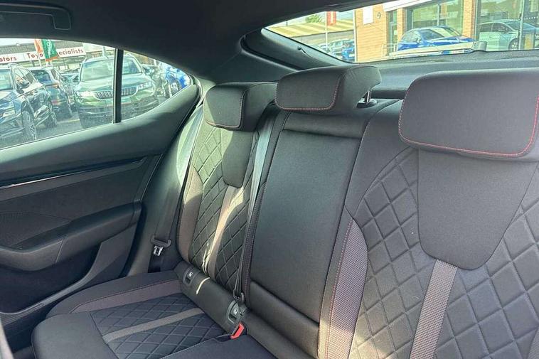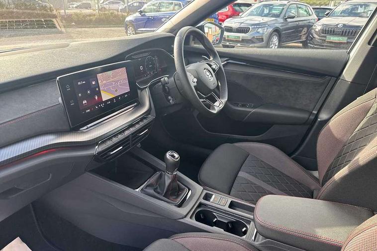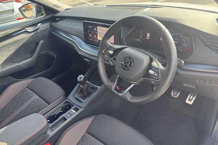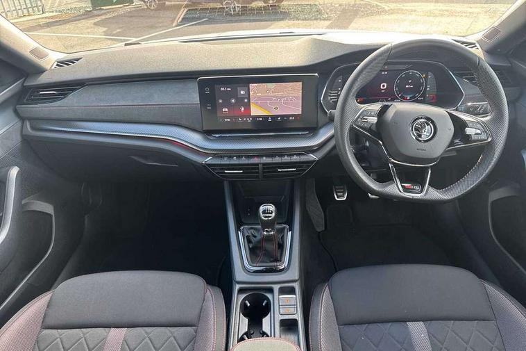 1x USB Type C port in rear view mirror (charging only), 2x USB Type C ports in rear of front centre armrest (charging only), Bluetooth system, Columbus satellite navigation with 10" touchscreen display, Driver fatigue sensor, eCall emergency system, Front and rear parking sensors with manoeuvre assist, Front assist system, Progressive dynamic steering, Smartlink (includes android auto and mirrorlink), Speed limiter, Turn Assist, Virtual Cockpit - 10.25" digital display, Voice control system, Wireless SmartLink for Apple Car Play, Electronically controlled limited slip differential, Front and rear stabilizers, 2x USB Type C ports (for charging and data transfer), 8 Speakers, DAB Digital radio, Aero front windscreen wipers with intermittent function, Auto dimming rear view mirror, Body colour door handles, Chrome exhaust tailpipes, Door sills with vRS logo, Electric front and rear windows, Exterior gloss black sports styling including front grille, side strip, window surrounds, door mirror and badging, Full LED Matrix headlights with AFS and cornering front fog lights, Headlight washers, Heated rear windscreen, High level third brake light, Ice scraper in fuel cap, LED daytime running lights, Rain and light sensors, Rear fog light on one side, Rear privacy glass, Rear side wing doors, vRS bumpers and lip spoiler, 3 rear headrests, 3 seat bench in 2nd row, 4 foldable roof handles, Aluminium pedals, Black headlining, Black microsuede padded dash panel with red contrast stitching, Chrome inner door handles, Front centre armrest, Front head restraints, Heated front seats, Illuminated glovebox, Leather trimmed gearshift lever, Luggage compartment lighting x1 light, Mechanical rear seat release, Parcel shelf - folding, Single front passenger seat, Sunglasses storage, Textile floor mat set, Three spoke leather sports multifunction steering wheel, Ticket holder, Umbrella in door panel, Unsplit rear bench seat and split folding backrest, LED interior light pack - Octavia, 3 point front/outer rear seatbelts+pre-tensioners, Alarm with interior monitoring, tilt sensor and back up horn, Automatic door unlocking in case of crash, Automatic fuel cut off in case of crash, Automatic warning lights in case of emergency braking, Curtain airbags and front side airbags, Driver and front passenger airbags, Drivers knee airbag, Electronic parking brake, Emergency call and proactive services, ESC including ABS, EBV, MSR, ASR, EDS, HBA, DSR, Front and rear disc brakes, Front central airbag, Hill hold control, Hill start assist, ISOFIX on front passenger seat and outer rear seats, Manual rear child locks, Passenger airbag deactivate switch, Red brake calipers, Two tone horn, Tyre pressure monitor, Visual and acoustic seat belt reminder, Warning reflectors in front door, Door locks with immobiliser, Keyless entry and start/stop including rear doors, Remote central locking, Carbon optic decorative inserts, Gloss black air vent surrounds, 19" Altair anthracite alloy wheels,