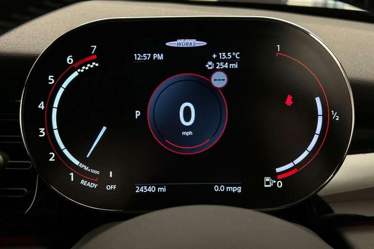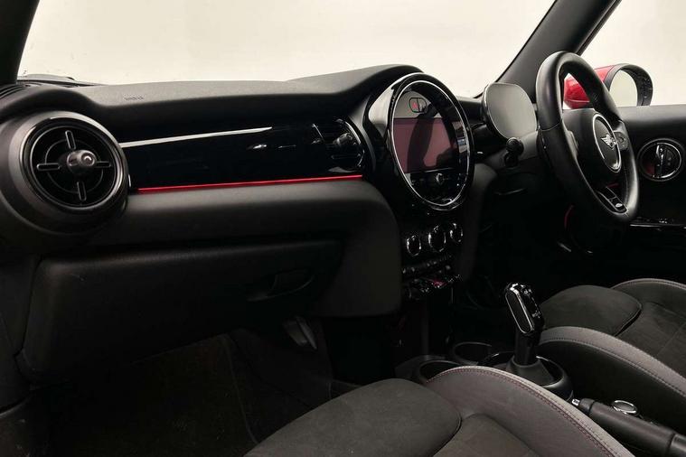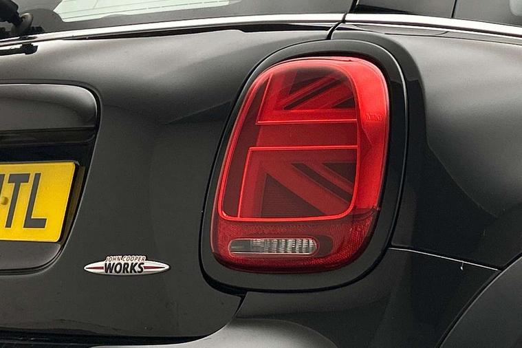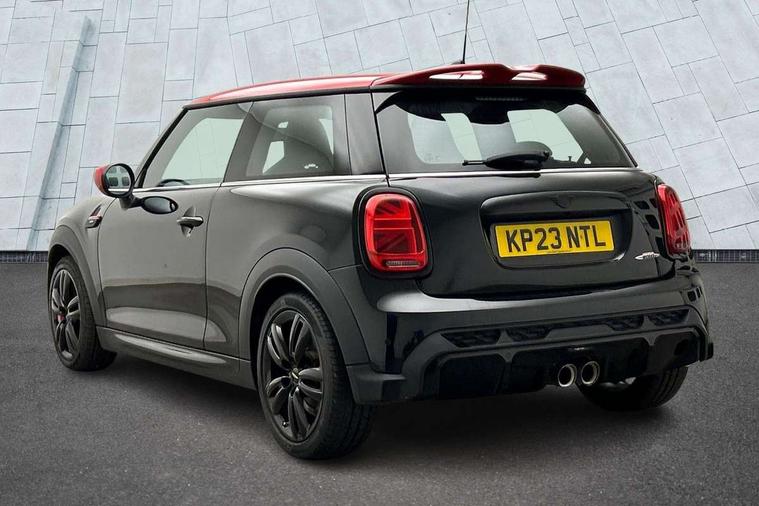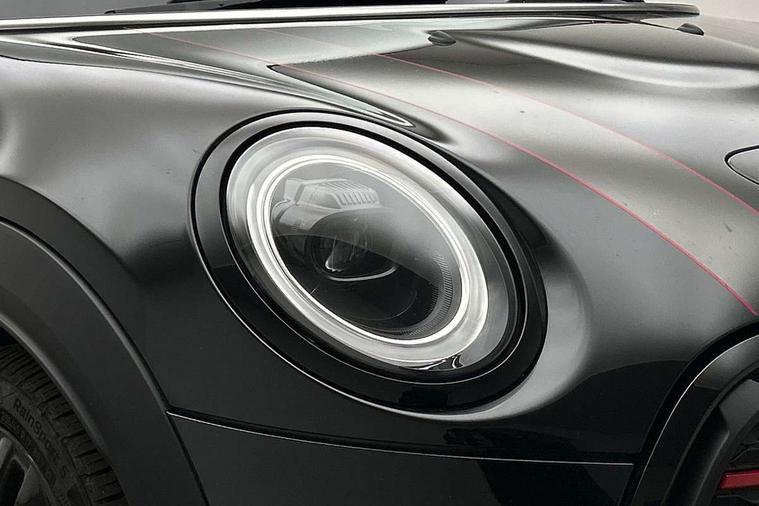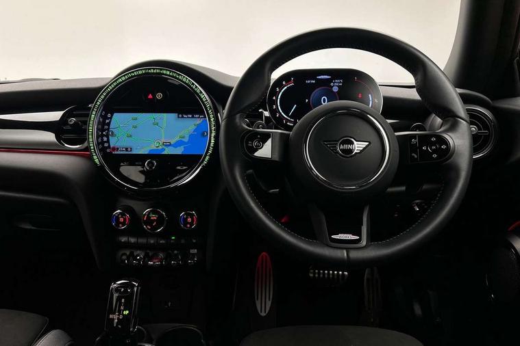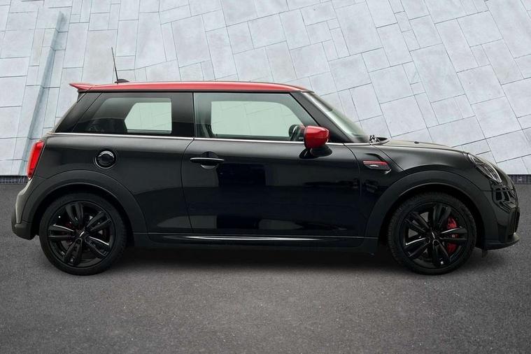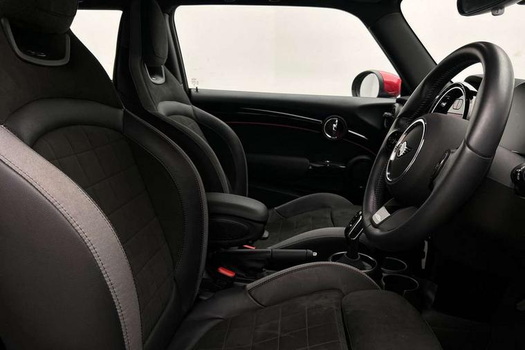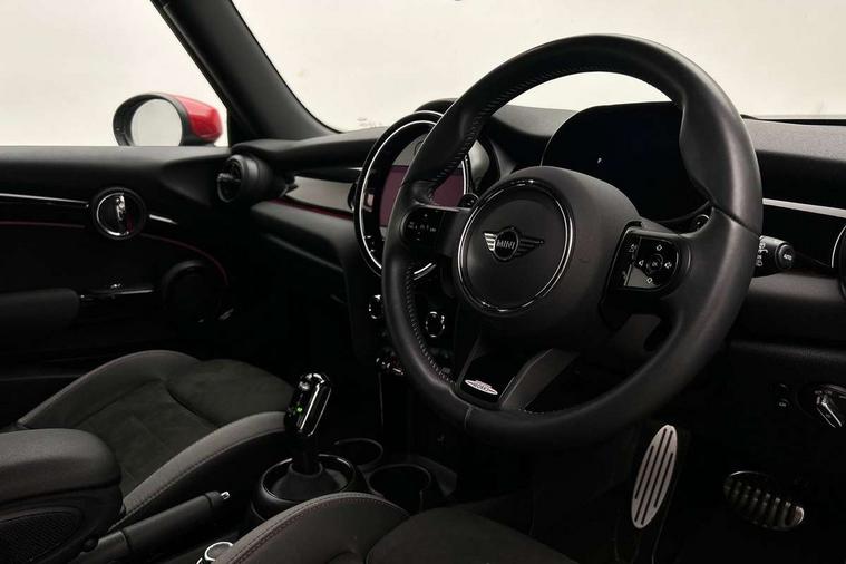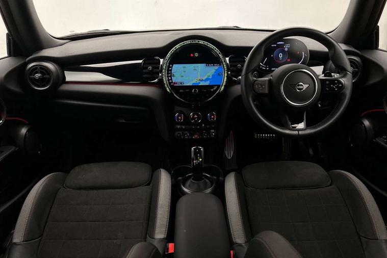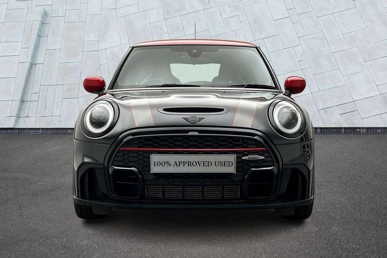 Apple CarPlay, Automatic start/stop function with brake energy recuperation, Compatible mobile phone bluetooth with audio streaming, Cruise control with brake assist, Electro-mechanical speed dependant steering assistance, Flexible car sharing preparation, Instrument cluster, MINI Driving Modes - centre toggle switch to control driving setting (sport, mid and green), Mini E-call, MINI TeleServices, On board computer, Rear park distance control, Service interval indicator, Double Vanos system, Eight speed steptronic sport transmission, with gearshift paddles, Fully variable valve control, High precision injection, Performance Control, 8.8" touchscreen with LED ring, FM tuner and DAB digital radio, 3rd brake light, Automatic headlight activation switch, Bonnet scoop, Dynamic brake lights, Electric front windows, Heated rear window, Heated windscreen washer jets, JCW Aerodynamic kit - Front and rear bumpers with sporty JCW styling and part-painted side sills with MINI John Cooper Works door sill finishers, John Cooper Works logo above an individual grille strut in Chilli Red, John Cooper Works rear spoiler, LED headlight with closed ring and daytime driving lights, Radiator grille piano black border with honeycomb structure in black matt, Rain sensor window wipers, Rear fog lights, Rear LED lights with union jack design, Rear window wiper, Side scuttle panel with integrated indicator, Side scuttle with MINI John Cooper Works logo in black high-gloss with red border, Sun/heat protection glass, Two central exhaust tailpipes with chrome finisher, White indicator lenses, 12V Accessory socket in centre console, 2 seat bench in 2nd row, 4 lashing eyes in luggage compartment, 60/40 split folding rear seat, Anthracite headliner including grab handles and clothes hooks, Carbon black colour line - Knee roll and door armrest, Chrome interior highlights, Cupholders, Front and rear isofix with front passenger airbag deactivation, Front floor mats in velour, Glove compartment, Height and length steering column adjustment, Interior lighting with 12 different colours across the dashboard, underneath door bezel with illuminated laser-engraved design on central display, JCW Sport seats with integrated headrests, adjustable thigh support and John Cooper Works logo, Leatherette gearshift lever and handbrake gaiters, LED reading lights, vanity mirror lights, front foot well light and spotlight on front seats, Manual air conditioning, Mechanical seat adjustment - forward/back & backrest for front seats and driver seat height adjust, Multifunction steering wheel, Passenger seat height adjuster, Rubberised stainless steel pedals, Single front passenger seat, Storage compartments in doors, Storage pocket on back of front seats, Sunvisors with vanity mirrors, Walknappa leather steering wheel with grey seam and John Cooper Works badge on Piano Black lower steering wheel spoke, Navigation pack without Apple Carplay - Mini Hatchback, Piano black exterior pack - JCW, 3 point seatbelts on all four seats, 4-piston fixed-calliper brakes front, 6 Airbags - front, side, head and seat belt tensioners, Anti-lock braking system (ABS), DSC - Dynamic Stability Control, Front and rear disc brakes, Red brake callipers with John Cooper Works logo, Single tone fanfare horn, Tyre pressure monitoring system, Alarm system with tilt sensor, monitoring doors, bonnet interior and tailgate, Electronic vehicle immobiliser, Start/stop toggle with keyless go, Tool kit,