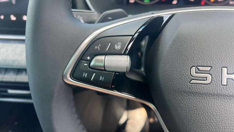 1x USB Typc C port in rear view mirror, 4x USB Type C ports - 2x in front centre console and 2x in rear (45W), Drive mode selection, Driver fatigue sensor, eCall emergency system, Electro-mechanical power steering, Front assist system, Traffic jam assist, Traffic sign recognition, Turn Assist, Virtual Cockpit - 10.25" digital display, Voice control system, Wireless charging (15W) with cooling function, Wireless SmartLink for Apple CarPlay and Android Auto, 13" touchscreen display with navigation, DAB Digital radio, Aero front windscreen wipers with intermittent function, Auto dimming rear view mirror, Body colour bumpers, Body colour door mirrors and handles, Chrome grille surround, Chrome strip in lower front bumper, Chrome window surrounds, Electric front and rear windows, Heated rear windscreen, High level third brake light, Ice scraper in fuel cap, LED daytime running lights, LED Headlights, Logo projection in front doors, Rain and light sensors, Rear fog light on one side, Rear privacy glass, Rear side wing doors, 12 volt socket in boot, 3 rear headrests, 3 seat bench in 2nd row, 4 foldable roof handles, Boot net programme, Front head restraints, Heated front seats, Illuminated glovebox, Interior door handles in dark chrome, Jumbo Box storage, Luggage compartment lighting x2 lights, Mechanical rear seat release from boot, Parcel shelf - folding, Single front passenger seat, Steering wheel in black leather with black stitching, Storage compartments in left and right of boot, Sun visors with mirrors, Sunglasses storage, Ticket holder, Umbrella in door panel, Unsplit rear bench seat, split folding backrest with centre armrest with cupholder, Comfort package - Octavia, 3x3 point rear seat belts, Alarm with interior monitoring, tilt sensor and back up horn, Curtain airbags and front side airbags, Driver and front passenger airbags, Drivers knee airbag, Electronic parking brake, ESC including ABS, EBV, MSR, ASR, EDS, HBA, DSR, Front central airbag, Hill hold assist, ISOFIX on front passenger seat and outer rear seats, Passenger airbag deactivate switch, Three point seat belts in front and rear, Two tone horn, Tyre pressure monitor, Visual and acoustic seat belt reminder, Warning reflectors in front door, Anti-theft wheel bolts, Keyless start/stop, Remote central locking, Chrome air vent surrounds,