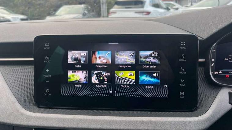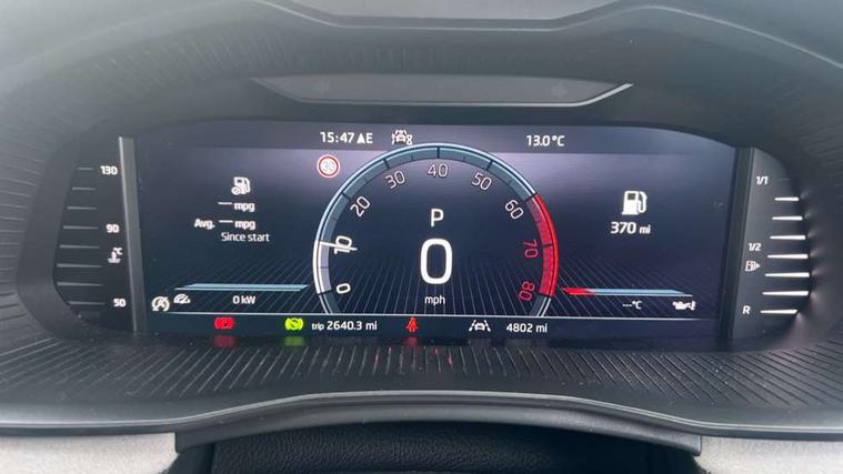 Advanced driver attention and drowsiness monitor, Bluetooth, e-Call (emergency call), Front assist system, PAS, Rear parking sensors, Speed limiter, Tailgate, Traffic sign recognition, Virtual Cockpit - 10.25" digital display, Voice control system, Wireless smartlink, 4 USB C ports, 8 speakers, 9.2" Skoda navigation display, DAB radio, Auto dimming rear view mirror, Automatic headlamp activation with Coming home and Leaving home feature, Automatic high/low beam, Automatic intermittent wipers, Body colour bumpers, Body colour door mirrors and handles, Chrome moulding around grille, Chrome window frames, Front and rear electric windows, Heated rear window, LED 3rd brake light, LED brake lights, LED daytime running lights, LED front turning lights, LED high beam, LED low beam, LED taillights, Light sensors, Privacy glass, Rear LED fog light, Rear side wing doors, Rear wiper, Tinted windows, 12V socket in luggage compartment, 3 seat bench in 2nd row, Ambient lighting in white/red, Black / Copper armrest stitching, Cargo elements, Chrome inner door handles, Copper hotstamping, Door inserts in accent black, Driver and passenger sun visors with vanity mirror, Dual zone climate control, Front and rear roof lights, Front centre armrest, Front head restraints, Glasses storage in roof liner, Height adjustable driver seat, Height adjustable passenger seat, Ice scraper, Illuminated glove compartment, Inner circulation control with pollen filter, ISOFIX for passenger seat, Isofix preparation for back seats, Leather gearknob and handbrake lever, Lodge cloth upholstery, Luggage net under rear parcel shelf, Manual lumbar support for front seats, Net package and top tether hooks in boot space, Pearl grey ceiling, Pocket on the back of both frontseats, incl. mobile phone pockets, Rear centre armrest, Single front passenger seat, Textile floor mats, Third rear headrest, Ticket holder, Top tether for front passenger seat, Umbrella in driver's door, 3x3 point rear seatbelts, ABS, Child locks, Curtain airbags and front side airbags, Disc brakes, Driver and front passenger airbags, ESP, Hill hold control, Manual leather parking brake, One tone horn, Passenger airbag switch off function, Seatbelt reminder for driver and front passenger, Tyre pressure monitoring system, Anti theft alarm system with interior monitoring, backup horn and towing protection, Anti-theft wheel bolts, Remote central locking with 2 remote folding keys, SAFE function for remote central locking, Decorative inserts,