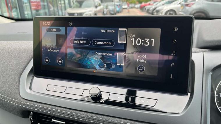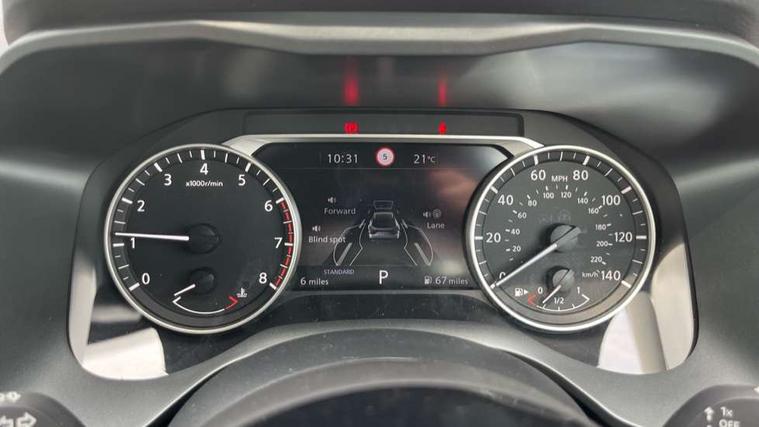 2 front USB-C ports, 7" High definition full colour TFT screen combimeter, Blind spot warning, Drive assist custom mode, Drive modes (sport, normal, eco), Driver drowsiness and attention warning, Electric speed sensitive power steering, Emergency and breakdown call, Emergency lane keep assist, Emergency Stop Signal (ESS), Engine start/stop button, Event data recorder, Idle stop/start system, Intelligent Cruise control (ICC), Intelligent driver alert system, Intelligent forward collision warning, Intelligent lane intervention, Intelligent speed assist, Lane departure warning system, Maximum speed limiter, Nissan connect 12.3 inch touchscreen infotainment system, Outside temperature sensor, Rear cross traffic alert, Rear parking sensors, Rear view camera, Reversing detection, Traffic sign recognition with legal speed adjustment, Trip computer, Wireless Apple CarPlay and wired Android Auto, Limited slip differential, 6 speakers, AM/FM audio system with DAB, Bluetooth audio streaming, Auto dimming frameless rear view mirror, Auto rear wiper when reversing, Body colour mirror caps, Body coloured door handles, Bodyside mouldings, Chrome side window finisher, Electric auto folding door mirrors, Electrically adjustable and heated door mirrors with LED turn indicator, Follow me home headlights, High beam assist, Intelligent auto headlights, LED 3rd brake light, LED daytime running lights, LED Headlights, LED rear lights, One touch front and rear electric windows with remote opening and closing, One touch passenger window, Partially body coloured bumpers, Rain sensing wipers, Rear roof spoiler, Rear side wing doors, Shark fin antenna, Splash free rain sensing wipers, Three blink turn signal, 12v power socket in dashboard and luggage, 3 bench rear seats in 2nd row, 3 rear headrests, 60/40 split folding rear seat bench, Chrome interior door handles, Cloth upholstery, Driver and passenger sunvisors with illuminated vanity mirrors, Dual zone automatic climate control with pollen filter, Electrically adjustable lumbar support for driver, Front centre console and armrest, Front cupholders, Front door with bottle holders, Height adjustable driver seat, Height adjustable front headrests, Height adjustable passenger seat, Luggage space lighting, Multifunction steering wheel, Passenger seat back pocket, Rear door bottle holders, Rear seat armrest with 2 cupholders, Single front passenger seat, Steering wheel gearshift paddles, TEP steering wheel, Tilt/telescopic adjustable steering wheel, Two rear isofix child seat anchorage points with top tether, White ambient light (Partial area coverage), 3x3 point rear seatbelt pretensioners + load limiters, ABS with EBD and brake assist, Autonomous emergency braking, Child locks on rear doors, Curtain and front side, far side airbags, Driver and passenger airbags, Driver, passenger and 2nd row rear seat belt reminder, Electric handbrake with auto hold function, Front seatbelt pretensioners + load limiters, Height adjustable front seatbelts, Hill start assist, Intelligent blind spot intervention, intelligent front emergency braking, Intelligent rear automatic braking, Tyre pressure monitoring system, Vehicle dynamic control, Engine immobiliser, Intelligent key with walk away lock and approach unlock functions, Remote central door locking with deadlocking, Thatcham alarm, 17" Alloy wheels, Tyre puncture repair kit,