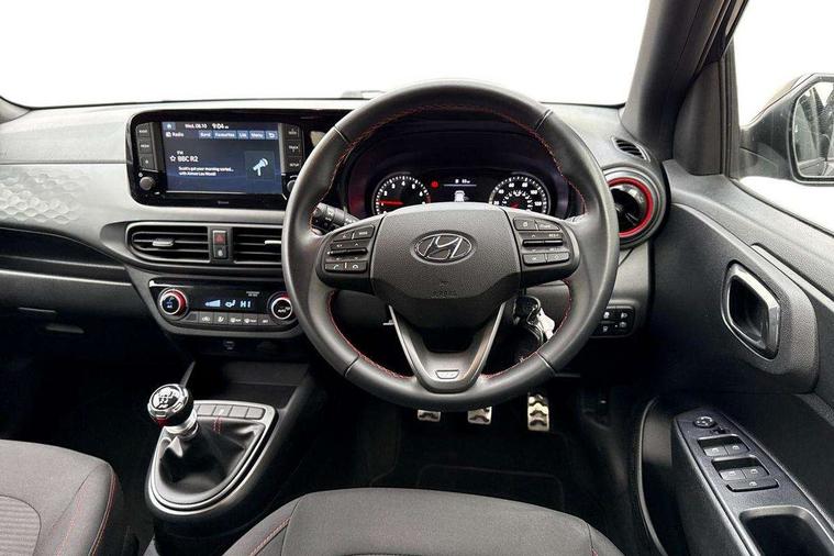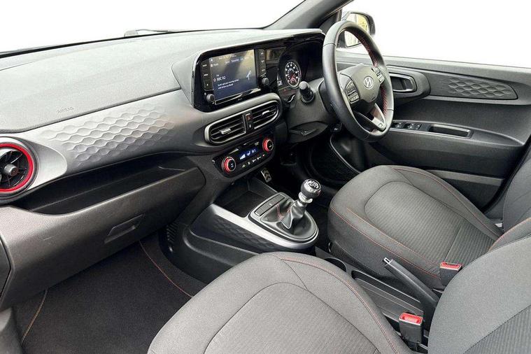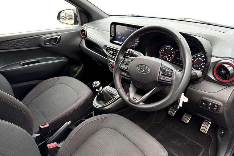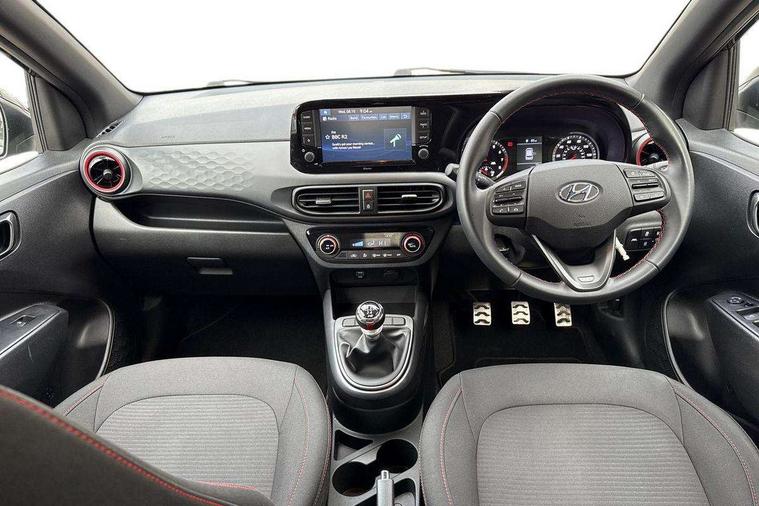 8" Touchscreen centre console display audio with smart device integration and DAB, Apple car play/Android Auto, Bluetooth connectivity with voice recognition, Cruise control + speed limiter, Driver attention alert system, eCall emergency call system, ISG - Idle stop and go, Lane departure warning system with lane keep assist - LKAS, PAS, Rear view camera, Roadside assistance, Trip computer, 2 front/2 rear speakers, Steering wheel audio, phone and cruise controls, USB socket, 1 speed non intermittent rear windscreen wiper, Bi-function projection headlights, Black finish on B pillars, Body colour door handles, Body coloured bumpers, Body coloured door mirrors, Differentiated DRL design with red stripe detail, Dual exhaust tailpipe, Electric front windows, Electric rear windows, Electrically adjustable and heated door mirrors, Front fog lights, Front intermittent wipers, Halogen headlights, Heated rear window, High beam assist, Indicator light on door mirrors, N Line Badging, N Line design front grille, Privacy glass - Rear windows and tailgate, Rear combination lights - LED, Rear roof spoiler with integrated LED brake light, Rear side wing doors, Unique LED daytime running lights, 12v power outlet - front, 3 seat bench in 2nd row, 60/40 split folding flat to floor rear seats, Auto light control, Black roof liner, Bottle holders in front/rear doors + front centre console, Cabin and luggage compartment interior lighting, Climate control, Cloth upholstery, Driver + passenger vanity mirrors, Driver's seat height adjustment, Driver/passenger sunvisors with ticket holders, Front door pockets, Front Head Restraints - Vertical and Horizontal Adjustment, Glove compartment, Height adjustable steering column, Isofix child seat preparation, Metal paint effect interior door handles, N Line branded leather gear stick, N Line branded leather steering wheel, Rear door pockets, Single front passenger seat, Vertical adjustment rear head restraints, 3x3 point rear seatbelts, Airbags - front, front side and curtain airbags, Anti-lock brake system (ABS), Autonomous emergency braking (AEB) with forward collision warning system, Brake assist function, Childproof rear door locks, Electronic stability control, Front and rear seatbelt reminder, Front seatbelt pretensioners, Hill start assist control (HAC), Passenger airbag deactivate switch, Rear disc brakes, Traction control, Tyre pressure monitoring system, Immobiliser, Perimeter alarm, Remote central locking, Second remote key, Speed sensitive auto door locking, Honeycomb design in dashboard and door, 16" N Line design alloy wheels, Tyre repair kit,