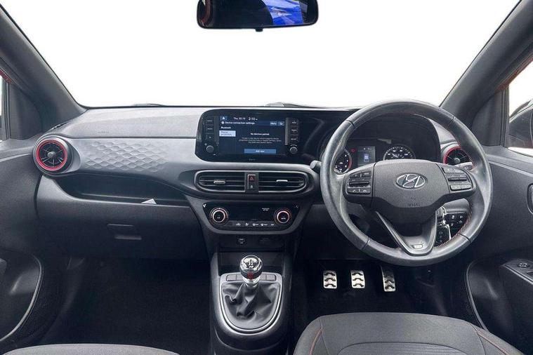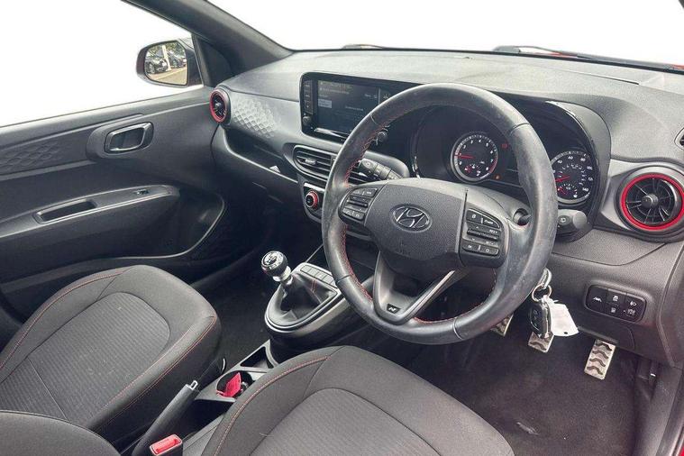 8" Touchscreen centre console display audio with smart device integration and DAB, Apple car play/Android Auto, Bluetooth connectivity with voice recognition, Cruise control + speed limiter, Driver attention alert system, eCall emergency call system, ISG - Idle stop and go, Lane departure warning system with lane keep assist - LKAS, PAS, Rear view camera, Roadside assistance, Trip computer, 2 front/2 rear speakers, Steering wheel audio, phone and cruise controls, USB socket, 1 speed non intermittent rear windscreen wiper, Bi-function projection headlights, Black finish on B pillars, Body colour door handles, Body coloured bumpers, Body coloured door mirrors, Differentiated DRL design with red stripe detail, Dual exhaust tailpipe, Electric front windows, Electric rear windows, Electrically adjustable and heated door mirrors, Front fog lights, Front intermittent wipers, Halogen headlights, Heated rear window, High beam assist, Indicator light on door mirrors, N Line Badging, N Line design front grille, Privacy glass - Rear windows and tailgate, Rear combination lights - LED, Rear roof spoiler with integrated LED brake light, Rear side wing doors, Unique LED daytime running lights, 12v power outlet - front, 3 seat bench in 2nd row, 60/40 split folding flat to floor rear seats, Auto light control, Black roof liner, Bottle holders in front/rear doors + front centre console, Cabin and luggage compartment interior lighting, Climate control, Cloth upholstery, Driver + passenger vanity mirrors, Driver's seat height adjustment, Driver/passenger sunvisors with ticket holders, Front door pockets, Front Head Restraints - Vertical and Horizontal Adjustment, Glove compartment, Height adjustable steering column, Isofix child seat preparation, Metal paint effect interior door handles, N Line branded leather gear stick, N Line branded leather steering wheel, Rear door pockets, Single front passenger seat, Vertical adjustment rear head restraints, 3x3 point rear seatbelts, Airbags - front, front side and curtain airbags, Anti-lock brake system (ABS), Autonomous emergency braking (AEB) with forward collision warning system, Brake assist function, Childproof rear door locks, Electronic stability control, Front and rear seatbelt reminder, Front seatbelt pretensioners, Hill start assist control (HAC), Passenger airbag deactivate switch, Rear disc brakes, Traction control, Tyre pressure monitoring system, Immobiliser, Perimeter alarm, Remote central locking, Second remote key, Speed sensitive auto door locking, Honeycomb design in dashboard and door, 16" N Line design alloy wheels, Tyre repair kit,