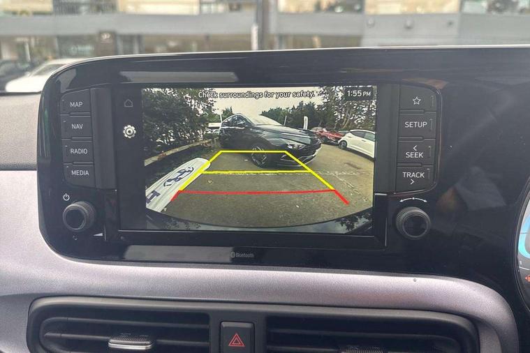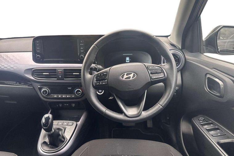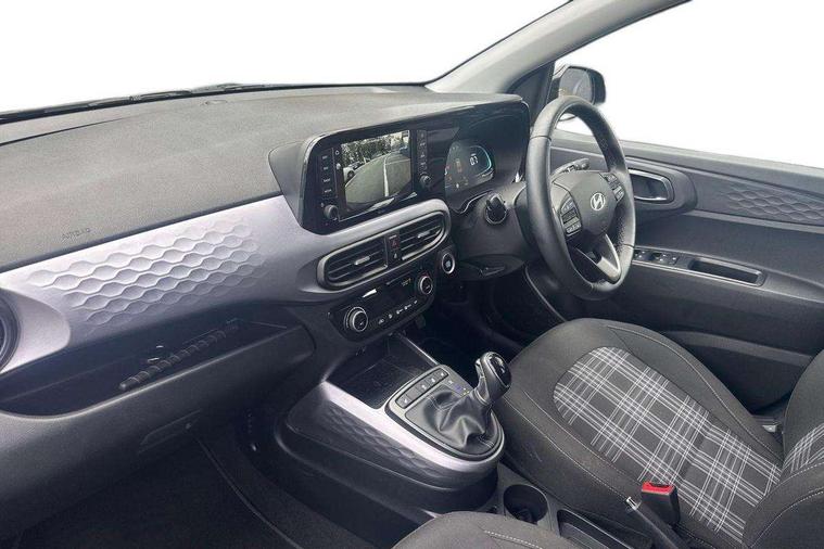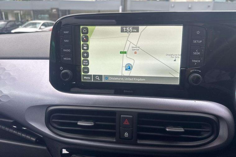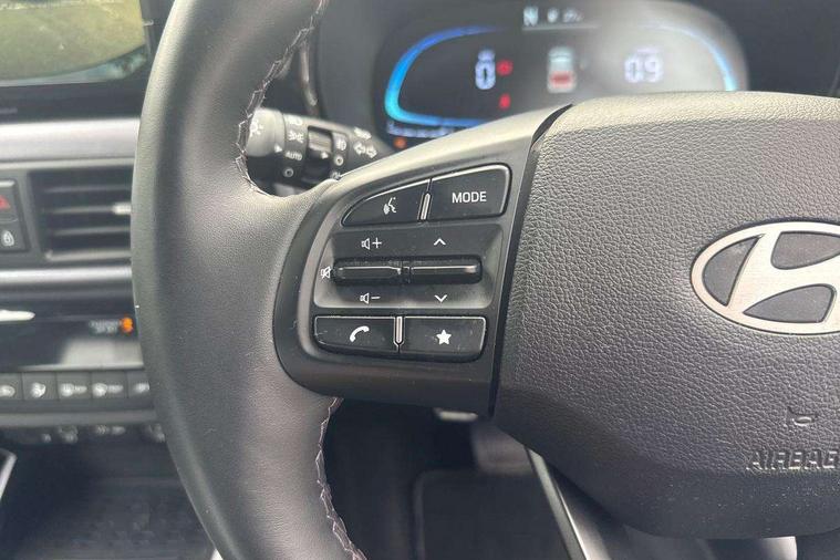 Apple car play/Android Auto, Bluelink mobile remote connectivity, Bluetooth connectivity with voice recognition, Cruise control, Driver attention alert system, eCall emergency call system, Forward Collision-Avoidance Assist (FCA) - Pedestrian/Cyclist, Front USB-C charging and USB-A data, Full-width 4.2" LCD instrument cluster, Intelligent speed limit assist, Lane departure warning system with lane keep assist - LKAS, Lane follow assist, PAS, Rear parking sensors, Rear view camera with guidelines, Roadside assistance, Start/Stop function, Tailgate, Trip computer, Wireless charging pad, 2 front/2 rear speakers, Rear USB-C device charger, Steering wheel audio, phone and cruise controls, 1 speed non intermittent rear windscreen wiper, Black finish on B pillars, Body colour door handles, Body coloured bumpers, Body coloured door mirrors, Electric folding door mirrors, Electric front windows, Electric rear windows, Electrically adjustable and heated door mirrors, Flat metal emblem, Front fog lights, Front grille in glossy black, Front intermittent wipers, Halogen bi-function headlights, Headlights inner with Black Blade design, Heated rear window, High beam assist, Indicator light on door mirrors, LED DRLs diamond mesh design, Privacy glass - Rear windows and tailgate, Rear roof spoiler with integrated LED brake light, Rear side wing doors, 12v power outlet - front, 3 seat bench in 2nd row, 60/40 split folding flat to floor rear seats, Air conditioning, Auto light control, Bottle holders in front/rear doors + front centre console, Cabin and luggage compartment interior lighting, Cloth upholstery, Driver + passenger vanity mirrors, Driver's seat height adjustment, Driver/passenger sunvisors with ticket holders, Floor mats, Front door pockets, Front Head Restraints - Vertical and Horizontal Adjustment, Front LED blue mood lighting, Glove compartment, Heated front seats, Heated steering wheel, Height adjustable steering column, Isofix child seat preparation, Leather multifunction steering wheel, Rear door pockets, Single front passenger seat, Vertical adjustment rear head restraints, 3x3 point rear seatbelts, Airbags - front, front side and curtain airbags, Anti-lock brake system (ABS), Autonomous emergency braking (AEB) with forward collision warning system, Brake assist function, Childproof rear door locks, Electronic stability control, Front and rear seatbelt reminder, Front seatbelt pretensioners, Hill start assist control (HAC), Passenger airbag deactivate switch, Traction control, Tyre pressure monitoring system, Immobiliser, Perimeter alarm, Rear occupant alert, Remote central locking, Second remote key, Smart key with motion sensor, Speed sensitive auto door locking, 16" alloy wheels, Tyre repair kit,