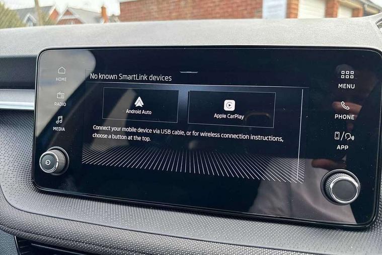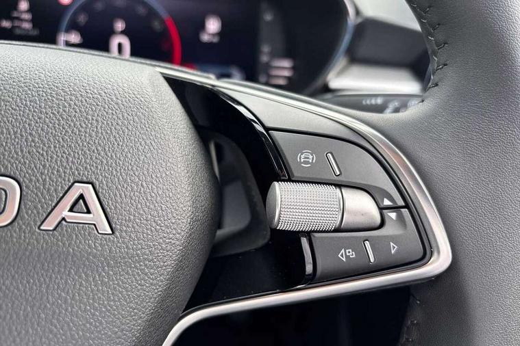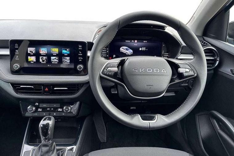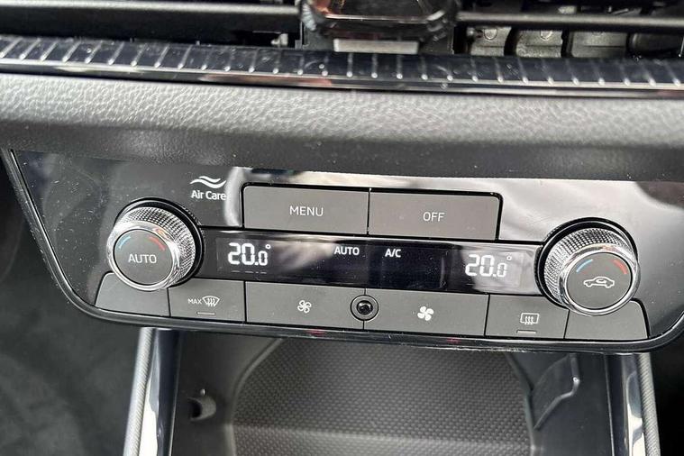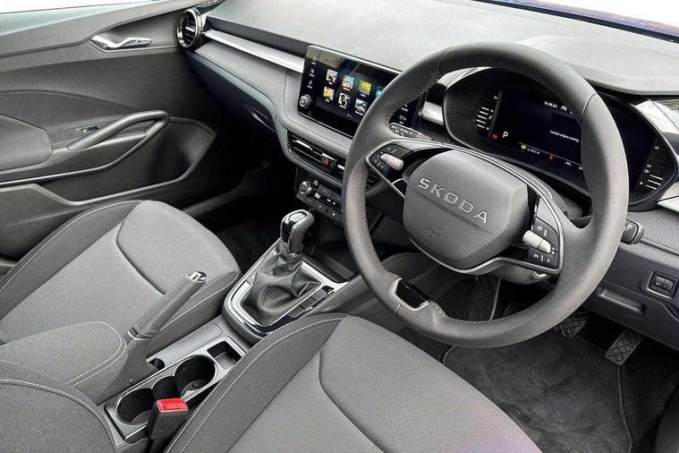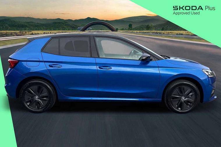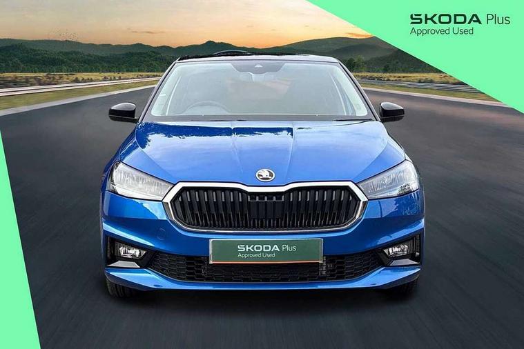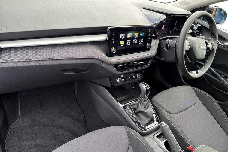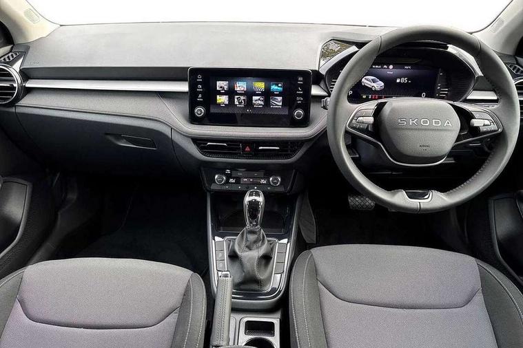Advanced driver attention and drowsiness monitor, Bluetooth connection, Driver alert system, Electromechanical power steering, Exterior temperature gauge, Service interval indicator, Traffic sign recognition, Virtual cockpit with 10.25" colour display, Wireless SmartLink for Apple CarPlay and Android Auto, 6 Speakers (4 in front and 2 in rear), Auxiliary socket for external MP3 player, DAB digital radio reception, Auto dimming rear view mirror, Body coloured bumpers, Door mirror integrated indicators, Front and rear electric windows, Front window wiper intermittent control, Headlight range control - Automatic, Ice scraper in fuel cap, LED daytime running lights with coming and leaving home feature, LED rear lights, Privacy glass, Rear LED fog light, Rear side wing doors, Rear window wiper with washing nozzles, Roof mounted spoiler, SKODA tailgate lettering in chrome, Third brake light, Unique dark chrome design logo on alloy wheels, 2 reading lights in front and 2 reading lights in rear, 3 rear headrests, Backrest split and folding, Central console with removable cup holder and storage box, Chrome handbrake release button, Dual zone air conditioning with climatronic electronic control, Fabric upholstery, Front centre armrest, Gearshift knob/handle in leather, Grain satin black interior door handles, Hand brake lever handle in leather, Height adjustable front headrests, Height adjustable front seats, Height adjustable steering wheel, ISOFIX and TopTether anchorage points to the outer rear seats, ISOFIX and TopTether on the front passenger seat, Luggage compartment lighting, Manually adjustable lumbar support in front seats, Pollen filter, Rear seat bench unsplit, Single front passenger seat, Skoda lettering on steering wheel, Storm grey headlining, Sun visors with mirror and airbag label on passenger side, Textile floor mats, Ticket holder, Umbrella in drivers door, Ambient lighting pack - Fabia Hatchback, 3-point height adjustable front seats belts with pretensioner and force limiter, Automatic warning lights in case of crash, Driver and passengers airbag with switch off function, e-Call+, ESC including ABS, MSR, ASR, EDS, HBA and XDS, Front and rear seat belt warning, FRONT ASSIST (AEB City and AEB Inter Urban), Front side airbags, Head airbags, Hill hold control, One tone horn, Pedestrian protection, Three rear 3-points safety seat belts with pretensioner and force limiter including stop function for outer rear seat belts, Tyre pressure monitoring system, Anti-theft alarm system including immobiliser, interior monitoring, backup horn, and towing protection, Central locking with radio remote control, interior controls, SAFE function and 2 foldable keys, Colour Edition air vents, Grain satin black central console cover, Metallic grey upper decorative trim, Satin black door and side trim panel in front, Textile Kota grey lower decorative inserts, Anti-theft wheel bolts protection, Super-low rolling resistance tyres,