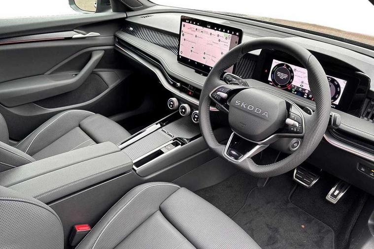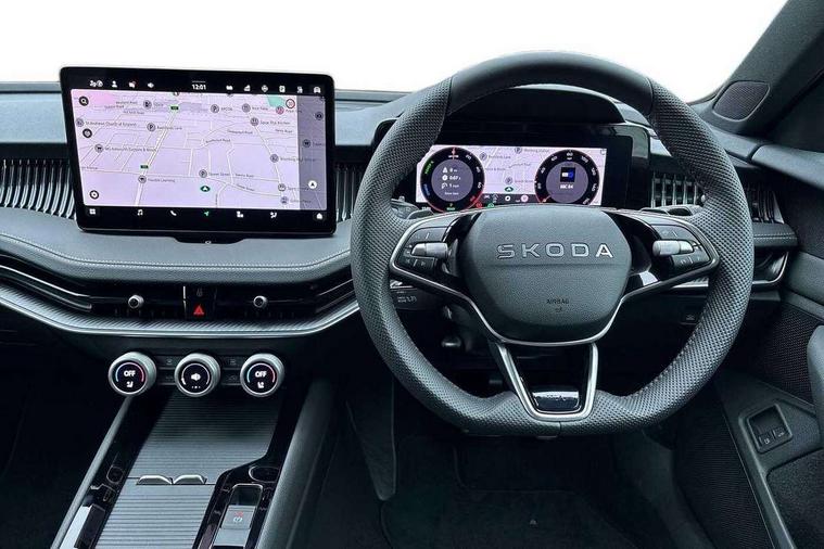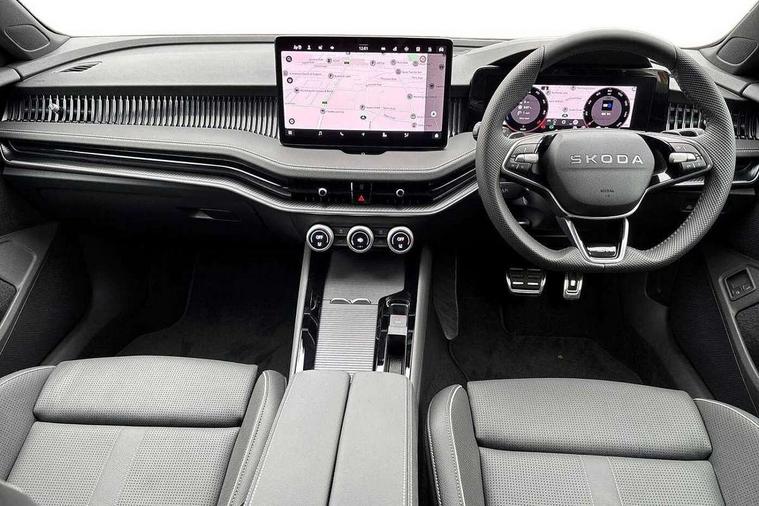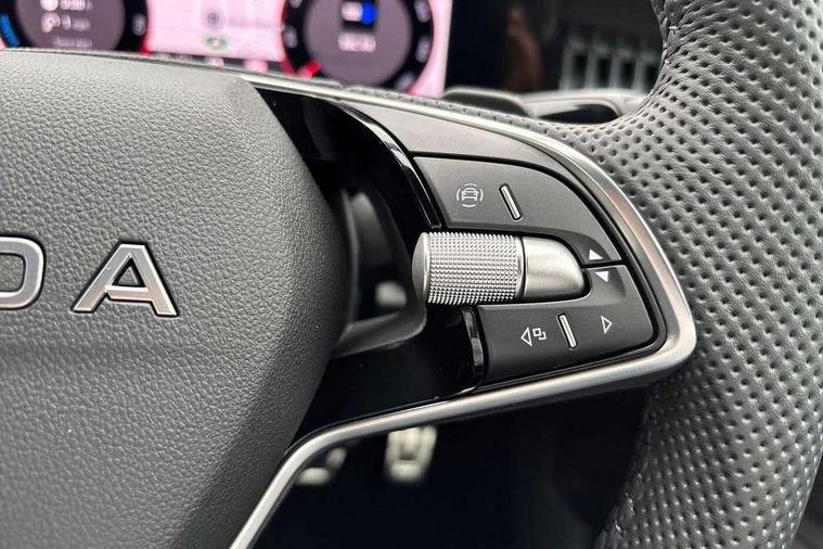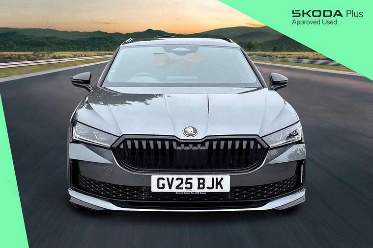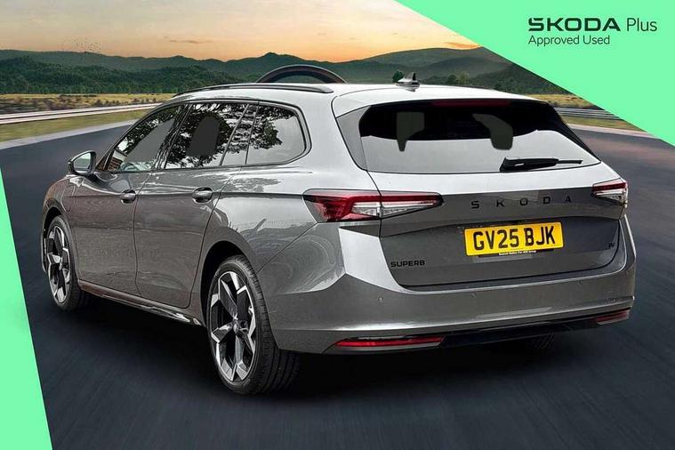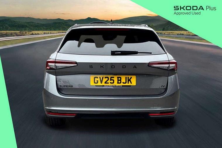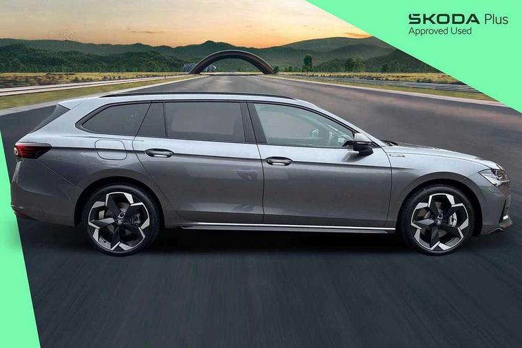 13" touchscreen display with satellite navigation, 4x USB-C ports (2x in front centre console and 2x in rear) (45W), Adaptive cruise control with speed assist, lane assist plus and traffic tram assist, Blind spot detection with door exit warning, Bluetooth system, CareConnect and Emergency Call, ChatGPT functionality, Drive mode selection, Driver fatigue sensor, Front assist with extended predictive pedestrian protection, Front cross traffic assist, PAS, Quick start all heating software functionality, Stop/start engine system, Traffic sign recognition, Turn assist with evasive assistance, Virtual Cockpit - 10.25" digital display, Voice control system, Washer for rear camera, Wireless charging for one smartphone (15W) with cooling function, Wireless smartlink apple carplay, SmartLink+ android auto, Dynamic chassis control plus with progressive dynamic steering, Mode 3 charging cable, DAB Digital radio, Display cleaner, FM radio connection, Web radio connection, Acoustic side windows and interior noise suppression, Backdrop lighting, Black exterior styling window and grille surrounds, Black roof rails, Body colour door handles, Dynamic range control with poor weather light and integrated fog light, Electrically adjustable, heated, folding and driver side auto-dimming door mirrors with memory function, integrated indicators and logo projection, Frameless auto-dimming rear view mirror with USB-C, Gloss black door mirrors, Ice scraper in fuel tank cap, LED 3rd brake light, Light assist with High beam control, Light assistant (coming/leaving home/tunnel light), Privacy glass, Rear fog lights (x2), Rear roof spoiler, Rear side wing doors, Rear windscreen wiper, Skoda lettering in black, Sportline badging, Sports bumpers, Windscreen wipers with rain sensor, 12V socket 1x centre console 1x boot, 14-way electrically adjustable, memory, front seats with 4-way pneumatic lumbar support, and extendable thigh support with smart comfort entry aid, 2x cargo elements in boot, 2x light in boot, 3 seat bench in 2nd row, 4x foldable bag hooks in boot, 60:40 Split folding rear seats, Aluminium pedals, Bottle holders in the front doors 1.5 litre bottle and rear 1.5 litre bottle, Cup holder in front with easy open mat, Front armrest with storage box, Front sports seats, Heated and ventilated front seats, Height adjustable front and rear head restraints, Illuminated glovebox, Interior lights with control switches, Isofix child seat fittings in outer rear and front passenger seats, LED front and rear reading lights, Single front passenger seat, Skoda lettering on steering wheel, Storage compartment with cover, Storage pockets on back of front seats, Sun visors with illuminated vanity mirrors, Ticket holder on A Pillar, Tri zone climate control, Umbrella in driver's door, Light and view package - Superb, Transport package - Superb Estate, 3 rear seatbelts, 8 Airbags - Front driver and passenger, front side driver and passenger, centre, curtain front and rear, drivers knee, Crew protect assist, Driver and passenger seatbelts with warning light, Electronic parking brake, ESC including ABS, EBV, MSR, ASR, EDS, HBA, DSR, RBS, CBC, multi-collision brake (MKB) and Auto hold, Hill hold assist, Power operated child lock in rear doors, Alarm with interior monitoring tilt sensor and back up horn, Backrest remote release from trunk, Electronic engine immobiliser, Keyless start/stop, Remote central locking with SAFE system, Third key, Walk away locking, Decorative front door sills, 19" Torcular polished black alloy wheels with anti theft wheel bolts, Tyre repair kit,