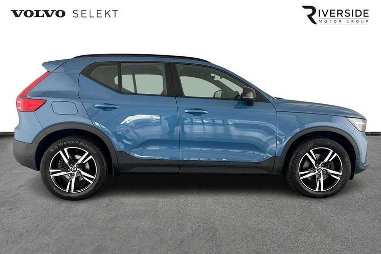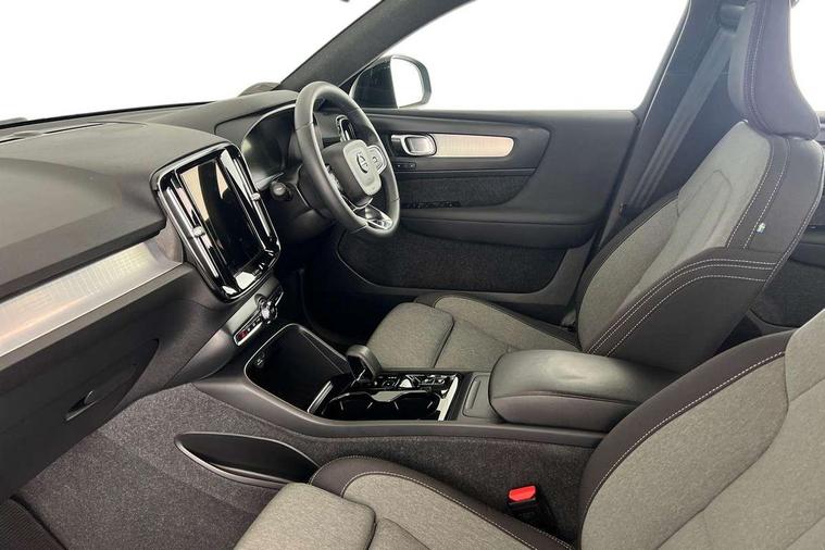 12.3" Progressive Driver Display, 360 degree surround view parking camera with side proximity sensors, 9" centre console portrait touch screen, Adjustable steering wheel force, Bluetooth hands free telephone kit, Cruise control, E-call, Front park assist, Google automatic services - Nav with google maps, apple carplay/android auto, voice recognition with google assistant, Hands free power tailgate, Lane keep assist with driver alert control, Oncoming Lane Mitigation, Rear park assist, Speed limiter, Speed sensitive steering, Wireless/Inductive Mobile Phone Charging, Dynamic chassis, DAB Digital radio, High performance sound, 8 speakers/250W, front USB and 2 rear type C USB, Steering wheel mounted remote controls, Adaptive brake lights with high level LED brake lights, Auto dimming feature for exterior door mirrors, Auto dimming interior mirror, Automatic headlamp levelling, Automatic LED Headlights + Active high beam incorporating daytime running lights, Front aluminium tread plates, Front and rear electric windows, High gloss black front and rear skid plate, High gloss black mesh front grille with high gloss black surround, High gloss black window trim, Home safe and approach lighting, Integrated roof rails in high gloss black, LED front fog lights, Puddle lights, Rain sensor with automatic windscreen wiper activation, Rear side wing doors, Rear wiper, Roof antenna, Roof spoiler, Visible VIN plate, 12V socket in front tunnel console and luggage compartment, 2-Zone electronic climate control with CleanZone air quality system and pollen filter, 3 seat bench in 2nd row, 3 Spoke tailored steering wheel with chrome trim, 60/40 versatile split folding rear seat, A-pillar parking ticket holder, Ambient front door and instrumental panel lighting, Centre console cupholders and storage, Flexible load floor and grocery bag holder, Floor mats, Front door pocket and front cupholder illumination, Front footwell illumination, Front headrests, Front reading light and theatre lighting, Front seat cushion extensions, Front tunnel pocket, Glovebox bag hook, Heated front seats, Height adjustable passenger seat, Height/reach adjustable steering column, High gloss centre tunnel deco, Illuminated glovebox, Illuminated luggage compartment, Illuminated tailgate, Illuminated vanity mirrors, Integrated waste bin, Isofix attachments on outer rear seats, Load protection net, Multi directional lumbar support, Power driver seat with memory + exterior mirrors memory, Rear armrest / integral cup holders / storage tray, Rear headrests, Rear reading and courtesy lights, Single front passenger seat, Underfloor cargo storage, Climate pack without heated front seats - XC40, 3x3 point rear seatbelts, City safety with steering support with Pedestrian + cyclist + front collision warning with full auto brake and rear auto brake, Drivers knee airbag, Dual stage driver/passenger airbags, Electronic parking brake with auto hold, First aid kit, Front and outer rear seatbelt reminder and pretensioners, Front seats SIPS airbags, Hill descent control, Hill start assist, Inflatable curtain, Passenger airbag cut-off device, Power child locks on rear doors, Road sign information display, Run off Road Mitigation, Run off Road Protection, SIPS (Side Impact Protection System), Slippery road and hazard light alert, Stability and Traction Control with Spin control, Engine Drag Control and Corner Traction Control, Tyre pressure monitoring system, Vehicle deceleration control with Anti-lock Brake System, Electronic Brake Distribution and Emergency Brake Assist, Warning triangle, WHIPS whiplash protection system - front, Anti-theft alarm including immobiliser/volume sensor + level sensor, Key integrated remote control central locking + fuel flap with deadlocking system and auto open/close power windows, Keyless drive includes keyless entry and keyless start, Locking wheel nuts,
