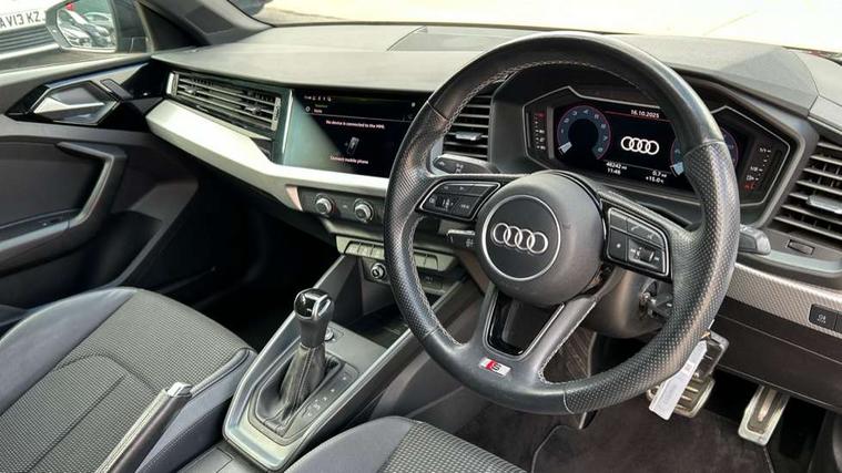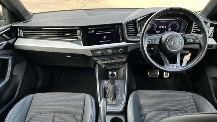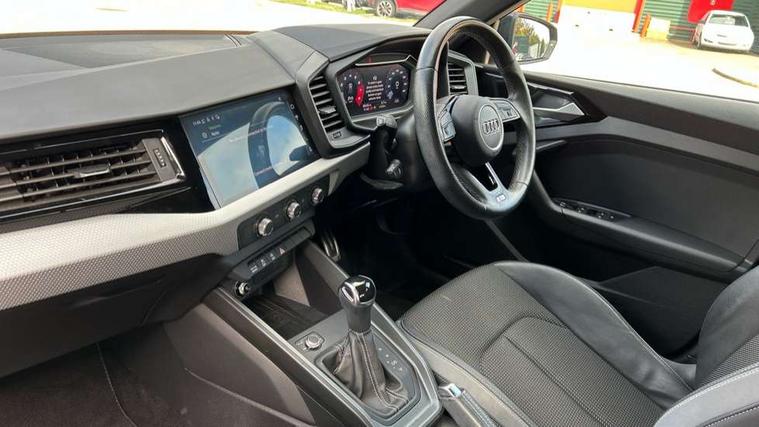 Aluminium trim for control switches, air vents and digital instrument cluster, Silver grey inlays polygon structure in diamond paint finish, Structured grey accent areas including air vents, door handle recesses and centre console in quartz paint finish, LED interior lighting pack - A1, Luggage compartment pack - A1, S line exterior styling pack - A1 Sportback, Anti theft alarm, Anti theft wheel bolts and loose wheel warning, Audi pre-sense front with pedestrain and cyclist recognition, Immobiliser, Remote central locking with 2 foldaway keys, 1 x SDXC card reader, 2 x USB type C connection points, DAB Digital radio, MMI radio plus with 8.8" colour MMI display screen and MMI touch, 3x3 point rear seatbelts, Brake assist function, Driver and front passenger airbag with front side and head airbags, Electronic Stability Control including ABS, EBD, ASR and EDL, Front passenger airbag deactivation switch, Hill hold assist, Seatbelt height adjustment for front seats, Seatbelt monitoring, Tyre pressure warning light, Warning triangle and first aid kit, Auto dimming rear view mirror, Body coloured door mirrors, Door sills with aluminium inlays and S Line logo, Electric front and rear windows, Electrically adjustable, heated, folding door mirrors with integrated LED side indicator, Front side air inlets in grained matt black and C frame in titanium black, Heat insulating glass windscreen and side windows, Heated rear windscreen, LED headlights with LED rear lights + dynamic rear indicators + headlight adjustment and high beam, turning light + LED daytime running lights, Radiator grille and rear diffuser in matt titanium black, Radiator protective grille frame in matt aluminium silver, Rain and light sensors, Rear fog lights, Rear wiper, S line badges on front wings, Side front spoiler lips in grained matt black, 12V socket in centre console with two cup holders, 3 rear seats with headrests, 40:60 Split folding rear seat or folded fully, Black cloth headlining, Driver and passenger seat with manual height adjust with forward and backwards adjustment, Front and rear black floor mats with contrast stitching in fine silver, Front head restraints, Height and reach adjustable steering wheel, ISOFIX child seat mounting for front passenger and outer rear seats including top tether attachment point of outer rear seats, Leather gear knob with aluminium trim, Luggage compartment light with front and rear reading lights, Manually adjustable lumbar support in front seats, Stainless steel pedals, 10.25" Digital instrument cluster display classis style instrument dials + speed, odometer, time, outside temperature, telephone menu + fuel level warning, Audi connect safety emergency and service including E-call, Audi drive select - power steering assistance + engine + gear shift 3 preset modes (auto, dynamic, efficiency and an Individual mode), Audi smartphone interface with connect compatible smartphone via USB directly MMI display + Nav, music, third party apps controlled via MMI controller, Automatic start/stop system, Bluetooth interface, Cruise control, Driver's information system, Electromechanical power steering, Lane departure warning system, Service interval indicator, Speed limiter, Voice control system, Washer fluid level indicator, Sports suspension,