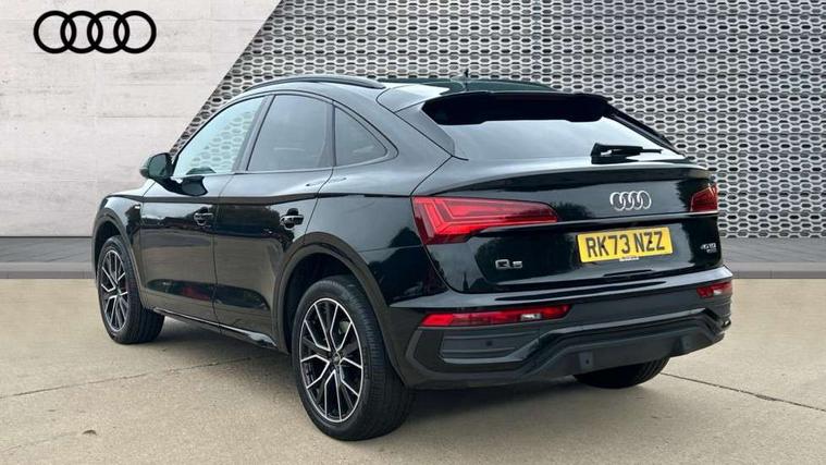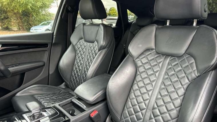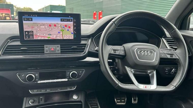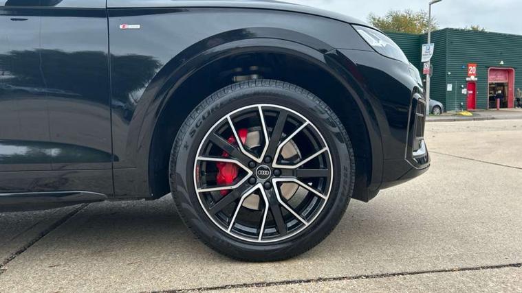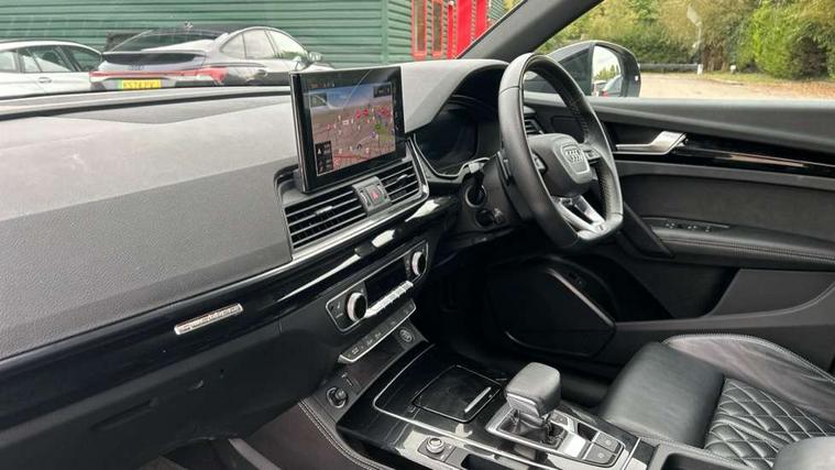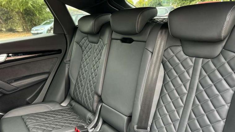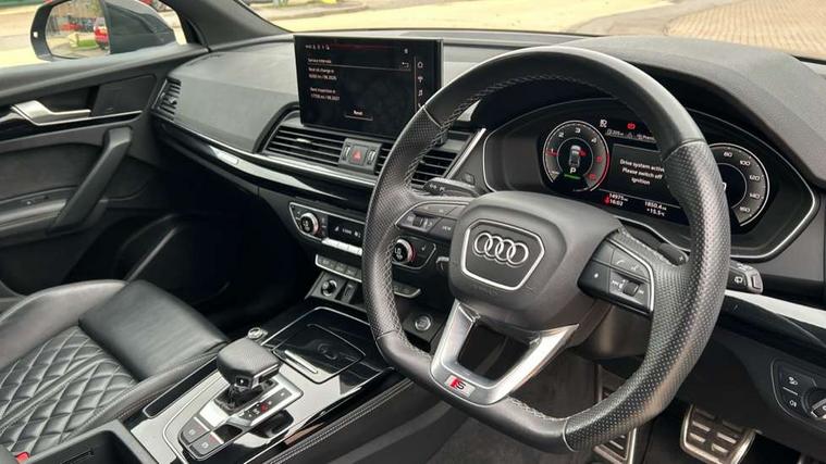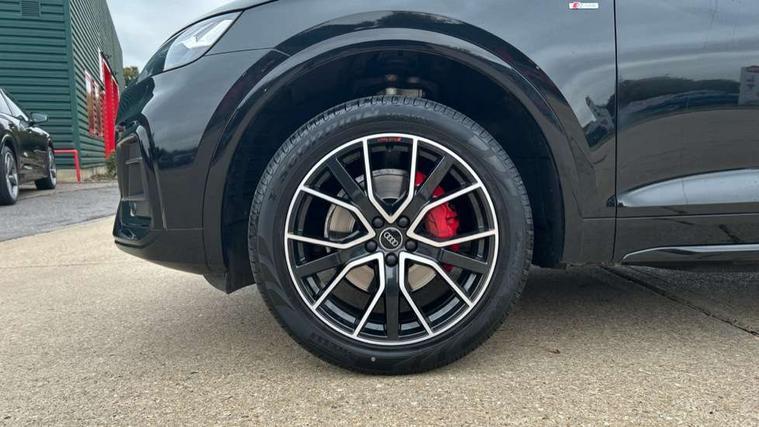 Acoustic front and rear parking sensor, Audi connect safety and service (e-call), Audi connect with Amazon Alexa Integration, Audi drive select, Audi virtual cockpit plus with 12.3" screen and three different layout designs, Audi wireless smartphone interface, Automatic start-stop system with coasting functionality and efficiency programme, Bluetooth interface, Electro - mechanical power assisted steering, MMI navigation plus with 10.1" touch screen, Power tailgate, Reversing camera, Service interval indicator, Voice control system with Audi hotword activation "Hey Audi", Diesel particulate filter, Quattro on demand, S line sports suspension, 2 x USB charging port with aux input socket, 8 loudspeakers, DAB Digital radio, Acoustic windscreen, Audi beam with Audi rings logo, Audi matrix LED headlights with dynamic front and rear indicators, Audi rings at front and rear in black, Audi rings decal on rear doors, Auto dimming door mirrors, Auto dimming frameless rear view mirror, Automatic headlight adjustment, Automatic headlights and windscreen wipers, Black roof rails, Body colour underbody protection, Chrome plated exhaust trims, Daytime running lights, Door sills in Selenite silver, Electric adjustable/heated/folding door mirrors, Front air inlet surrounds in anthracite black, Front and rear electric windows, Headlight washers, High gloss black B pillar trims and triangular rear door trim, High level LED brake light, Rear chrome trim strip below lights, Rear privacy glass and rear side windows, Rear side wing doors, Rear spoiler, Rear wiper, Roof bars, Without model and engine badging at rear, 3 rear headrests, 4 way electric lumbar support for driver and front passenger, 40:20:40 split folding 3 rear bench seat in 2nd row with rear centre armrest, Black cloth headlining, Comfort front centre armrest, Contrast stitching on seats, steering wheel and gear lever gaiter, Deluxe 3 zone electronic climate control, Electrically adjustable front seats, Fine Nappa leather upholstery with diamond pattern contrast stitching + front sport seats with S embossed logo, Front head restraints, Front/rear floor mats, Gear lever in black leather, Heated front seats, Height/reach adjustable steering column, Illuminated door sill trims with S logo, Rear seat bench plus-adjust for forwards/backwards position/backrest angle, cupholders in the armrest, load through hatch and remote backrest release, Removable luggage compartment floor, Single front passenger seat, Stainless steel pedals, Sunvisors with vanity mirrors, Trunk roller cover, Black styling package - Q5 Edition 1, Extended LED Interior multi coloured Lighting Pack - Q5, 3 point seatbelts on all seats, 6 airbags - Driver, front passenger, curtain and side airbags, Electrically operated child locks on rear doors, Electromechanical parking brake, Electronic stabilisation control including ABS, ASR and EDL, First aid kit with warning triangle and vests, Front and rear brake calipers painted in red, Front passenger airbag deactivation, Hill descent control, Hill hold assist, ISOFIX child seat mounting for front passenger seat and ISOFIX child seat mounting with Top Tether for outer rear seats, Multi collision brake assist, Pop-up bonnet for pedestrian protection, Pre sense city, Seat belt force limiter, Seatbelt monitoring, Tyre pressure warning, Anti theft alarm, Anti-theft wheel bolts, Keyless Go access/ignition system, Remote central locking, Air vents inserts and centre console in gloss black, Piano black finish inlay,