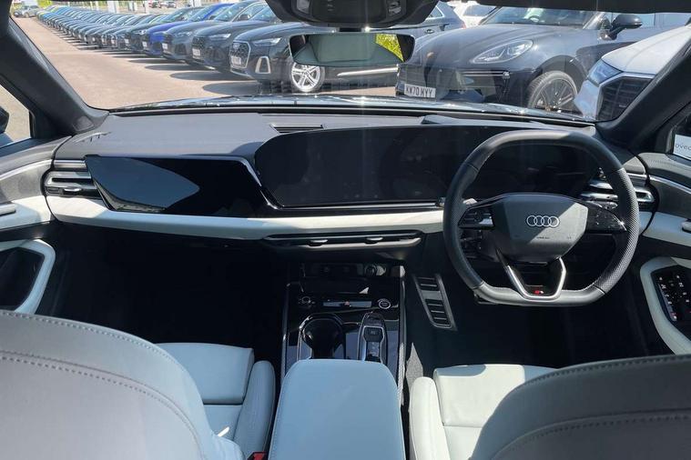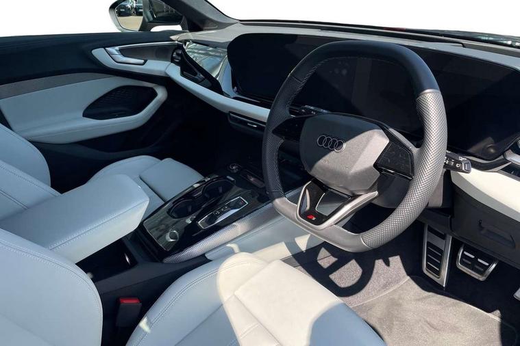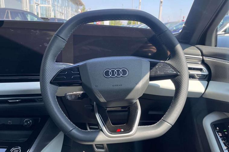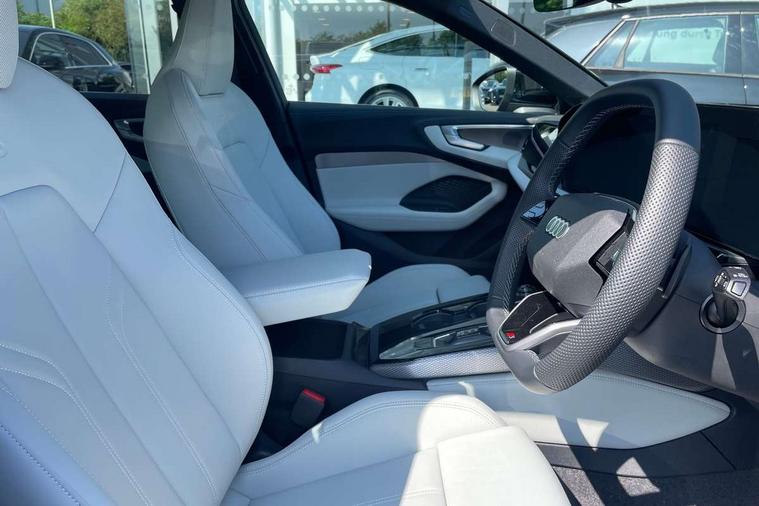 Adaptive cruise control, Advanced driver attention and fatigue montior, Audi application store, Audi assistant, Audi connect emergency call and service, Audi drive select, Audi smartphone interface, Audi virtual cockpit plus with 11.9" OLED colour display, Automatic start/stop system with coasting functionality, Camera based traffic sign recognition, Intersection assist, Lane departure warning, MMI navigation plus with high resolution 14.5" OLED touchscreen colour display, Park assist plus, Parking system plus with 360 display, Progressive steering with servotronic, Rear view camera, Swerve assist and turn assist, Traffic sign based speed limiter, Sports suspension lowered by 20mm, 2 USB-C ports in both the front and rear, Audi sound system impressive sound with 10 loudspeakers including centre speaker and subwoofer, 6-channel amplifier with a total output of 180 watts, DAB digital radio reception, Smartphone compartment with wireless charging, Aluminium roof rails, Aluminium window trims, Auto dimming rear view mirror, Body colour door mirrors, Door mirrors - electrically adjustable, heated, folding and auto dimming on both sides, Front and rear electric windows, Front door sill trims with aluminium inlays, illuminated with 'S' logo, High beam assist, LED headlights Plus incl. digital daytime running lights, turning light, all-weather light, motorway light, manouevring light and intersection light, LED rear lights pro incl. dynamic rear indicators and illuminated light strip with animated coming and leaving home function, LED third brake light, Privacy glass, Rear and side windows with heat insulating glass, Rear side wing doors, Rear wash/wipe, S Line badges on the front wings, S line bumpers, radiator grille and diffuser in phantom black and diffuser insert in matt anthracite, White rhombus logo projection light in exterior mirrors, Windscreen with acoustic glazing, 3 rear headrests, 3 seat rear bench, 3 spoke leather steering wheel with multi-function buttons with touch control, flattened on top and bottom, with S badging and contrast stitching, 3-zone automatic climate control, 40:20:40 split folding rear seat bench with centre armrest and cup holders, Comfort front centre armrest, Front and rear floor mats, Front seats with manual adjustment for position and 4-way electric lumbar support, Front sport seats with integrated headrest and S embossed logo, Headlining in black cloth, Heated front seats, i-Size child seat mounting on the front passenger side and i-Size and top tether on the outer rear seats, Luggage compartment lid, electrically opening and closing, Manual steering column height and depth adjustment, Single front passenger seat, Stainless steel pedals and footrest, Steering wheel grips in perforated leather and shift paddles, Ambient lighting package plus - A5, 3x3 point rear seat belts, Driver airbag, Electric child safety locks, First aid kit with warning triangle and vests, Front emergency brake assist, Front passenger airbag, Front passenger airbag deactivation, Front side airbags with head airbag system and front interaction airbag, Hill hold assist, Seat belt monitoring with rear seat occupant reminder, Tyre pressure loss indicator, Anti theft alarm, Anti-theft wheel bolts, Keyless Go, Accent surfaces and control buttons in gloss black, Black dashboard with contrast stitching, Inlays in matt brushed aluminium with linear embossing, anthracite, Softwrap in leatherette with contrast stitching, Upper and lower interior elements in leatherette, Tyre repair kit,