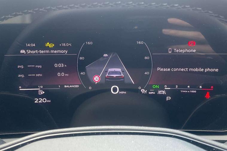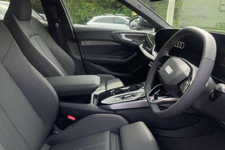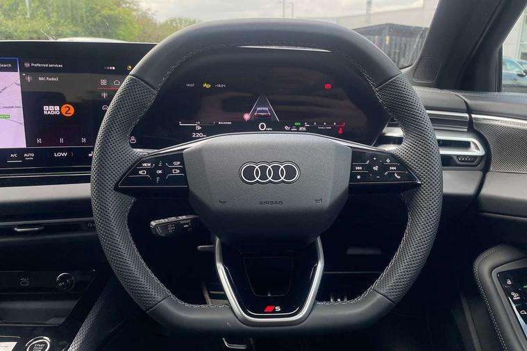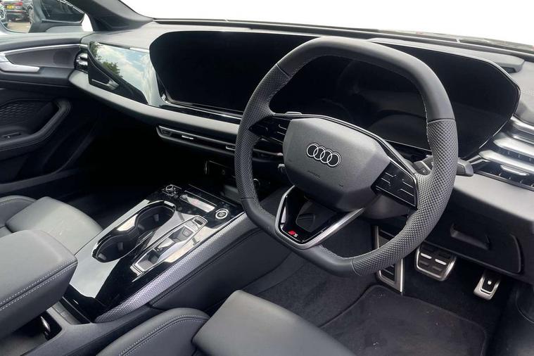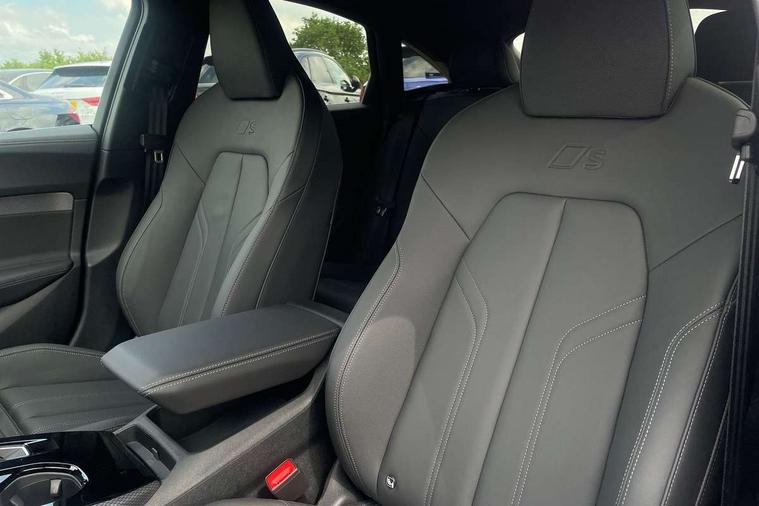 Adaptive cruise control, Advanced driver attention and fatigue montior, Audi application store, Audi assistant, Audi connect emergency call and service, Audi drive select, Audi smartphone interface, Audi virtual cockpit plus with 11.9" OLED colour display, Automatic start/stop system with coasting functionality, Camera based traffic sign recognition, Intersection assist, Lane departure warning, MMI navigation plus with high resolution 14.5" OLED touchscreen colour display, Park assist plus, Parking system plus with 360 display, Progressive steering with servotronic, Rear view camera, Swerve assist and turn assist, Traffic sign based speed limiter, Sports suspension lowered by 20mm, 2 USB-C ports in both the front and rear, Audi sound system impressive sound with 10 loudspeakers including centre speaker and subwoofer, 6-channel amplifier with a total output of 180 watts, DAB digital radio reception, Smartphone compartment with wireless charging, Aluminium window trims, Auto dimming rear view mirror, Body colour door mirrors, Door mirrors - electrically adjustable, heated, folding and auto dimming on both sides, Front and rear electric windows, Front door sill trims with aluminium inlays, illuminated with 'S' logo, High beam assist, LED headlights Plus incl. digital daytime running lights, turning light, all-weather light, motorway light, manouevring light and intersection light, LED rear lights pro incl. dynamic rear indicators and illuminated light strip with animated coming and leaving home function, LED third brake light, Privacy glass, Rear and side windows with heat insulating glass, Rear boot, Rear side wing doors, S Line badges on the front wings, S line bumpers, radiator grille and diffuser in phantom black and diffuser insert in matt anthracite, White rhombus logo projection light in exterior mirrors, Windscreen with acoustic glazing, 3 rear headrests, 3 seat rear bench, 3 spoke leather steering wheel with multi-function buttons with touch control, flattened on top and bottom, with S badging and contrast stitching, 3-zone automatic climate control, 40:20:40 split folding rear seat bench with centre armrest and cup holders, Comfort front centre armrest, Front and rear floor mats, Front seats with manual adjustment for position and 4-way electric lumbar support, Front sport seats with integrated headrest and S embossed logo, Headlining in black cloth, Heated front seats, i-Size child seat mounting on the front passenger side and i-Size and top tether on the outer rear seats, Luggage compartment lid, electrically opening and closing, Manual steering column height and depth adjustment, Single front passenger seat, Stainless steel pedals and footrest, Steering wheel grips in perforated leather and shift paddles, Ambient lighting package plus - A5, 3x3 point rear seat belts, Driver airbag, Electric child safety locks, First aid kit with warning triangle and vests, Front emergency brake assist, Front passenger airbag, Front passenger airbag deactivation, Front side airbags with head airbag system and front interaction airbag, Hill hold assist, Seat belt monitoring with rear seat occupant reminder, Tyre pressure loss indicator, Anti theft alarm, Anti-theft wheel bolts, Keyless Go, Accent surfaces and control buttons in gloss black, Black dashboard with contrast stitching, Inlays in matt brushed aluminium with linear embossing, anthracite, Softwrap in leatherette with contrast stitching, Upper and lower interior elements in leatherette, Tyre repair kit,