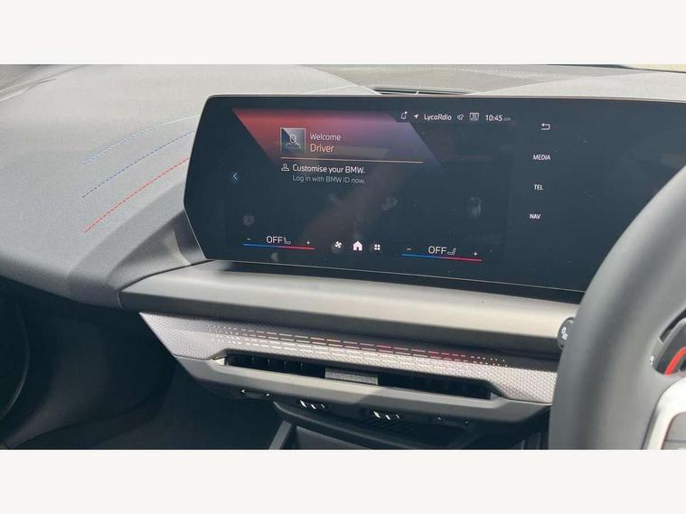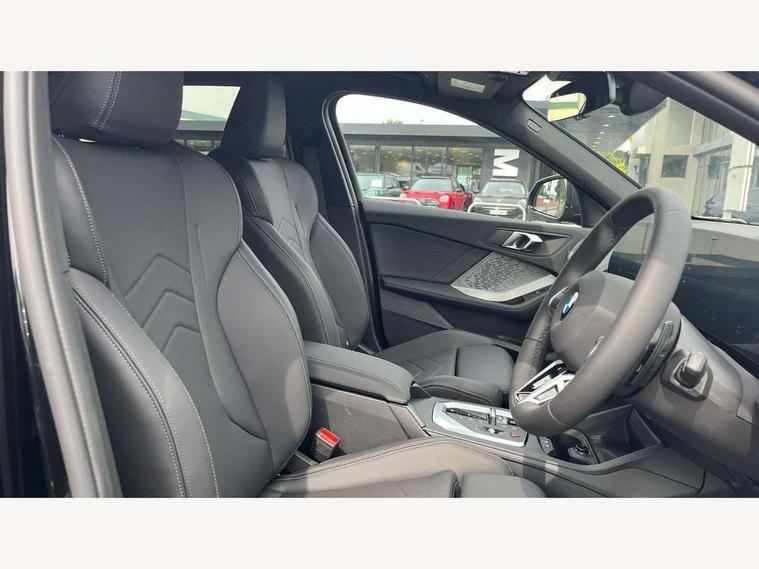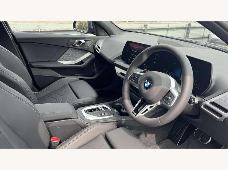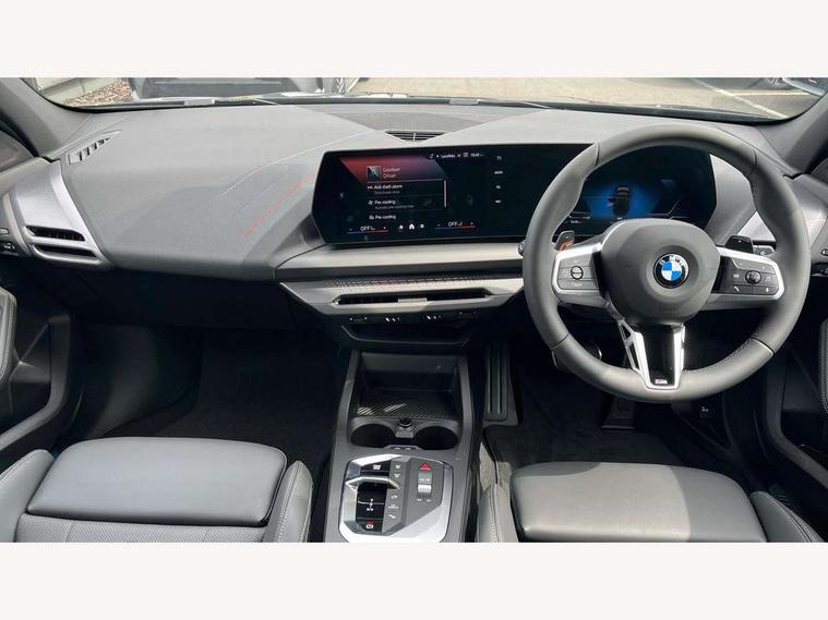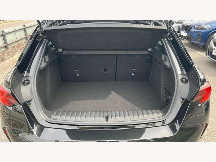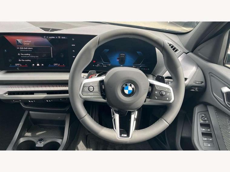 Active guard plus, Attentiveness assist, Bluetooth / WiFi interface for wireless connection of mobile terminal devices and audio streaming, BMW ConnectedDrive online services, BMW Live cockpit plus, BMW Teleservices, Check Control warning system for monitoring of lights and door/luggage compartment open warning, Eco pro mode, Electric power steering with Servotronic steering optimised at all speed ranges, Evasion assistant, Flat airvents in instrument panel with adjustable slats, Front and rear parking sensors, Front axle single joint with specific axle kinematics to minimise drive influences on steering + provide increased rigidity agile driving behaviour, Gearshift time display in manual mode, Integrated owners handbook, Left turn warning with brake function, My modes (Personal / Efficient / Sport), Oil sensor for level and grade, On board computer, Optimum shift indicator, Park assist including reversing assistant, lateral parking aid and reversing assist camera, Personal e-SIM, Personal Profile, Pull away assistant, Rigidly mounted rear subframe - Multi link construction with separate spring / damper configuration and excellent driving characteristics, Speed limit Info including no-overtaking indicator, Speed limiter, 49 litre fuel tank, Aluminium lightweight construction, Anti roll bar front and rear, Balancer shaft, Double VANOS twin scroll turbocharging system, Drive Performance Control, Electronic differential lock, Electronic selector lever, High precision injection, M Adaptive suspension, Petrol Particulate Filter, Steptronic transmission with double clutch, Twin tube gas filled shock absorbers with degressive characteristic curve, VALVETRONIC engine management, DAB Digital radio, Auto dimming rear view mirror, Automatic windscreen wipers and automatic headlight, Body colour door handles, Body colour roof trims, Chrome 'M' logo side designation, Chrome exhaust twin tailpipes round 90mm in left, Chrome kidney grille frame with Satin Aluminium struts, Direction indicator side lights in exterior mirrors, Electrically adjustable exterior mirror with mirror adjustment switch on drivers armrest and aspheric on driver side, convex on passenger side, Exterior M sport design elements, Fading support, Folding side mirrors with auto dimming/folding wing mirrors with auto dimming, Follow me home headlights, Front and rear bumper system with replaceable deformation elements, Front and rear electric windows with open and close fingertip control, anti trap facility and comfort closing, Front bumper panel with M specific design in vehicle colour with inserts in black high gloss, Front door sill finishers in black plastic with M designation in metallic look, Green tinted heat protection glazing, Heated rear window, High gloss black exterior mirrors, High gloss shadowline window frame, Recess cover mirror frames and B/C pillar embelisher trim, High level third brake light, Integrated front windscreen with washer jets, LED daytime running lights, LED eyebrow turn indicators, LED front fog lights, LED Headlights, Lightweight engineering, Matt black air guide grilles, Matt black wheel arch trim, Model badge on tailgate right, Nearside reverse light in rear light cluster, Preparation for high beam assistant, Rain sensor, Rear bumper panel with M-specific design in vehicle colour with inserts in black high gloss, Rear fog lights, Rear side wing doors, Rear window wiper, Shark fin antenna, Side sill covers with M specific design in body colour, Trailer stabilisation logic, Visible VIN plate, Welcome lighting, 12V power socket in front centre console with blanking plug, 3 rear seat head restraints, 3 seat bench in 2nd row, 3 spoke sports leather steering wheel with black leather and stitching, pearl chrome decorative finish, specific M Badge, Anthracite front and rear floor mats, Anthracite headlining, Black boot net with lashing eyes, Cargo function on 2nd seat row, Child seat ISOFIX attachment for two outer rear seats and front passenger seat with anchorage points, Conditioned based service, Driver and front passenger backrest net on rear, Driver and front passenger seat heating, Driver side folding compartment in instrument panel, Folding rear clothes hook, Footrest and pedals in black plastic, Four grab handles integrated in roof lining, Front and rear door pockets with bottle holders, Front and rear side armrest integrated into door trim, Front armrest with storage compartment, Gearshift paddles on steering wheel, Glove compartment, Height adjustable front head restraints, Luggage compartment for bag hooks on left and right, foldable luggage compartment liner and four lashing eyelets, Manual adjust steering wheel, Multi-function controls for steering wheel, Rear seat backrest with manual 60:40 split folding with 3 top tether clips integrated on rear of seat panels, Single front passenger seat, Storage compartment in centre console, Storage compartment in luggage compartment, Stowage of the parcel shelf in luggage compartment trim, Sun visors with vanity mirrors and insert tab, Two front centre console cupholders, Type C two USB ports in rear centre console, Upper retaining strap integrated into backrest rear panels, Connected pack professional - 1 Series, Interior lights pack - 1 Series, M Sport exterior styling aerodynamics pack - 1 Series, 2 tone horn, 3 point seatbelts on all seats, front pyrotechnic belt tensioners, stopper and belt force limiters, rear coded belt buckles, Airbags - Front driver/passenger, front and rear curtain head protection, front side, manual deactivation of front passenger airbag, Anti lock braking system (ABS) with brake assist, BMW emergency call, Brake drying, Braking readiness, Child proof locking system in rear door, Comfort modes, Cornering brake control, Crash sensor activating of airbags, Unlocking doors, hazard warning lights, fuel cut off, interior lighting+activation of safety battery terminal clamp, Driver and front passenger seat belt security check, Dynamic