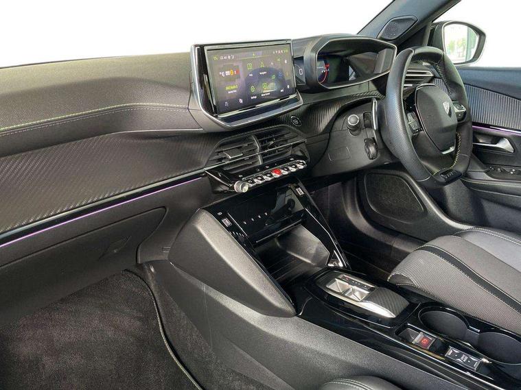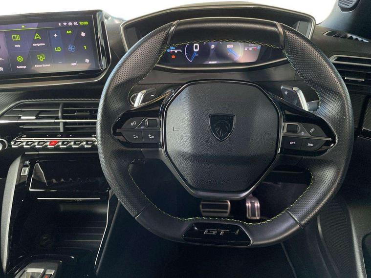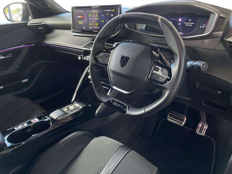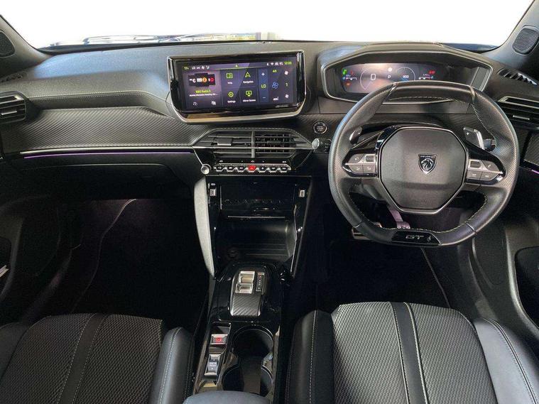 Bluetooth telephone facility, Driver attention warning, E-call, Exterior temperature indicator with ice warning, Multi function trip computer, PEUGEOT i-Cockpit with compact steering wheel, PEUGEOT i-Cockpit with configurable 3D headup instrument panel, PEUGEOT SOS and assistance, Smartphone charging plate, Speed limit recognition and recommendation, Wireless mirror screen with mirror link, apple carplay and android auto, Petrol Particulate Filter, 1x USB-C socket in rear and 1x USB-A socket in rear, 2 USB-C ports in the front, 6 speakers radio with mp3 compatible, DAB Radio (Digital Audio Broadcasting), Voice recognition for radio, navigation and telephony features, 2 X Rear number plate lights, Aluminium door sill scuff plates with peugeot lettering, Automatic hazard light activation upon heavy brake application, Black diamond roof, Black front wing trim with gloss black detail and GT badging, Body coloured exterior door handles, Dark tinted rear side and tailgate windows, Diamond black mirror shells, Diamond black rear roof spoiler, Electric, heated, and power folding door mirrors, Frameless electrochrome interior rear view mirror, Front bumper - Meteor grey lower trim, Full LED headlights with smartbeam assist with auto height adjustment, Gloss black finish on B pillar, Gloss black rear cluster connecting strip, Gloss black roof bars, Gloss black window surround, GT model designation badging on tailgate, Headlights left on audible warning, LED daytime running lights with distinctive 3 claw signature, LED side indicator lights integrated into door mirrors, LED third brake light, Model designation badges front and rear, One touch electric front/rear windows with pinch protection, Radiator grille - body coloured vertical chequered grille, Radiator grille - gloss black top edge trim, Rear full LED 3D peugeot signature claw effect lights with daylight function, Rear reversing lights, Rear side wing doors, Rear windscreen wiper triggered automatically in reverse gear, Tailgate with heated rear windscreen and wiper blade, Twin chromed exhaust pipes, Wheel arch extensions, 1/3 to 2/3 split folding rear seats, 12V socket, 3 seat bench in 2nd row, 8 Colour personalisable ambient lighting, Automatic air conditioning with pollen and active carbon filter, Central front armrest with storage compartment, Driver and front passenger sport seats, Electric power steering with reach and rake adjustable steering column, Front and rear carpet mats in black, Front LED interior light with 2 reading spotlights and rear interior light with timer, Front passenger seat manual adjustment - height, longitudinal and back rest angle, High centre console, ISOFIX child seat mounting points on passenger seat, Mistral full-grain perforated leather steering wheel with Lime Green stitch detail and satin chrome 'GT' emblem, Multifunction steering wheel, Piano keys: Gloss black and chrome toggle switches to access main functions of the vehicle and touchscreen functions, Roof lining - Mistral black, Seatbelt unfastened on the move audible and visual alert for front and rear seats, Single front passenger seat, Two position modular boot floor, Visibility pack - 2008, 2x 2nd row ISOFIX child seat mountings, ABS (Anti-lock Braking System) with EBD (Electronic Brakeforce Distribution) and EBA (Emergency Braking Assistance), Active safety brake with night function/cyclists/pedestrians, Adaptive driver and front passenger airbags with passenger airbag deactivation function, Child locking functionality on rear doors, Driver/front passenger side airbags, Electric parking brake, ESP (Electronic Stability Program) + Hill Start Assist, Front and rear curtain airbags, Front and rear disc brakes, Front and rear three-point retractable seatbelts, with force limiters, Front optimised safety headrests and rear retractable headrests (x3), height adjustable, Tyre pressure sensor, Automatic door locking when moving off, Deadlocks, Electronic code immobiliser, Peugeot Open and Go (keyless entry and push button start), Thatcham category 1 alarm, Carbon effect Dashboard, front and rear door panel finish,