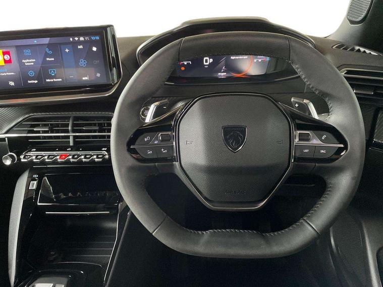Bluetooth telephone facility, Driver attention warning, E-call, Exterior temperature indicator with ice warning, Front and rear parking sensors, Multi function trip computer, PEUGEOT i-Cockpit with 10" high definition capacitive touchscreen, PEUGEOT i-Cockpit with compact steering wheel, PEUGEOT i-Cockpit with configurable headup instrument panel, Speed limit recognition and recommendation, Wireless mirror screen with apple carplay and android auto, Petrol Particulate Filter, 1x USB-C socket in rear and 1x USB-A socket in rear, 2 USB-C ports in the front, 6 speakers radio with mp3 compatible, DAB Radio (Digital Audio Broadcasting), 2 X Rear number plate lights, Automatic hazard light activation upon heavy brake application, Black front wing trim with gloss black detail, Body coloured exterior door handles, Colour coded rear roof spoiler, Colour coded roof, Dark tinted rear side and tailgate windows, Diamond black mirror shells, Eco LED headlights, Electric, heated, and power folding door mirrors, Electrochrome rear view mirror, Front bumper - Meteor grey lower trim, Gloss black finish on B pillar, Gloss black rear cluster connecting strip, Gloss black roof bars, Headlights left on audible warning, LED daytime running lights with distinctive 3 claw signature, LED side indicator lights integrated into door mirrors, LED third brake light, Model designation badges front and rear, One touch electric front/rear windows with pinch protection, Radiator grille - Body coloured top edge trim, Radiator grille - body coloured vertical chequered grille, Rear full LED 3D peugeot signature claw effect lights with daylight function, Rear reversing lights, Rear side wing doors, Rear windscreen wiper triggered automatically in reverse gear, Tailgate with heated rear windscreen and wiper blade, Twin chromed exhaust pipes, Wheel arch extensions, 1/3 to 2/3 split folding rear seats, 12V socket, 3 seat bench in 2nd row, Automatic air conditioning with pollen and active carbon filter, Central front armrest with storage compartment, Driver and front passenger comfort seats, Driver seat manual adjustment - height, longitudinal and back rest angle, Electric power steering with reach and rake adjustable steering column, Front LED interior light with 2 reading spotlights and rear interior light with timer, Front passenger seat manual adjustment - height, longitudinal and back rest angle, High centre console, Leather steering wheel, Multifunction steering wheel, Piano keys: Gloss black and chrome toggle switches to access main functions of the vehicle and touchscreen functions, Roof lining - Mistral black, Seatbelt unfastened on the move audible and visual alert for front and rear seats, Single front passenger seat, Tri material cloth/leather effect upholstery, Two position modular boot floor, Visibility pack - 2008, 2x 2nd row ISOFIX child seat mountings, ABS (Anti-lock Braking System) with EBD (Electronic Brakeforce Distribution) and EBA (Emergency Braking Assistance), Active safety brake with night function/cyclists/pedestrians, Adaptive driver and front passenger airbags with passenger airbag deactivation function, Child locking functionality on rear doors, Driver/front passenger side airbags, Electric parking brake, ESP (Electronic Stability Program) + Hill Start Assist, Front and rear curtain airbags, Front and rear disc brakes, Front and rear three-point retractable seatbelts, with force limiters, Front optimised safety headrests and rear retractable headrests (x3), height adjustable, Tyre pressure sensor, Automatic door locking when moving off, Deadlocks, Electronic code immobiliser, Thatcham category 1 alarm, Carbon effect Dashboard, front and rear door panel finish, 17" Karakoy diamond cut alloy wheels,