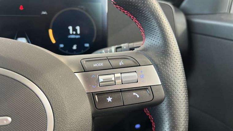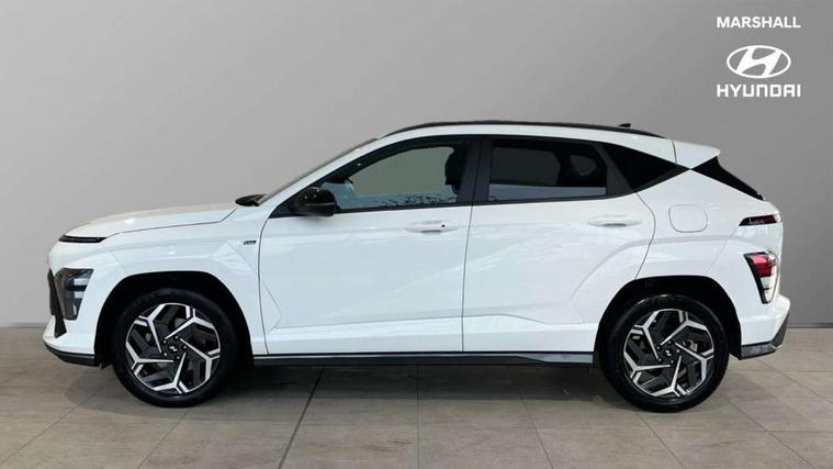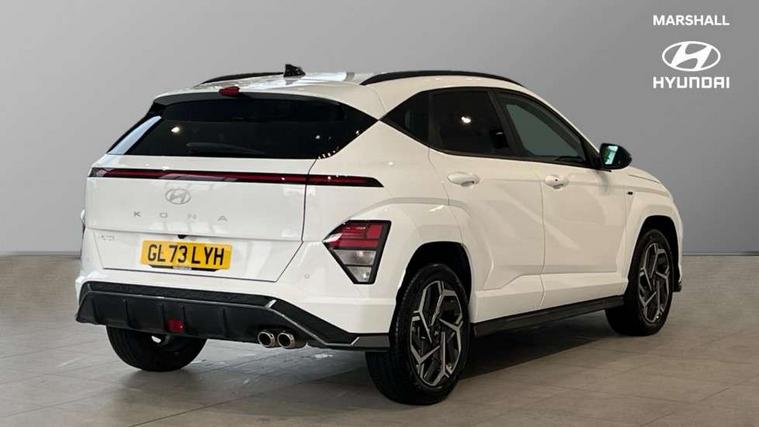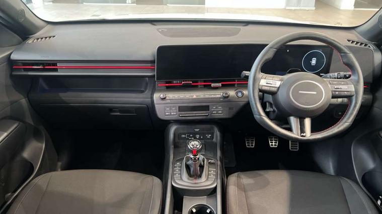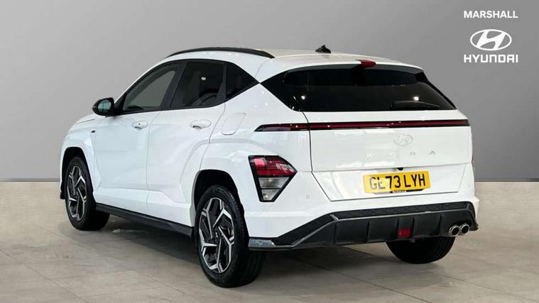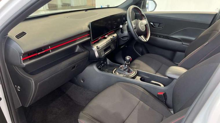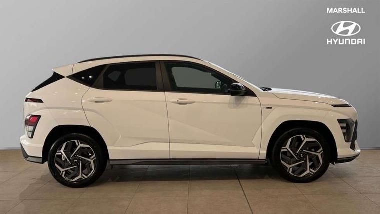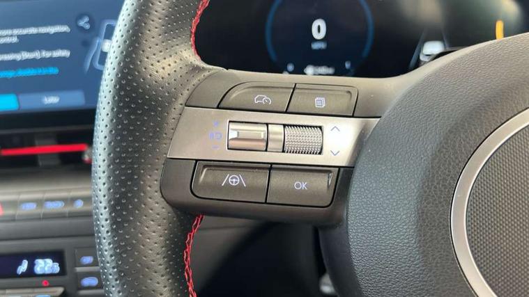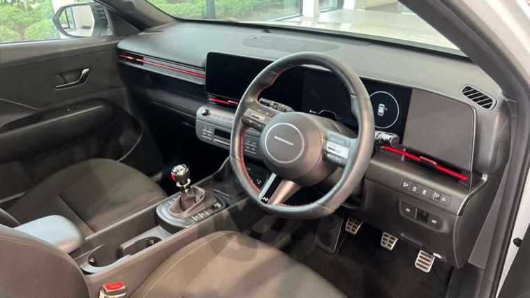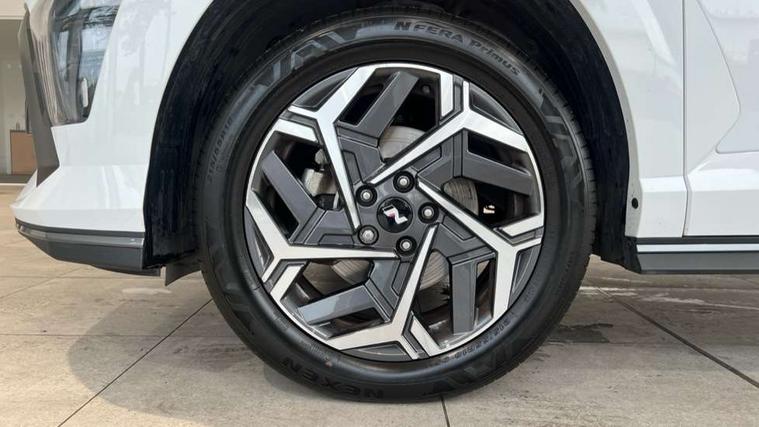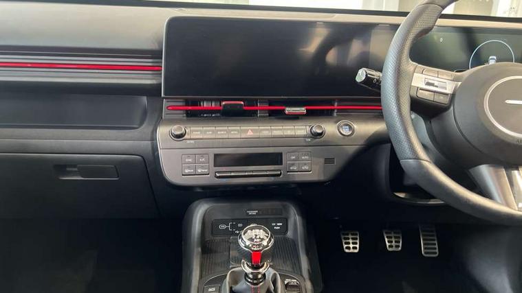 12.3" touchscreen centre console display satellite navigation with bluelink, live services and mapcare, Bluetooth connectivity with voice recognition, Cruise control, Digital clock, Driver status monitor (DSM), Driver supervision instrument cluster with 12.3" LCD display, eCall emergency call system, Feature on demand - Enabled, Forward collision avoidance assist (FCA 1.5) - Car, pededstrian, cycle and junction turning, Front parking sensor, Height adjustable power tailgate, Intelligent speed limit assist, Lane follow assist, Lane keep assist, Leading vehicle departure alert (LVDA), Parking system with rear camera and guidance system, PAS, Rear parking sensor, Roadside assistance, Smartphone integration compatible with Apple CarPlay and Android Auto, Windscreen washer fluid sensor and warning indicator, Wireless phone charging pad, 2 front USB C and 2 rear USB C charging points, DAB Digital radio, Speakers - Front, rear and tweeters, Steering wheel audio, phone and cruise controls, Auto dimming rear view mirror, Automatic headlights with dusk sensor, Automatic windscreen wipers with rain sensor, Body colour bumpers, Body colour exterior door handles, Body coloured wheel arch inserts, Door mirror LED indicator lights, Electric front windows with anti-trap mechanism and one touch control, Electric rear windows, Electrically adjustable and heated door mirrors, Full LED MFR headlights, Gloss black door mirrors, LED daytime running lights, LED upper and lower rear lights, Power folding door mirrors, Privacy glass - Rear windows and tailgate, Rear roof spoiler with integrated LED brake light, Rear side wing doors, Rear wiper, Roof rails, Solar glass with front door glass and windscreen, Tinted glass in front and rear doors, Windscreen auto defog function, 12V power outlet in front console, 2 zone climate control, 3 seat bench in 2nd row, 40/20/40 split folding rear seat, Adjustable head restraints, Aluminium pedals, Ambient lighting, Driver and passenger front seat pockets, Driver's seat lumbar support, Driver/passenger manual seat height adjustment, Driver/passenger sunvisors and illuminated vanity mirrors, Floor mats, Heated front seats, Heated rear seats, Heated steering wheel, Height/reach adjustable steering column, Isofix rear child seat fastenings, Leather wrapped steering wheel and gear knob, LED centre interior light, LED front interior light, Luggage compartment LED lighting, Luggage shelf, Metal paint effect interior door handles, N Line cloth upholstery, Parcel shelf, Rear centre armrest, Rear centre console with air vents, Single front passenger seat, Vertical adjustment rear head restraints, N Line exterior design pack - Kona, Trailer wiring package - Kona, Airbag - front, front side, curtain and centre front airbag, Anti-lock brake system (ABS), Childproof rear door locks, Downhill brake control, EBD + Brake Assist, Electric parking brake, Electronic stability control, Fasten seatbelt reminder, Fixed 3 point for second row centre passenger seatbelt, Front seatbelt pretensioners, Height adjustable front seatbelts, Hill start assist control (HAC), Passenger airbag deactivate switch, Rear seat alert, Traction control, Tyre pressure monitoring system, Alarm/immobiliser, Deadlocks, Folding key, Locking wheel nuts, Remote central locking, Smart key with keyless entry and engine start/stop button, Five year annual vehicle health checks, Temporary mobility kit (TMK),