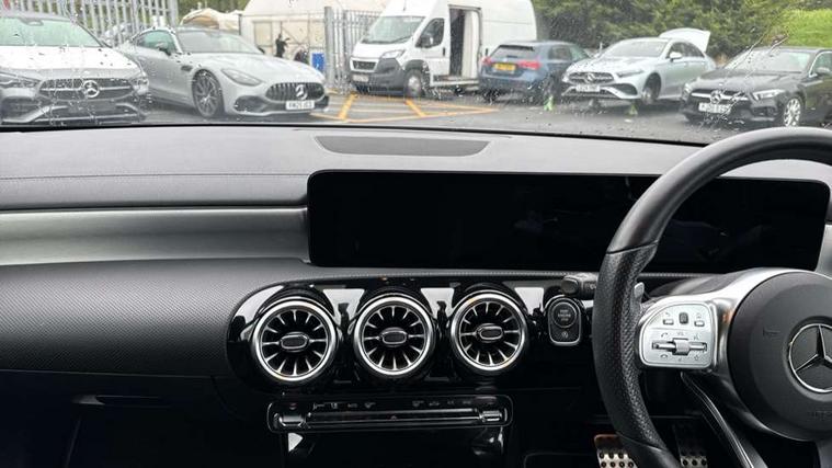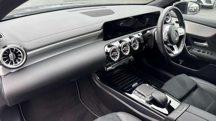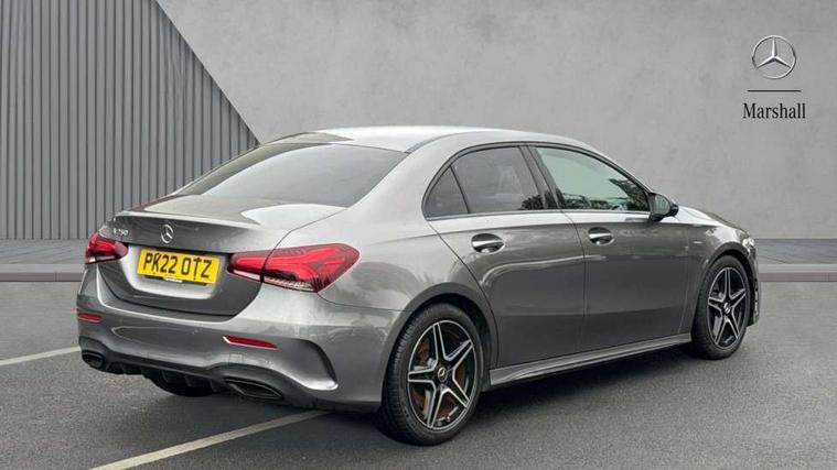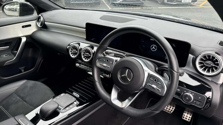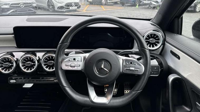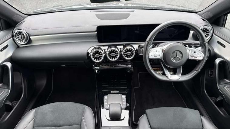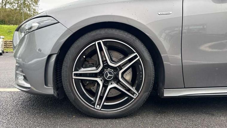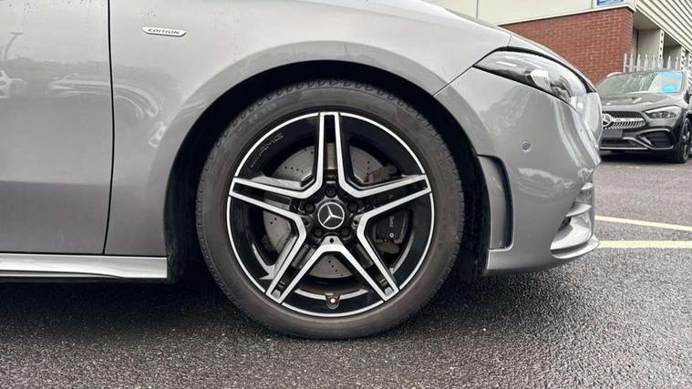 10.25" media display, 180 degree rear view camera with parking guidelines, 7" colour screen in instrument panel, Active parking assist with visual and audible warning of detected obstacles, Attention assist, Brake pad wear indicator warning light, Car wash mode, Cruise control + speed limiter, Direct steering, Dual bluetooth interfaces, DYNAMIC SELECT with a choice of driving modes (ECO, Comfort, Sport and Individual), ECO start/stop function, Fluid level warning indicator for fuel, oil, coolant and washer fluid, Hard-disk navigation, Hey Mercedes Voice activation, Lamp failure indicator, Lane keeping system, Mercedes me connect including emergency call system, accident recovery, breakdown and maintenance management, Mercedes me remote services, Outside temperature gauge, Owners manual in English, Pre-installation for private car sharing, Preinstallation for Mercedes Benz link, Service indicator (ASSYST), Smartphone integration with Apple CarPlay and Android auto, Speed sensitive power steering, Trip computer, Ultrasonic sensors positioned in the front and rear bumpers, Lowered comfort suspension, Rear axle multi-link, 2 USB ports (type C) in rear stowage compartment and one in front of center console, 6 speakers, DAB Digital radio, MBUX multimedia system with DAB digital radio and touchpad including satellite navigation, Mercedes-Benz sound system - 100W, 4 Electric Front and Rear windows, Adaptive brake lights, AMG bodystyling - Front apron with splitter in chrome, rear apron with chrome trim and chrome visible trim elements in tailpipe, Automatic headlights, Black weather strip, Body colour bumpers, Body colour door handles, Body colour side skirt, Body coloured door mirrors, Electric adjustable and heated door mirrors with integrated LED side indicators, Exclusive diamond radiator grille, Exhaust system - Twin visible tailpipes in polished stainless steel, Headlamp assist automatic headlamp activation, Heated glass rear windscreen + timer control, High gloss black beltline, LED high performance headlamps with integrated LED daytime running lights, LED tail lamp, Privacy glass, Radio aerial, Rain sensing windscreen wipers with two sensitivity settings, Rear boot, Rear fog lights, Rear side wing doors, Third brake light featuring LED technology, Window line trim strip in high gloss black, 3 seat bench in 2nd row, 3 Spoke flat bottom leather multi function steering wheel with perforated leather in grip area, 40:20:40 split folding rear seats, Artico man-made leather/Microfibre Dinamica upholstery with contrast stitching in light grey, Auto Mercedes-Benz child seat recognition sensor, Black air vents with surround in silver chrome, Black roof lining, Brushed stainless steel sports pedals with rubber studs, Controller on centre console with chrome surround, Floor mats with black top stitching and embroidered edition logo and piping in light grey, Front centre armrest with storage compartment, Front door sills with Mercedes Benz lettering, Front seat backs luggage nets, Front seat cushion length adjustment, Galvanished gear shift paddles on steering wheel, Heated front seats, Height/reach adjustable steering column, Interior lighting - 64 colour Ambient lighting, Interior mirror with reading lamps in black and frameless, Manual height adjustable front seats, Rear head restraints, Seat occupancy sensor for front passenger seat, Single front passenger seat, Sports seats with adjustable head restraints, Stowage compartment in centre console with retractable cover, Sunvisors with illuminated vanity mirrors, Touchpad on center console, Twin front cupholders, Two zone thermotronic luxury automatic climate control, Light and sight pack - A Class, Mirror package - A Class, Night pack - A Class Saloon/Hatchback, Seat comfort pack - A Class, 3 rear 3 point seatbelts, ABS with Brake Assist, Active bonnet, Active brake assist includes forward collision warning system with autonomous braking, Adaptive brake assist with hold function and hill start assist, Black seatbelts, Childproof locks manually operated for rear doors and electrically operated for rear power windows, Crash responsive emergency lighting, Driver and passenger head and side airbags, Drivers knee airbag, Dual stage driver/passenger airbags, Electronic parking brake, ESP curve dynamic assist, ESP with ASR, Front and rear seatbelt reminder, Front brake callipers with Mercedes Benz lettering, ISOFIX and top tether child seat fixing points in two outer rear seats, Perforated front brake discs, Tyre pressure monitoring system, Warning triangle and first aid kit, Window airbags, Alarm system/interior protection/immobiliser, Keyless Go, Remote central locking and crash sensor with emergency opening function, Urban guard vehicle protection system with immobiliser and interior protection, Matrix look light longitudinal grain aluminium trim element, 18" AMG 5 twin spoke light alloy wheels aerodynamically optimised painted in black with highsheen finish, Summer tyres, Tirefit sealant kit,