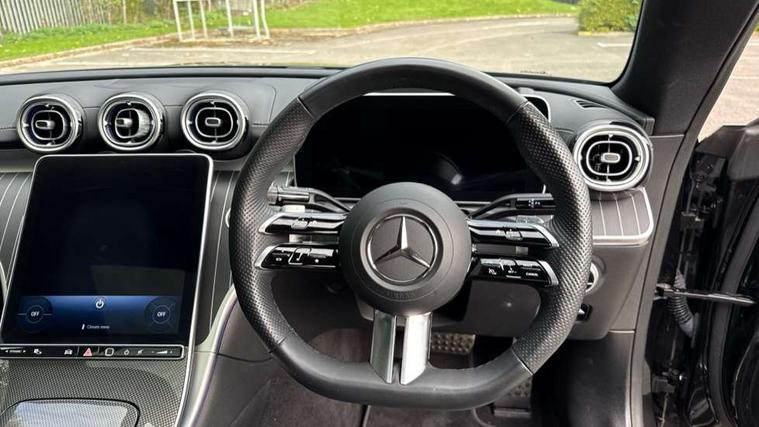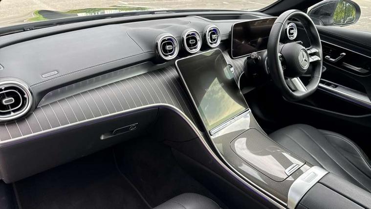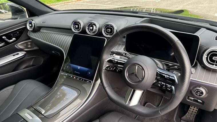 5G Communications module, Active lane keeping assist, Bluetooth connection, Car wash mode, DYNAMIC SELECT with a choice of driving modes (ECO, Comfort, Sport, Sport+ and Individual), eCall emergency call system, Fingerprint scanner, Fluorescent jacket for driver, Fully digital 12.3" driver display screen, Hard-disk navigation, Head up Display, Hey Mercedes Voice activation, MBUX navigation premium, PAS, Passive person presence reminder, Portrait format 11.9" touchscreen central display with driver orientation, Smartphone integration with Apple CarPlay and Android auto, Traffic sign assist, Wireless charging system for mobile devices in the front, 66 litre fuel tank, 9G TRONIC plus automatic transmission, Agility control sports suspension lowered by 15 mm, Integrated starter generator Gen 2, Sporty engine sound system, Burmester 3D surround sound system with sound personalisation, Digital radio, MBUX extended functions, MBUX multimedia system, AMG bodystyling, AMG Line exterior, Auto headlights, Electric windows, Heat insulating dark tinted glass, LED 3rd brake light, LED Day time running light, LED digital light with adaptive highbeam assist plus, Panoramic sliding sunroof, Rain sensor windscreen wipers, Rear boot, Variable front intermittent wipers, 2 individual rear seats, 2 rear head restraints, Ambient lighting premium, Ambient lighting with projection of brand logo, AMG floor mats, AMG line interior, Belt feeder, Black fabric roof liner, Climatised multicontour front seats, Folding rear seat backrests, Front headrests, Heated front seats, Illuminated door sill panels with Mercedes Benz lettering, Instrument panel and beltlines in ARTICO manmade leather in nappa look, Leather upholstery, Multifunction sports steering wheel in nappa leather, Power height and reach adjustable steering column, Single front passenger seat, THERMATIC automatic climate control, Energizing plus package with air balance pack - CLE, Interior light pack - CLE, Keyless-Go comfort package - CLE, Memory seat pack - CLE, Mirror pack - CLE, Parking package with 360 degree camera - CLE, Stowage space package - CLE, USB package plus - CLE, Anti-lock braking system (ABS), Braking system with larger brake discs on the front axle, Centre airbag, Dual front airbags, Electric parking brake, Electronic Stability Programme (ESP), Front and rear seatbelt reminder, Hill start assist, Pedestrian protection, Tyre pressure monitoring system, Anti theft alarm system, Guard 360 degree vehicle protection plus, Increased anti-theft protection, Interior monitoring system, Black open-pore aluminium lines wood trim with mixed fabric look metal finish centre console, 20" AMG multi spoke light alloy wheels painted in black with high sheen finish - RVM, Tirefit,
