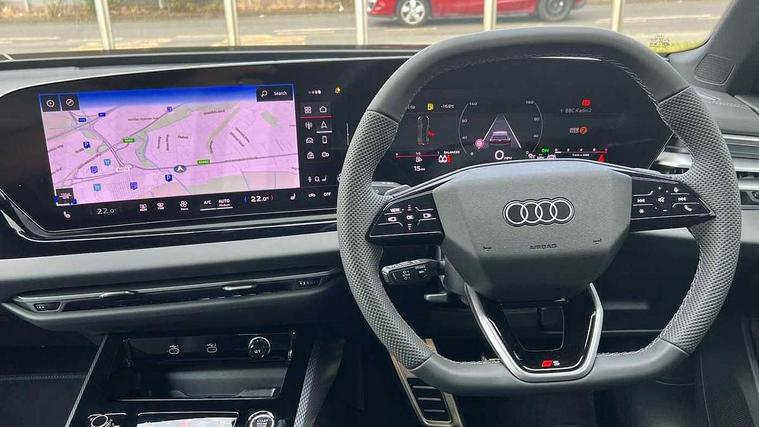 Adaptive cruise control, Advanced driver attention and fatigue montior, Audi application store, Audi assistant, Audi connect emergency call and service, Audi drive select, Audi smartphone interface, Audi virtual cockpit plus with 11.9" OLED colour display, Automatic start/stop system with coasting functionality, Camera based traffic sign recognition, Intersection assist, Lane departure warning, MMI navigation plus with high resolution 14.5" OLED touchscreen colour display, Park assist plus, Parking system plus with 360 display, Progressive steering with servotronic, Rear view camera, Swerve assist and turn assist, Traffic sign based speed limiter, Sports suspension lowered by 20mm, 2 USB-C ports in both the front and rear, Audi sound system impressive sound with 10 loudspeakers including centre speaker and subwoofer, 6-channel amplifier with a total output of 180 watts, DAB digital radio reception, Smartphone compartment with wireless charging, Aluminium roof rails, Aluminium window trims, Auto dimming rear view mirror, Body colour door mirrors, Door mirrors - electrically adjustable, heated, folding and auto dimming on both sides, Front and rear electric windows, Front door sill trims with aluminium inlays, illuminated with 'S' logo, High beam assist, LED headlights Plus incl. digital daytime running lights, turning light, all-weather light, motorway light, manouevring light and intersection light, LED rear lights pro incl. dynamic rear indicators and illuminated light strip with animated coming and leaving home function, LED third brake light, Privacy glass, Rear and side windows with heat insulating glass, Rear side wing doors, Rear wash/wipe, S Line badges on the front wings, S line bumpers, radiator grille and diffuser in phantom black and diffuser insert in matt anthracite, White rhombus logo projection light in exterior mirrors, Windscreen with acoustic glazing, 3 rear headrests, 3 seat rear bench, 3 spoke leather steering wheel with multi-function buttons with touch control, flattened on top and bottom, with S badging and contrast stitching, 3-zone automatic climate control, 40:20:40 split folding rear seat bench with centre armrest and cup holders, Comfort front centre armrest, Front and rear floor mats, Front seats with manual adjustment for position and 4-way electric lumbar support, Front sport seats with integrated headrest and S embossed logo, Headlining in black cloth, Heated front seats, i-Size child seat mounting on the front passenger side and outer rear seats, i-Size and top tether on the outer rear seats, Luggage compartment lid, electrically opening and closing, Manual steering column height and depth adjustment, Single front passenger seat, Stainless steel pedals and footrest, Steering wheel grips in perforated leather and shift paddles, Ambient lighting package plus - A5, 3x3 point rear seat belts, Driver airbag, Electric child safety locks, First aid kit with warning triangle and vests, Front emergency brake assist, Front passenger airbag, Front passenger airbag deactivation, Front side airbags with head airbag system and front interaction airbag, Hill hold assist, Seat belt monitoring with rear seat occupant reminder, Tyre pressure loss indicator, Anti theft alarm, Anti-theft wheel bolts, Keyless Go, Accent surfaces and control buttons in gloss black, Black dashboard with contrast stitching, Inlays in matt brushed aluminium with linear embossing, anthracite, Softwrap in leatherette with contrast stitching, Upper and lower interior elements in leatherette, Tyre repair kit,