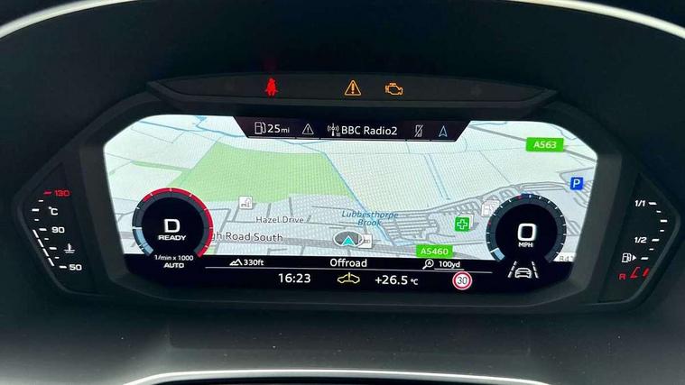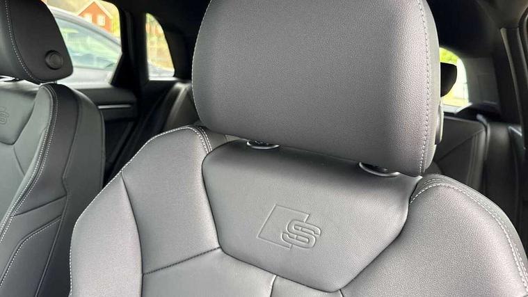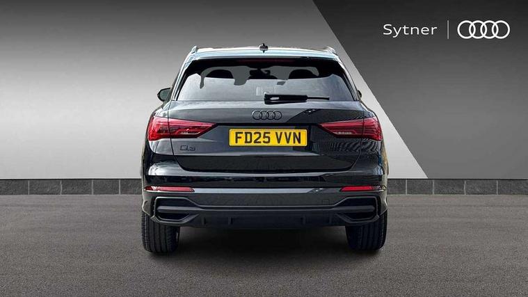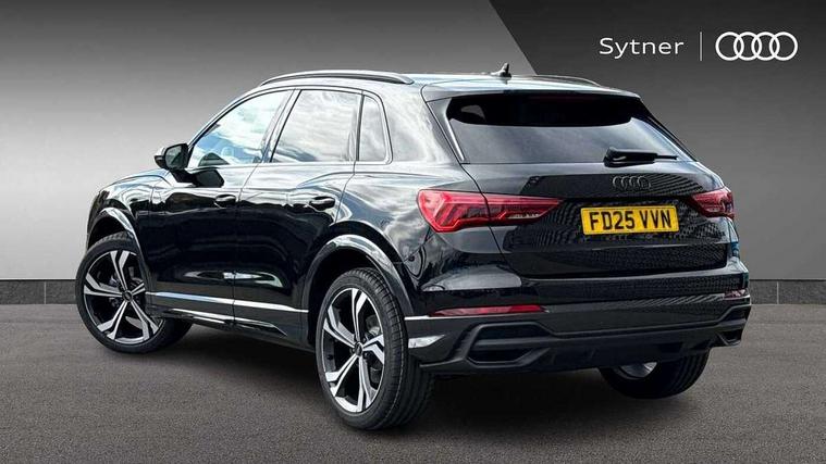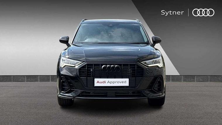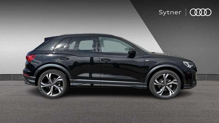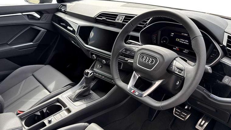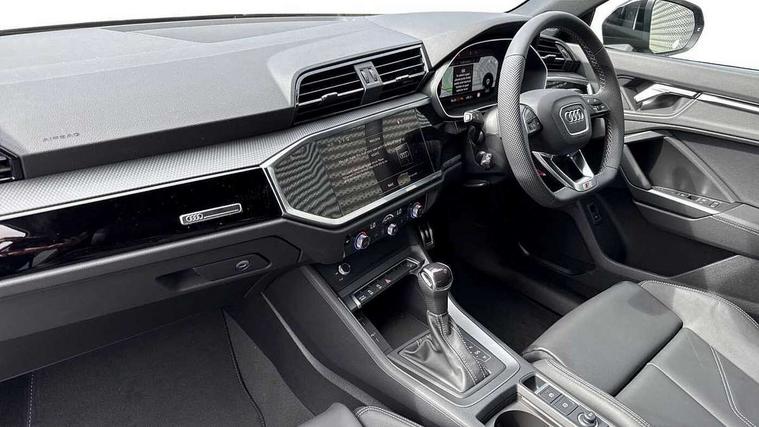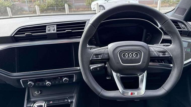 Amazon alexa Integration, Audi connect safety and service, Audi drive select, Audi lane departure warning, Audi smartphone interface includes wireless Apple carplay/Android Auto, Audi Virtual Cockpit - 10.25" display, Bluetooth interface, Camera based traffic sign recognition, Distraction and Fatigue warning, Legal emergency call, MMI Navigation Plus with high resolution 10.1 inch touchscreen colour display, Power operated tailgate, Progressive steering, Service interval indicator, Start stop system with recuperation, Voice control system with natural language interaction, Sports suspension, 2 USB-C ports with charge and data functions, 6 passive loudspeakers, DAB digital radio module, Acoustic windscreen, Anthracite black radiator grille, Audi Beam uses LEDs to project the Audi logo onto the ground as you exit your Q3, Auto dimming door mirrors, Auto dimming frameless rear view mirror, Black roof rails, Electrically folding, adjustable and heated door mirrors with integrated LED side indicators and kerb view function for passenger side, Front and rear electric windows, Front fog lights, Grille vertical bars in aluminium silver/Matt, High gloss black finish B and C pillars, LED Dynamic rear indicators, LED headlights with LED daytime running lights, LED rear lights, LED third brake light, Privacy glass dark tinted rear and rear-side windows (from B-pillar backwards), Rain and light sensors, Rear diffuser grille in grained matt black, Rear diffuser strip in matt anthracite black, Rear side wing doors, Rear wiper, S line bumpers in contrasting Manhattan grey, Variable front intermittent wipers, 12V socket in rear centre console, 3 seat bench in 2nd row, 40:20:40 folding with manual adjustment for 60:40 forwards/backwards position and backrest angle, Adjustable rear seat bench/backrest with centre armrest and cupholder, Black carpet mats, Black cloth headlining, Dual zone electronic climate control, Electric lumbar support, Front and rear black floor mats with contrast stitching in rock grey, Front and rear headrests, Front centre armrest, Height and reach adjustable steering wheel, Illuminated door sill trims with S logo, ISOFIX child seat mounting for front passenger with airbag deactivation and outer rear seat including top tether attachment point for outer rear seats, Luggage compartment sill protection in stainless steel, Manual front seats with height adjustment, Perforated leather gearknob, Single front passenger seat, Stainless steel pedals, Twin leather upholstery with front sport seats + S embossing, Black styling pack - Q3, Non smoking pack - Q3, 3x3 point rear seatbelts, 6 airbags - Driver, front passenger, curtain and side windows, Audi pre-sense front with pedestrain and cyclist recognition, Electrically operated child locks on rear doors, Electromechanical parking brake, Electronic stabilisation control including ABS, ASR and EDL, Front seatbelt reminder, Hill descent control, Hill hold assist, Pre sense basic, Seatbelt monitoring, Tyre pressure warning, Warning triangle and first aid kit, Anti theft wheel bolts, Immobiliser, Remote central locking, Thatcham approved category 1 anti theft alarm, Aluminium look interior elements, Detail dashboard around MMI touch colour display in glass look, black with surround in aluminium look, Leatherette door armrest, Piano black inlay,