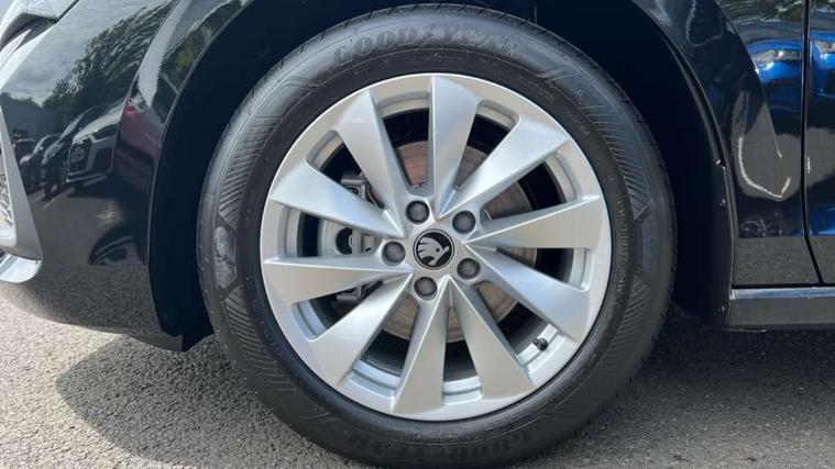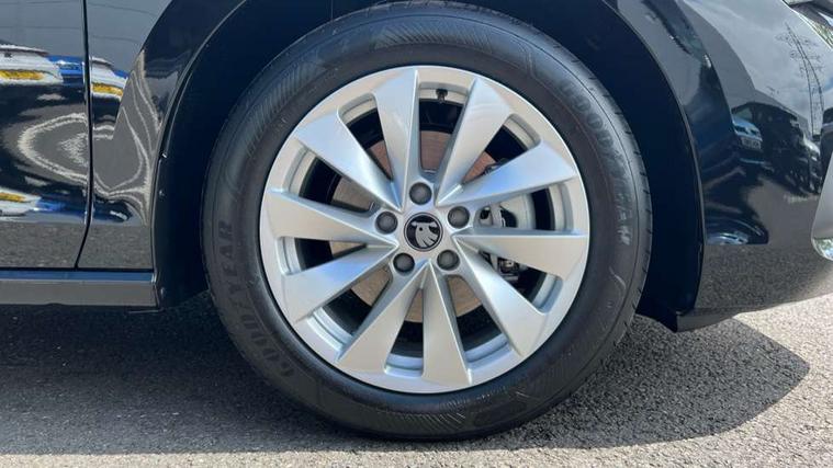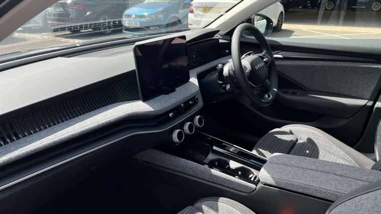 13" touchscreen display with satellite navigation, 4x USB-C ports (2x in front centre console and 2x in rear) (45W), Adaptive cruise control with speed assist, lane assist plus and traffic tram assist, Blind spot detection with door exit warning, Bluetooth system, CareConnect and Emergency Call, ChatGPT functionality, Driver fatigue sensor, Front assist with extended predictive pedestrian protection, Front cross traffic assist, PAS, Quick start all heating software functionality, Stop/start engine system, Traffic sign recognition, Turn assist with evasive assistance, Virtual Cockpit - 10.25" digital display, Voice control system, Washer for rear camera, Wireless charging for one smartphone (15W) with cooling function, Wireless smartlink apple carplay, SmartLink+ android auto, 8 Speakers, DAB Digital radio, Display cleaner, FM radio connection, Web radio connection, Acoustic side windows and interior noise suppression, Backdrop lighting, Body colour door handles, Body coloured door mirrors, Chrome window surround, Dark chrome grille surround, Electrically adjustable, heated, folding and driver side auto-dimming door mirrors with integrated indicators and logo projection, Frameless auto-dimming rear view mirror with USB-C, Ice scraper in fuel tank cap, LED 3rd brake light, Light assist with High beam control, Light assistant (coming/leaving home/tunnel light), Privacy glass, Rear fog light (x1), Rear side wing doors, Unique dark chrome design logo on alloy wheels, Windscreen wipers with rain sensor, 12V socket 1x centre console 1x boot, 2x cargo elements in boot, 2x light in boot, 3 seat bench in 2nd row, 60:40 Split folding rear seats, Bottle holders in the front doors 1.5 litre bottle and rear 1.5 litre bottle, Cup holder in front with easy open mat, Front armrest with storage box, Front comfort seats, Heated front seats, Height adjustable driver and front passenger seats with 2-way electric tilt, 4-way pneumatic lumbar support, and extendable thigh support, Height adjustable front and rear head restraints, Height adjustable front passenger seat, Illuminated glovebox, Interior lights with control switches, Isofix child seat fittings in outer rear and front passenger seats, LED front and rear reading lights, Massage function for front seats, Single front passenger seat, Skoda lettering on steering wheel, Storage compartment with cover, Storage pockets on back of front seats, Sun visors with illuminated vanity mirrors, Ticket holder on A Pillar, Tri zone climate control, Umbrella in driver's door, 3 rear seatbelts, 8 Airbags - Front driver and passenger, front side driver and passenger, centre, curtain front and rear, drivers knee, Crew protect assist, Driver and passenger seatbelts with warning light, Electronic parking brake, ESC including ABS, EBV, MSR, ASR, EDS, HBA, DSR, RBS, CBC, multi-collision brake (MKB) and Auto hold, Hill hold assist, Power operated child lock in rear doors, Alarm with interior monitoring tilt sensor and back up horn, Backrest remote release from trunk, Electronic engine immobiliser, Keyless start/stop, Remote central locking with SAFE system, Third key, Decorative front door sills,