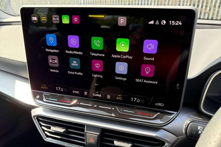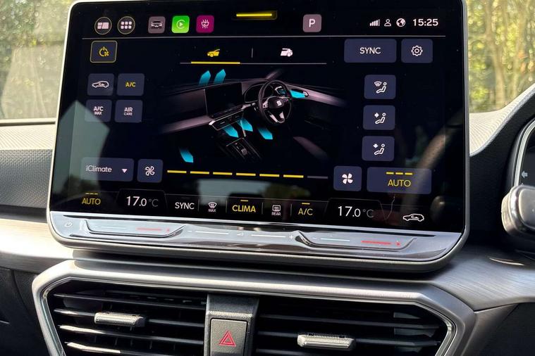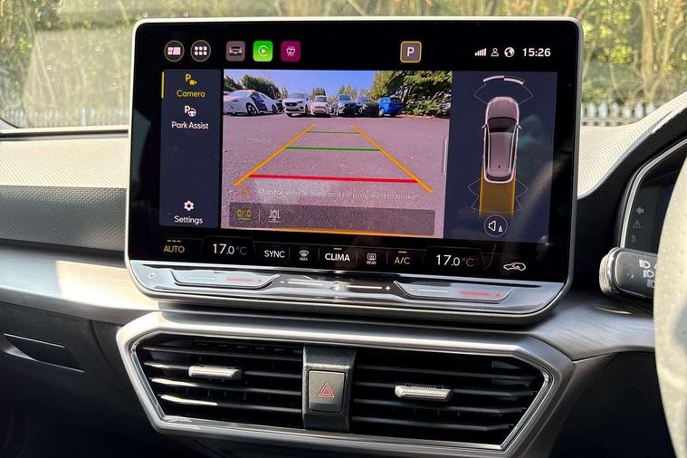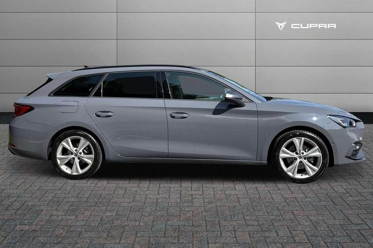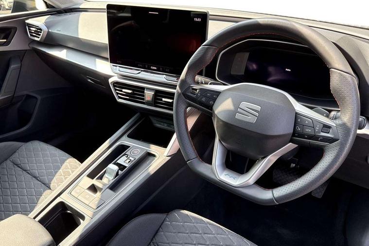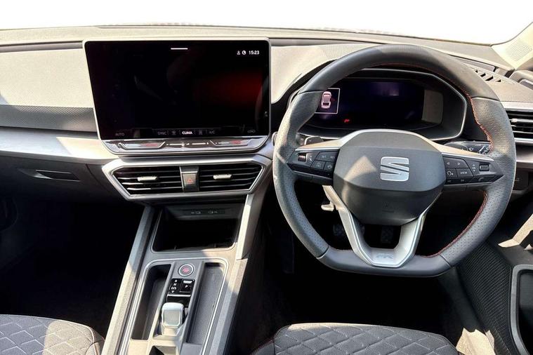 Digital cockpit, E-call, Four x USB Type C ports, Front assist with forward collision warning braking reaction to vehicles, pedestrians and cyclists, Full link smartphone integration with Mirror Link, wireless Apple CarPlay and wired Google Android Auto, Lane assist, Lockable tailgate, Park assist (inc front/rear parking sensors), Power assisted speed sensitive electro-mechanical steering, Rear view camera, RPM, trip computer, outside temp gauge, instrument light brightness, low fuel warning light, lights on reminder, gearshift indicator, SEAT drive profile with 4 modes (Eco/Normal/Sport/Individual), throttle response and gearshift mode, Service interval indicator, Start/stop system with regenerative braking, Sports suspension, XDS electronic differential lock and dynamic traction support, 7 speakers, Auxiliary input socket, Auto dimming rear view mirror, Body colour door handles, Body coloured bumpers, Cosmo grey exterior mirrors with integrated LED indicators, Dark tinted rear windows, Dynamic headlight range control, Electric front/rear windows, Electrically adjustable, heated and folding door mirrors, FR sports bumper, Illuminated front door sill, LED front fog lamps, LED Headlights with dynamic turn signals, LED tail lights and rear fog lights with rear coast to coast lighting, Matt black roof rails, Rear side wing doors, Rear wash/wipe, Separate daytime running light with automatic headlight control and coming home feature, Third brake light, Welcome light silhouette from exterior mirrors, Windshield wiper intermittent control with light/rain sensor, 12v power point in centre console, 3 seat bench in 2nd row, 60/40 split rear bench seat with armrest, Ambient lighting with glovebox, footwell and single monocolour, Driver/passenger manual seat height adjustment, Dust/pollen filter, Front and rear height adjustable headrests, Front and rear reading lights X 4, Front centre armrest, Front seatback storage pockets, Height/reach adjust steering wheel, ISOFIX points in outer rear seats with top tether anchorage points, Luggage tie-down hooks, Lumbar adjustment for front seats, Single front passenger seat, Sliding boot cover, Sunvisors with covered illuminated mirror, Three zone climate control, Two tone cloth upholstery, Media system plus with navigation - Leon, 3 point seatbelts on all rear seats, ABS, Brake control system - ESC and brake booster, Child proof door locks, Driver and front passenger airbags with front passenger airbag de-activation, front side and curtain airbags, Electronic parking brake, Extended safety system - seat belt tensioner, window closure and hazard lights, Hill hold control, Rear disc brakes, Seat belt reminder for front and rear seats, Tiredness recognition system, driver alert system, Tyre pressure monitoring system, Anti theft alarm system with interior monitoring in cab, backup horn and towing protection, KESSY Go (Keyless start), Locking wheel bolts, Wireless phone charging, Chrome interior detailing, 17" Dynamic Bi-spoke alloy wheels with 91W tyres, Tool kit,