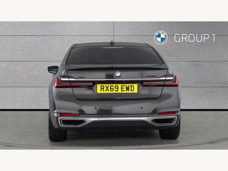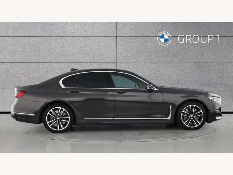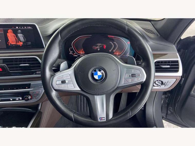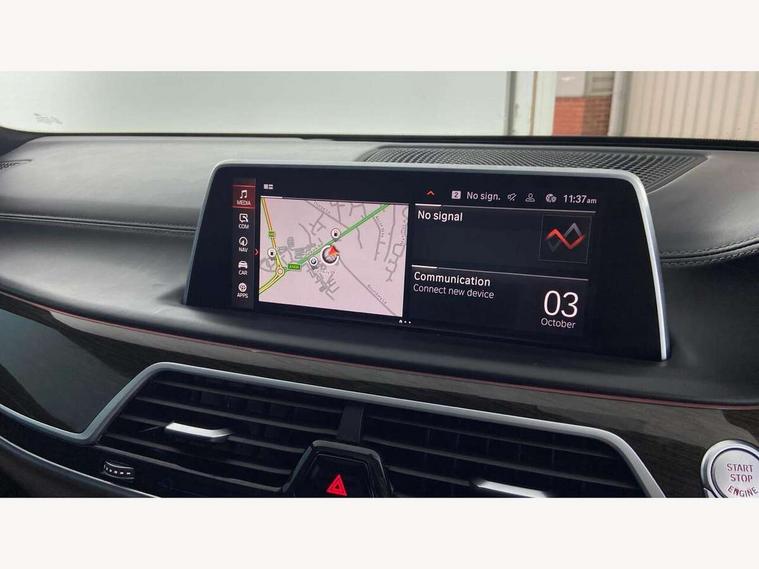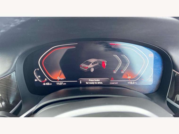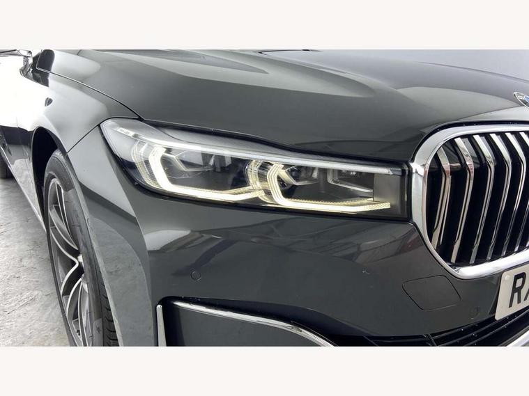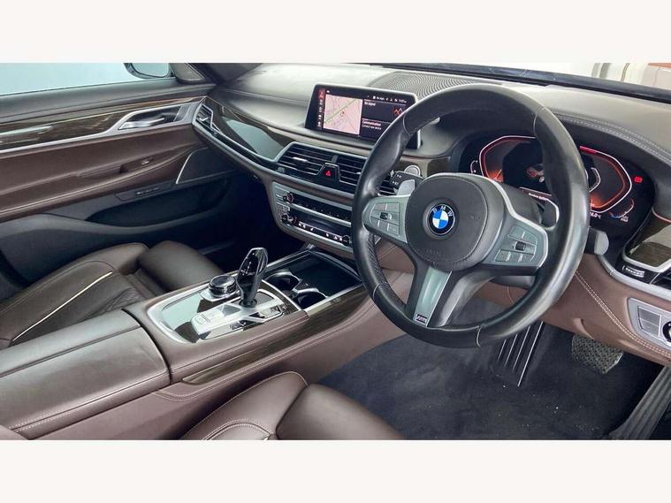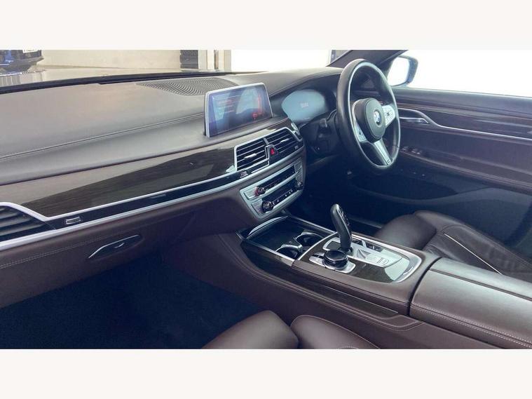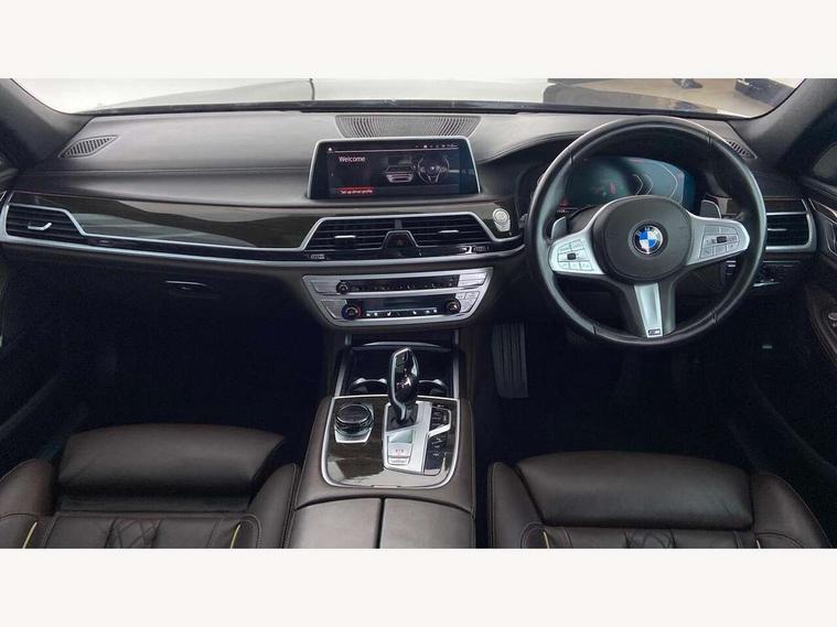 10.25" display screen, 20GB hard disc drive (HDD) memory, Active Guard incl speed limiting and lane departure functions with auto steering, and front collision warning with brake intervention, Average speed gauge, BMW apps interface, BMW ConnectedDrive - Online, BMW display key, BMW gesture control, BMW information plus, BMW legal emergency call, BMW Live Cockpit Professional sat nav system including 10.25" high resolution display and Intelligent Voice Assistant, BMW Teleservices, Brake force display, Brake pad wear indicator warning light, Colour information display, Comfort access system with smart opener, Condition based service, Cruise control with brake assist, Driving experience control with adaptive mode, Engine start/stop button, Enhanced bluetooth with wireless charging, Fuel consumption and range, iDrive touch controller with shortcut buttons, Integrated owner's handbook, Lights on warning, Multifunctional instrument panel, Oil sensor for level and grade, On board computer, On-board diagnosis - OBD, Outside temperature gauge, Park distance control, Personal Profile, Powered bootlid operation, Run flat indicator, Service indicator, Servotronic PAS, Smartphone wireless charging plate, Speed limiter, Trip computer, Wifi hotspot preparation, 2 Axle air suspension, Anti roll bar front and rear, Double wishbone front axle, Dynamic Damper Control, Integral rear axle, Petrol Particulate Filter, Sport automatic transmission, DAB Digital radio, Favourite buttons, All round anti-corrosion system, Auto dimming rear view mirror, Automatic headlights, Body colour bumpers, Body colour door mirrors, Carbon core - innovative lightweight construction with highly rigid and light carbon elements, Chrome kidney grill struts in front and side, Dynamic brake lights, Electric front and rear windows with fingertip open/close + anti-trap all round and comfort closing function, Electric heated door mirrors, Exterior mirrors - electrically folding with anti-dazzle, Follow me home headlights, Heated windscreen washer jets, High beam assistant, i designation on front side panels, left and right, Interior mirror, LED daytime driving lights with front and rear active, LED front and rear fog lights, LED rear lights, Left and right single chrome quadrilateral exhaust tailpipes, Model logo, Outer door handle illumination, Rain sensor + automatic driving lights control, Third brake light, Welcome lighting, 12V power sockets, Ambient interior lighting, Battery in luggage compartment, Centre console with armrest, Driver + front passenger electric lumbar support, Electric seat adjustment with memory, Footwell courtesy lights front and rear, Four zone automatic air conditioning, Front and rear cupholders x 2, Front and rear reading lights, Front and rear seat heating, Front armrest, Front comfort seats, Glove compartment, Grab handles, Isofix child seat mounting, Lashing eyelets in boot, Lockable glovebox, Microfilter and active carbon filter, Reach and rake adjustable steering column, Rear centre console, Rear headrests, Soft close doors, Storage options, Sun visors, Three spoke M sports leather multifunction steering wheel, Velour floormats, Connected Package Professional - 7 Series, Non smokers pack - 7 Series, Parking Assistant Plus - 7 Series, Pure excellence exterior design pack - 7 Series, Active protection, Advanced Head Protection System front + rear, Anti-lock braking system (ABS), Anti-whiplash front headrests, Automatic Stability Control (ASC), Brake assist function, Brake energy regeneration, Comfort exit stepless door brake, Cornering brake control, Crash Sensor - activates hazard/interior lighting + unlocks doors, Deformation zones - front and rear with door reinforcements and bumpers up to 2.5 mph, Driver and front passenger airbag with front passenger airbag deactivation, Driver/front passenger side airbags, DSC - Dynamic Stability Control, Dynamic brake control, Dynamic safety, Dynamic Traction Control - DTC, EBD - Electronic brakeforce distribution, Electromechanical parking brake + auto hold function, Engine drag torque control, Front and rear brake discs with interior ventilation, Front seatbelt pretensioners with force limiters, Head airbags for first and second row seats, Mechanical child proof lock on rear doors, Rear airbags, Side impact protection, Three inertia reel rear seatbelts, Three point rear seat belts, Two tone horn, Tyre pressure monitoring system, Warning triangle and first aid kit, Electronic vehicle immobiliser, Locking wheel bolts, Remote central locking, Thatcham Cat.1 alarm, Ceramic finish for controls, Leather instrument panel,