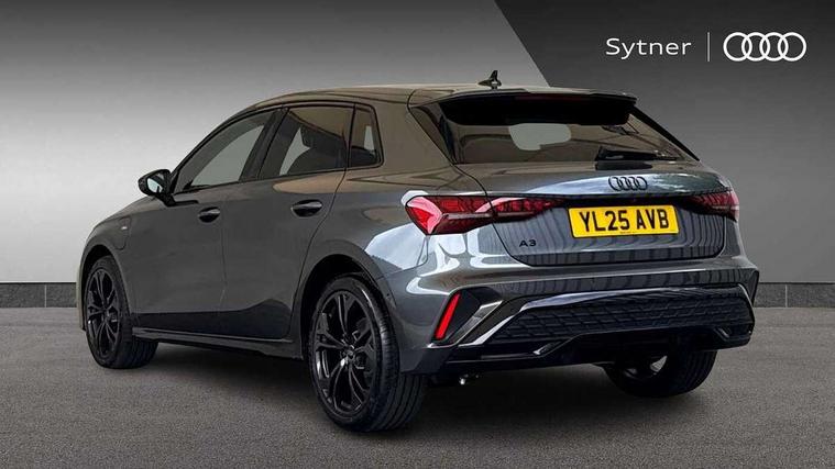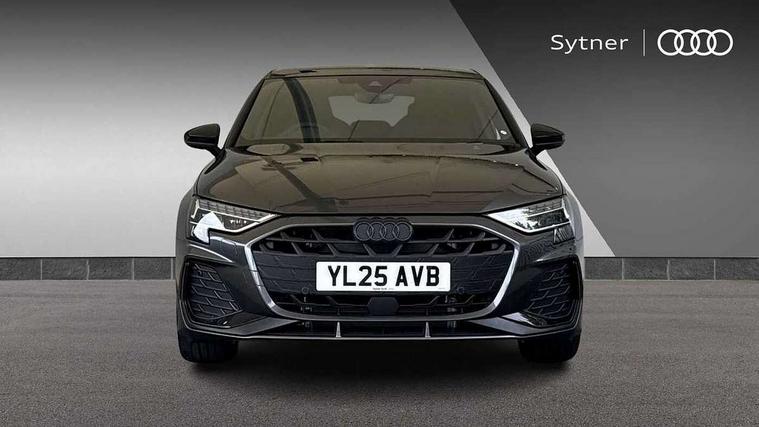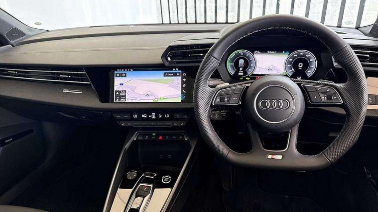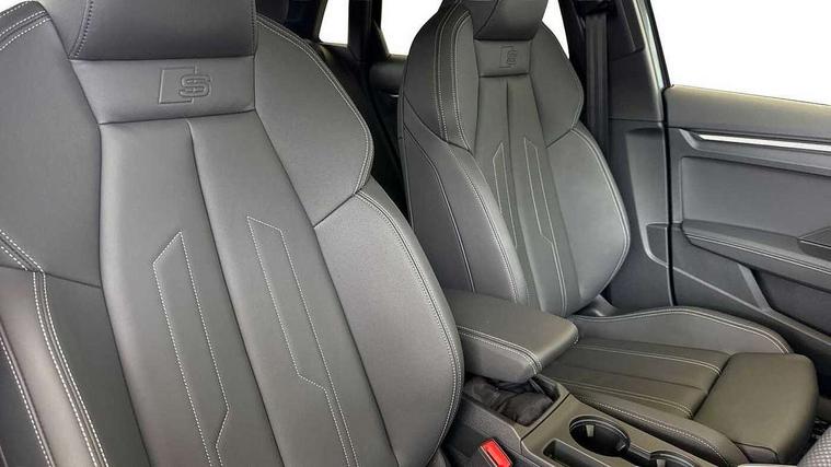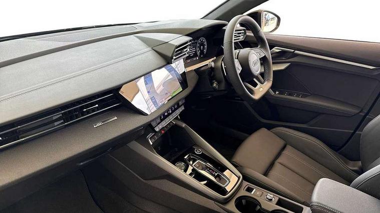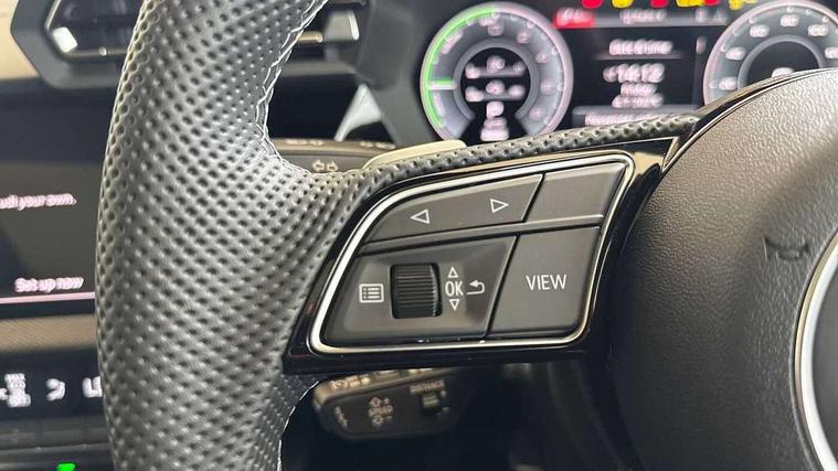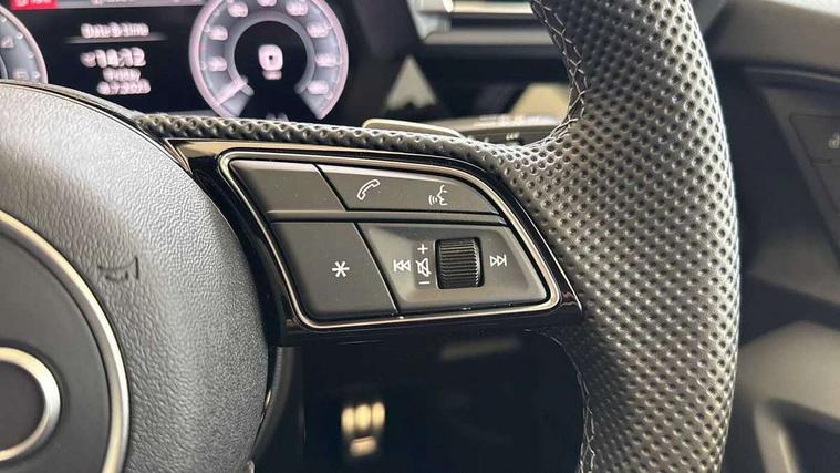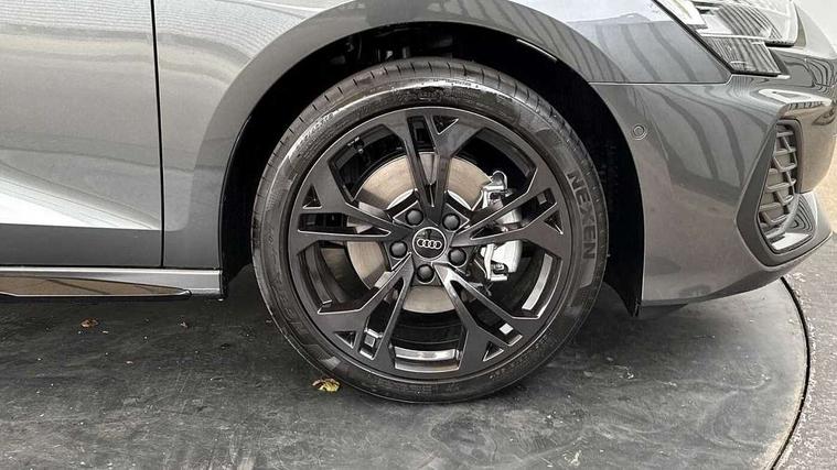 Adjustable speed limiter, Audi drive select, Audi smartphone interface with app store includes wireless Apple carplay, Android auto and Amazon alexa integration, Audi virtual cockpit plus - 12.3" full HD resolution dynamic digital instrument cluster, Automatic start/stop system with recuperation, Bluetooth interface, Camera based traffic sign recognition, Collision avoidance assistant, Cruise control, Distraction and Fatigue warning, e-Call (emergency call), Electromechanical power speed sensitive steering, Emergency assist, Lane departure warning system, MMI Navigation Plus with high resolution 10.1" colour touch screen display, Park Assist with parking system Plus, Service indicator, Trip computer, Voice control system with natural language interaction, 3 pin 10 amp domestic charging cable, CCS socket for DC charging, Charging cable for public charging, mode 3 (type 2), 32 A, Compact charging system, Industrial connector CEE 32 A, 230 V, length 1.6 m, Standard suspension, Type 2 socket for AC charging, Audi Phonebox light with wireless charging, Audi sound system - 10 loudspeakers including centre loudspeaker and subwoofer, DAB Digital radio, USB ports with charging function in the rear, Acoustic glass windscreen, All weather light, Anthracite grey Audi rings (front and rear), Audi beam uses LEDs to project the Audi logo onto the ground as you exit your A3, Auto dimming frameless rear view mirror, Automatic dynamic range control, Black accents front and rear bumpers, Black accents in the area of the Audi single frame grille, Black accents window trims strips, Dipped beam, main beam, position light and turning light, Electrically adjustable/heated/folding/auto dimming door mirrors with integrated LED indications + kerb view function for passenger side, Exterior model badging, Front and rear side air inlets in grained matt black with dark liquid chrome frame, Front electric windows, Heat insulating glass windscreen, Illuminated door sills with aluminium inserts at the front with S logo, Intersection light, LED 3rd brake light, LED brake lights, LED daytime running x3, LED headlights with LED rear lights and dynamic rear indicators, LED rear number plate lights, LED reverse light, LED tail lights, Light and rain sensors, Manoeuvring light, Motorway light, Privacy glass - dark tinted rear window, rear door and side windows, Rear diffuser and grill in grained matt black with inlay in dark liquid chrome, Rear electric windows, Rear side wing doors, Rear wiper, S roof spoiler, Static Cornering lights, 12V socket and storage compartment in front centre console, 3 seat bench in 2nd row, 3 spoke flat bottomed leather multifunction sport steering wheel with gear shift paddles, 3-zone deluxe automatic air conditioning, 4 way electrically adjustable lumbar support for driver and front passenger, 40/20/40 split folding rear seat bench, Black cloth headlining, Black front and rear floor mats, Convenience auxiliary air conditioning, Front and rear centre armrest in artificial leather with contrasting stitching on armrests and instrument panel, Front and rear headrests, Heated front seats, Height and reach adjustable steering wheel, Manual boot compartment lid, Manually adjustable front seats, Rear centre armrest with cupholder, S badging on the steering wheel, Seat side bolsters, Single front passenger seat, Stainless steel pedals and front footrest in black, Twin leather upholstery with front sports seats S embossed logo, Aluminium interior elements pack - A3, 3x3 point rear seat belts, Acoustic vehicle alerting system, Driver and front passenger airbag with passenger airbag deactivation, Electronic Stabilisation Control (ESC) including ABS, ASR and EDL, First aid kit with warning triangle and 2 safety vests, Front side airbags with head airbags and interaction airbag, Hill hold assist, Pre-sense front with pedestrian and cyclist detection, Seatbelt monitoring, Tyre pressure loss indicator, Anti theft alarm, Anti-theft wheel bolts, Electronically operated child locks, Immobiliser, Remote central locking with safelock, Black dashboard, 18" 5 Y twin spoke style alloy wheel in metallic black, Tyre repair kit,