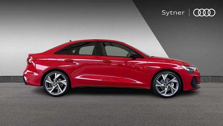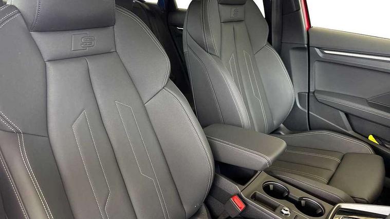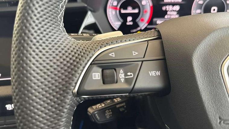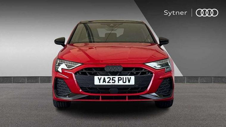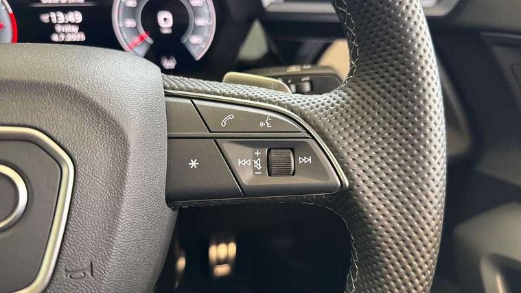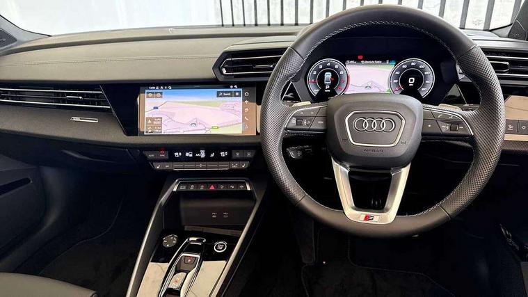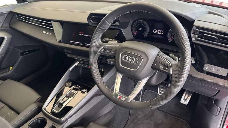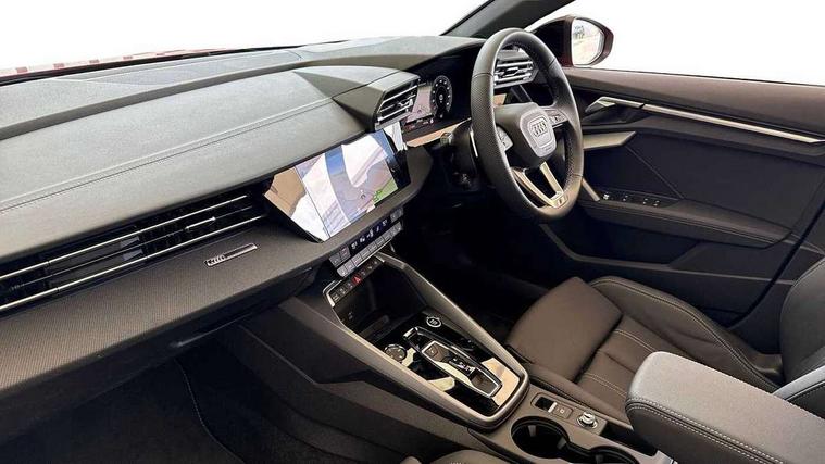 Adjustable speed limiter, Audi drive select, Audi smartphone interface with app store includes wireless Apple carplay, Android auto and Amazon alexa integration, Audi virtual cockpit plus - 12.3" full HD resolution dynamic digital instrument cluster, Automatic start/stop system with recuperation, Bluetooth interface, Camera based traffic sign recognition, Collision avoidance assistant, Cruise control, Distraction and Fatigue warning, e-Call (emergency call), Electromechanical power speed sensitive steering, Emergency assist, Lane departure warning system, MMI Navigation Plus with high resolution 10.1" colour touch screen display, Park Assist with parking system Plus, Service indicator, Trip computer, Voice control system with natural language interaction, Sports suspension, Audi Phonebox light with wireless charging, Audi sound system - 10 loudspeakers including centre loudspeaker and subwoofer, DAB Digital radio, USB ports with charging function in the rear, Acoustic glass windscreen, All weather light, Anthracite grey Audi rings (front and rear), Audi beam uses LEDs to project the Audi logo onto the ground as you exit your A3, Auto dimming frameless rear view mirror, Automatic dynamic range control, Black accents front and rear bumpers, Black accents in the area of the Audi single frame grille, Black accents window trims strips, Dipped beam, main beam, position light and turning light, Electrically adjustable/heated/folding/auto dimming door mirrors with integrated LED indications + kerb view function for passenger side, Exterior model badging, Front and rear side air inlets in grained matt black with dark liquid chrome frame, Front electric windows, Heat insulating glass windscreen, Illuminated door sills with aluminium inserts at the front with S logo, Intersection light, LED 3rd brake light, LED brake lights, LED daytime running x3, LED headlights with LED rear lights and dynamic rear indicators, LED rear number plate lights, LED reverse light, LED tail lights, Light and rain sensors, Manoeuvring light, Motorway light, Privacy glass - dark tinted rear window, rear door and side windows, Rear boot, Rear diffuser and grill in grained matt black with inlay in dark liquid chrome, Rear electric windows, Rear side wing doors, Static Cornering lights, 12V socket and storage compartment in front centre console, 3 seat bench in 2nd row, 3 spoke flat bottomed leather multifunction sport steering wheel with gear shift paddles, 3-zone deluxe automatic air conditioning, 4 way electrically adjustable lumbar support for driver and front passenger, 40/20/40 split folding rear seat bench, Black cloth headlining, Black front and rear floor mats, Front and rear centre armrest in artificial leather with contrasting stitching on armrests and instrument panel, Front and rear headrests, Heated front seats, Height and reach adjustable steering wheel, Manual boot compartment lid, Manually adjustable front seats, Rear centre armrest with cupholder, S badging on the steering wheel, Seat side bolsters, Single front passenger seat, Stainless steel pedals and front footrest in black, Twin leather upholstery with front sports seats S embossed logo, Aluminium interior elements pack - A3, 3x3 point rear seat belts, Driver and front passenger airbag with passenger airbag deactivation, Electronic Stabilisation Control (ESC) including ABS, ASR and EDL, First aid kit with warning triangle and 2 safety vests, Front side airbags with head airbags and interaction airbag, Hill hold assist, Pre-sense front with pedestrian and cyclist detection, Seatbelt monitoring, Tyre pressure loss indicator, Anti theft alarm, Anti-theft wheel bolts, Electronically operated child locks, Immobiliser, Remote central locking with safelock, Black dashboard,
